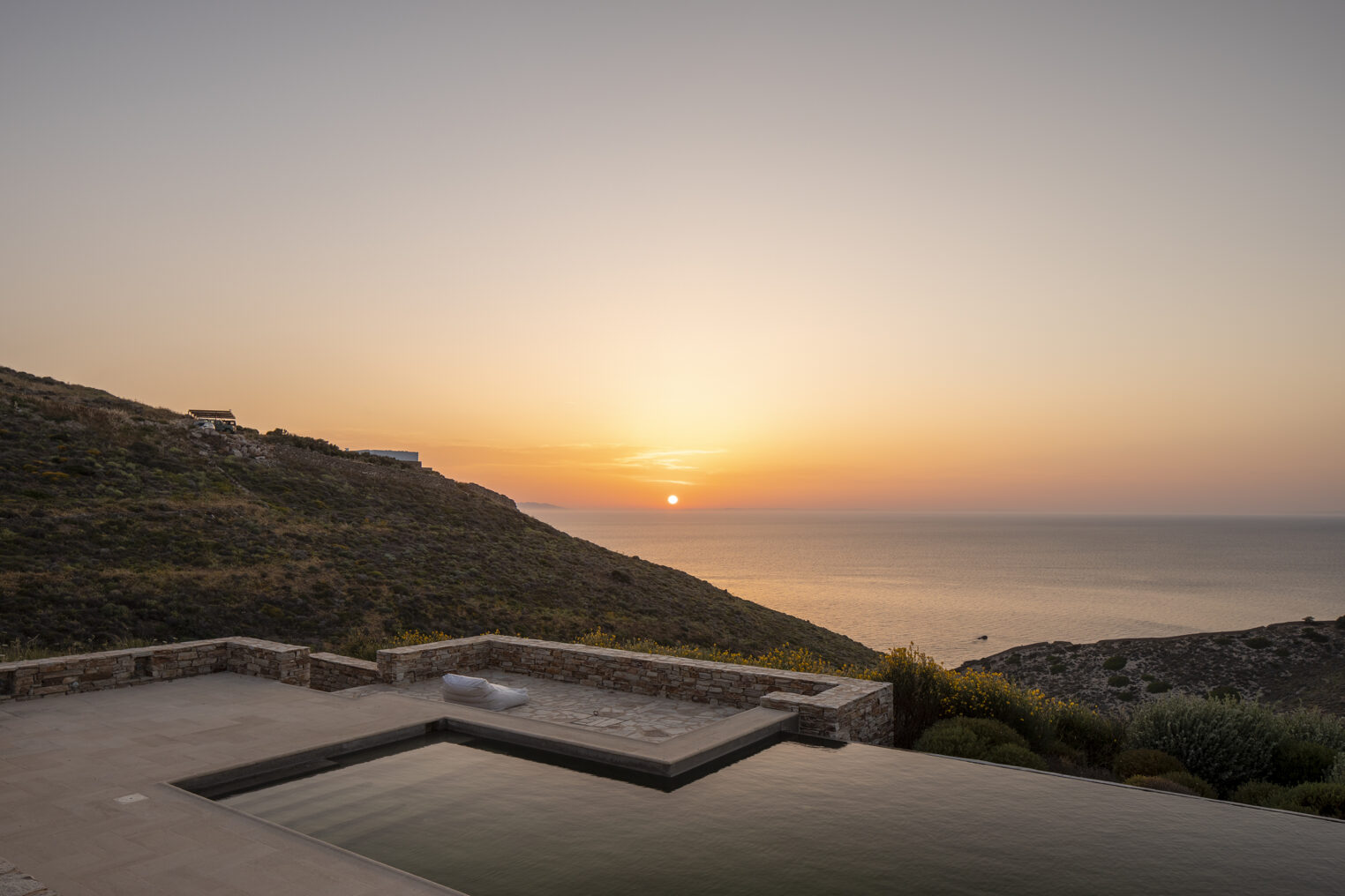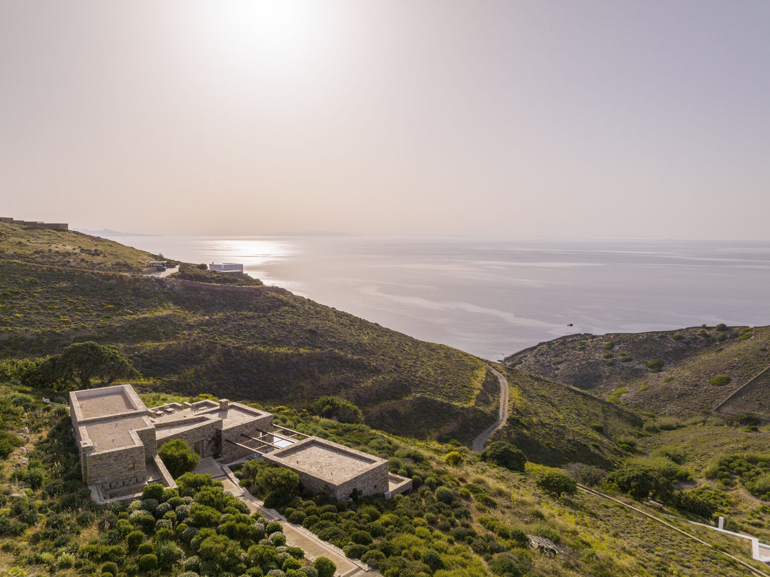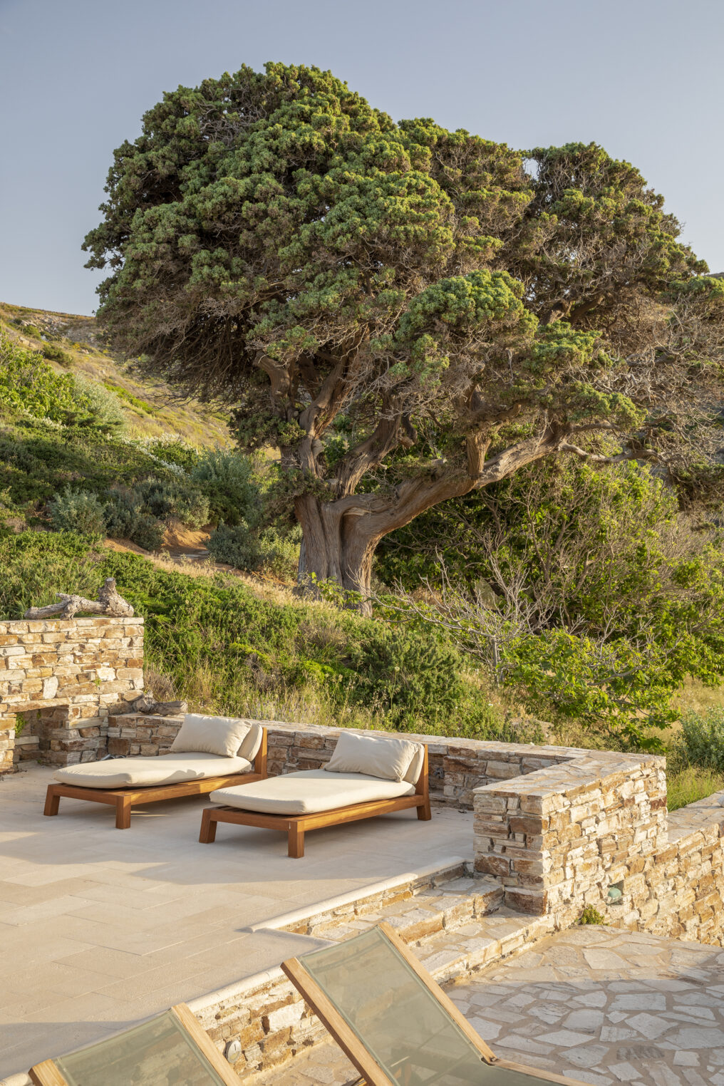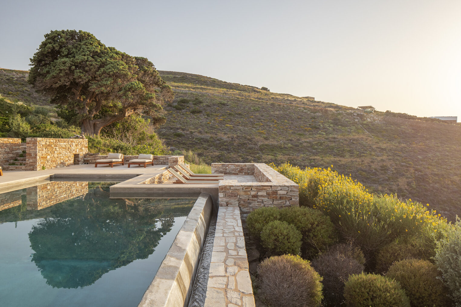 Kedros was not only named after the 750-year-old cedar tree found within its garden, its architectural concept was designed around it. A tranquil courtyard links its main living spaces, and provides spectacular views of the cedar, the beautiful pool and the Aegean. With seven bedrooms, including two beside the pool and one within a standalone guesthouse, this stone villa is ideal for large groups of friends, a couple of families, and celebrations. Surrounded by olive trees, vines and the wild landscape of Antiparos, Kedros is all about outdoor living.