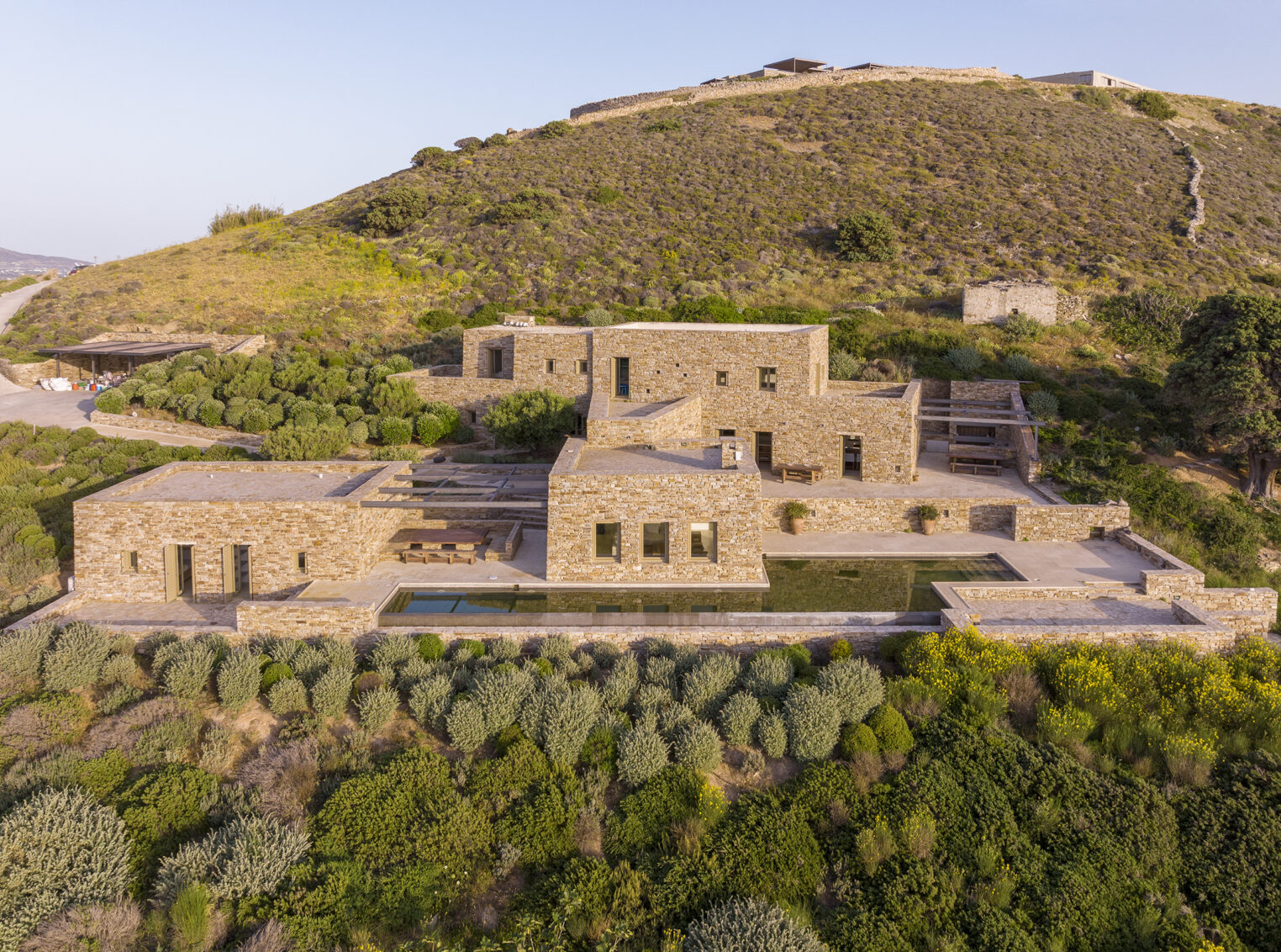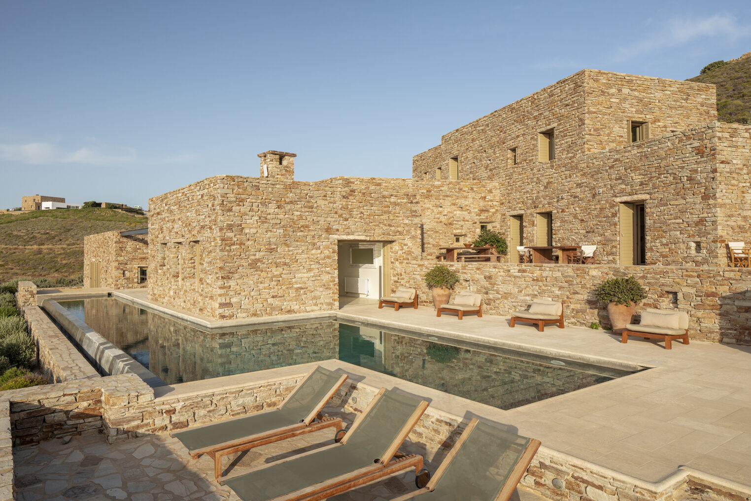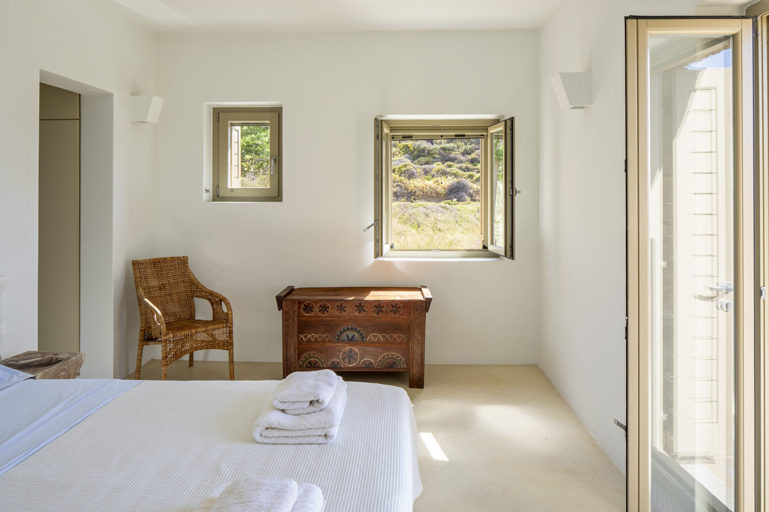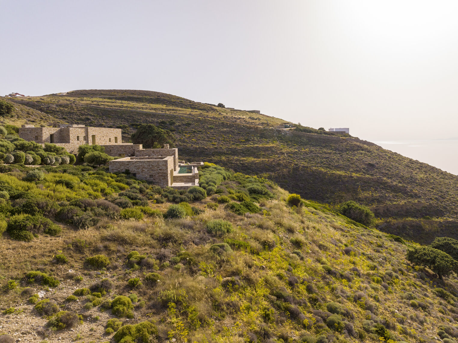 Kedros was not only named after the 750-year-old cedar tree found within its garden, its architectural concept was designed around it. A tranquil courtyard links its main living spaces, and provides spectacular views of the cedar, the beautiful pool and the Aegean. With seven bedrooms, including two beside the pool and one within a standalone guesthouse, this stone villa is ideal for large groups of friends, a couple of families, and celebrations. Surrounded by olive trees, vines and the wild landscape of Antiparos, Kedros is all about outdoor living.