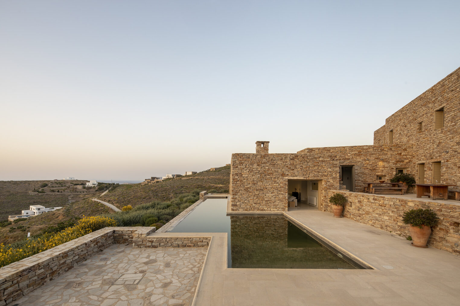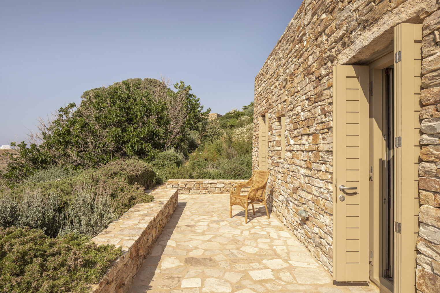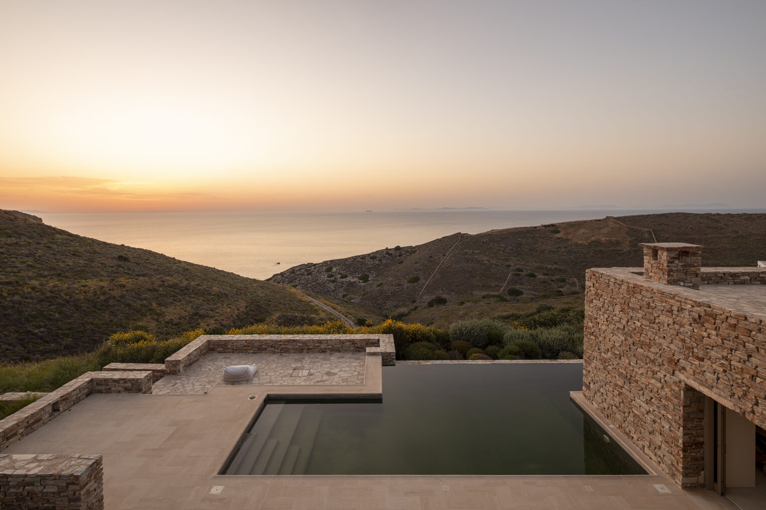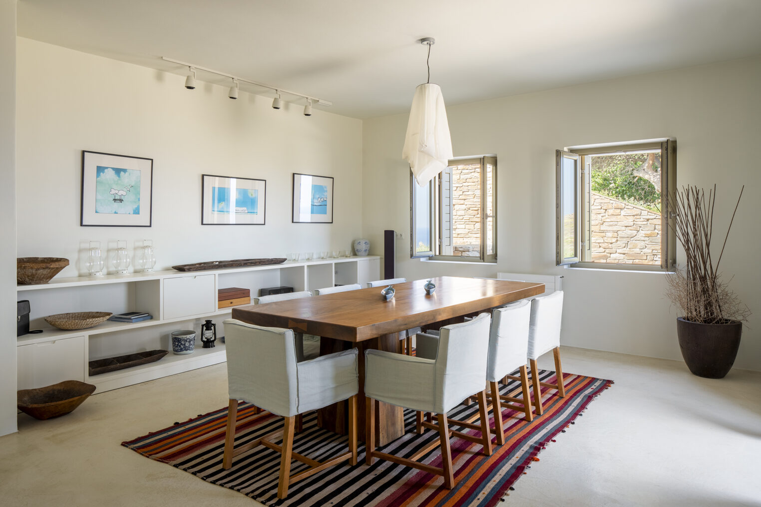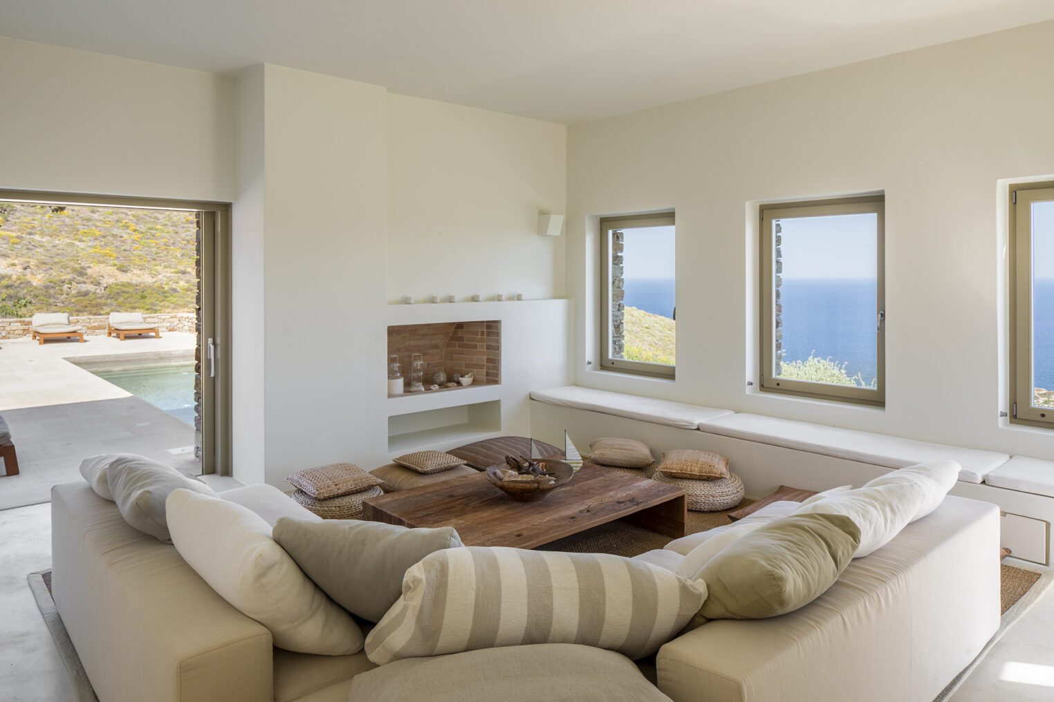 Kedros was not only named after the 750-year-old cedar tree found within its garden, its architectural concept was designed around it. A tranquil courtyard links its main living spaces, and provides spectacular views of the cedar, the beautiful pool and the Aegean. With seven bedrooms, including two beside the pool and one within a standalone guesthouse, this stone villa is ideal for large groups of friends, a couple of families, and celebrations. Surrounded by olive trees, vines and the wild landscape of Antiparos, Kedros is all about outdoor living.