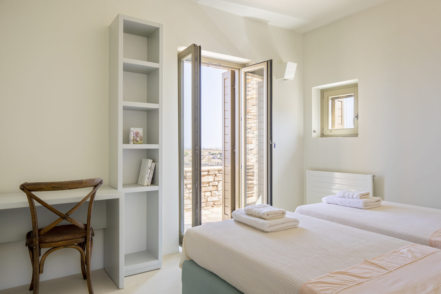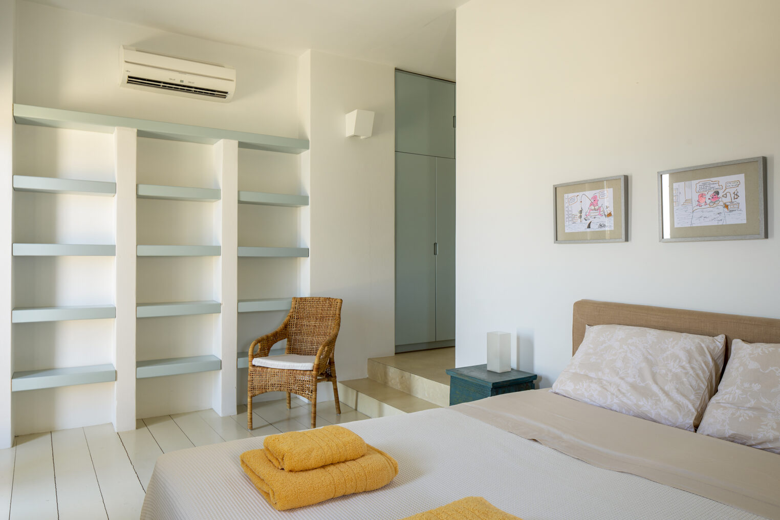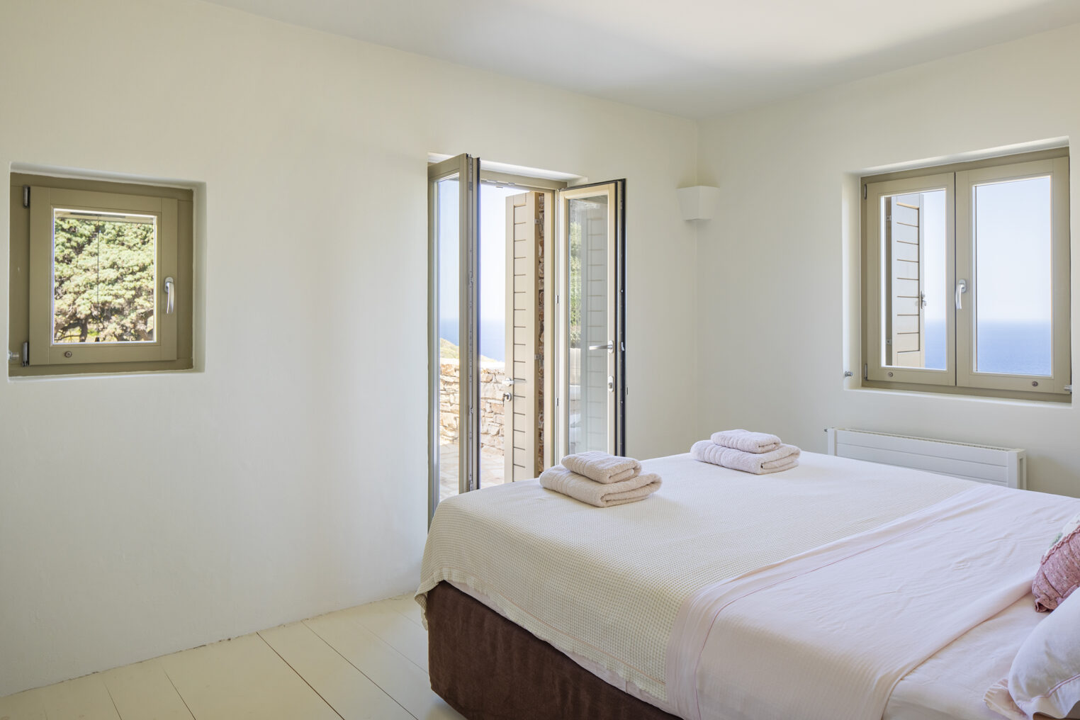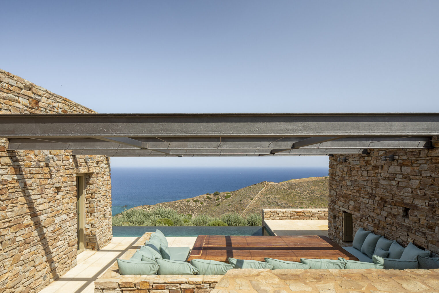 Kedros was not only named after the 750-year-old cedar tree found within its garden, its architectural concept was designed around it. A tranquil courtyard links its main living spaces, and provides spectacular views of the cedar, the beautiful pool and the Aegean. With seven bedrooms, including two beside the pool and one within a standalone guesthouse, this stone villa is ideal for large groups of friends, a couple of families, and celebrations. Surrounded by olive trees, vines and the wild landscape of Antiparos, Kedros is all about outdoor living.