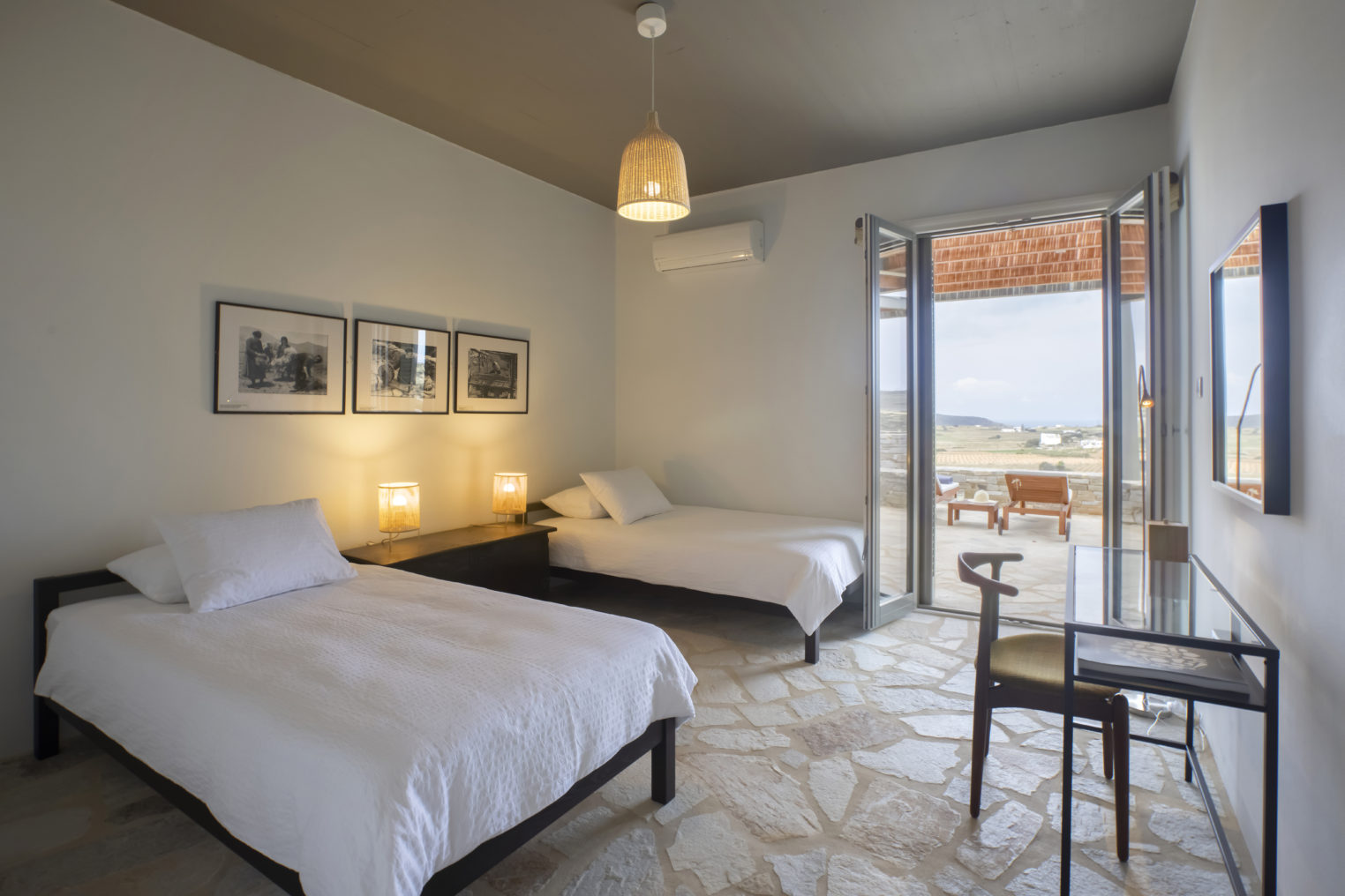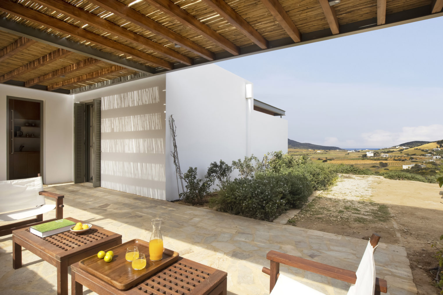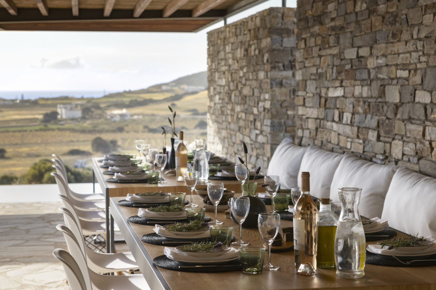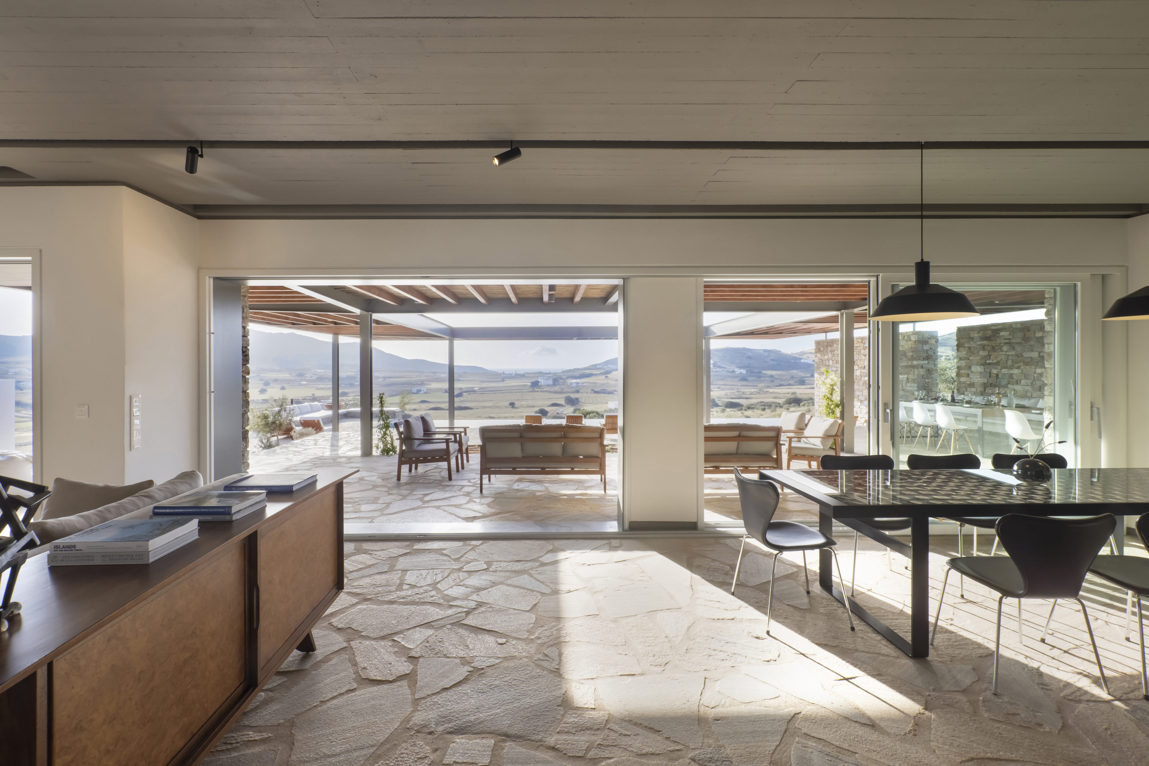 Από κάθε σημείο της ιδιοκτησίας, καθώς και απ’ όλα τα δωμάτια έχετε ορατότητα προς έναν δασωμένο λόφο πάνω από την μοναδική, ανέγγιχτη αγροτική κοιλάδα της Αντιπάρου με εκπληκτικά ηλιοβασιλέματα ανάμεσα από αμυγδαλιές. Στην ταράτσα του κυρίως κτιρίου, στην περιοχή της πισίνας υπάρχει προτζέκτορας με συστήματα ήχου, όπου οι καλεσμένοι σας μπορούν να απολαύσουν μία μοναδική κινηματογραφική βραδιά.