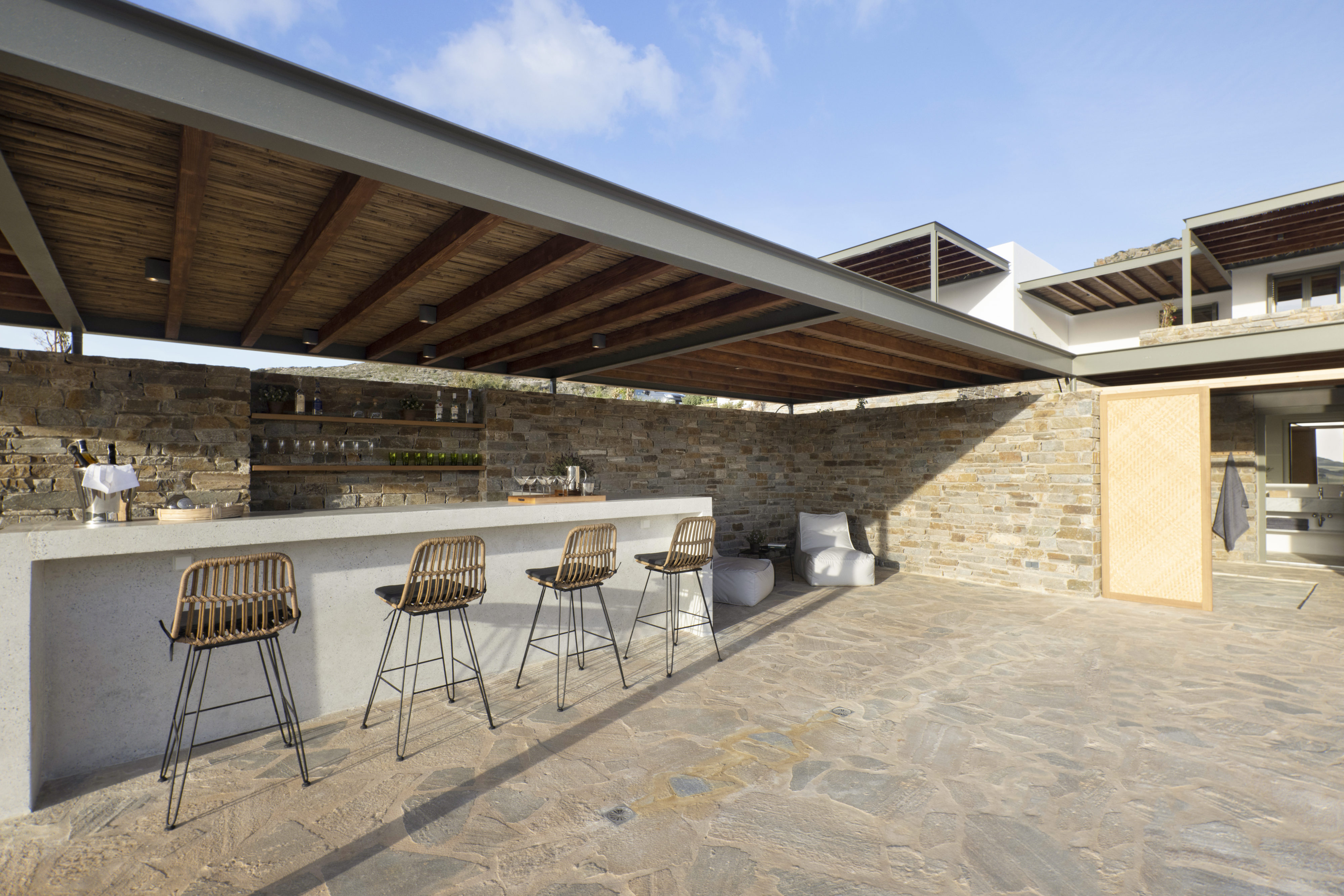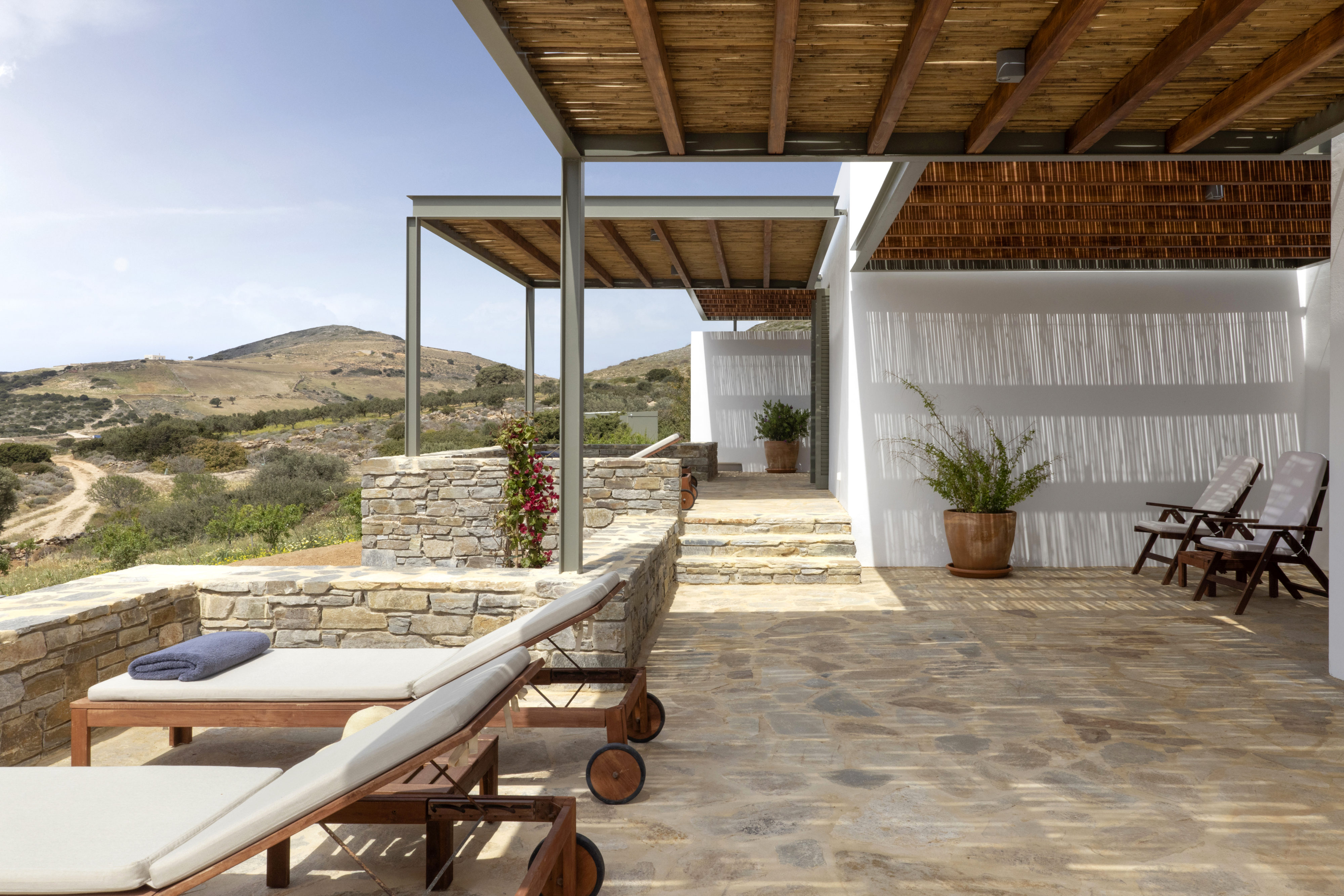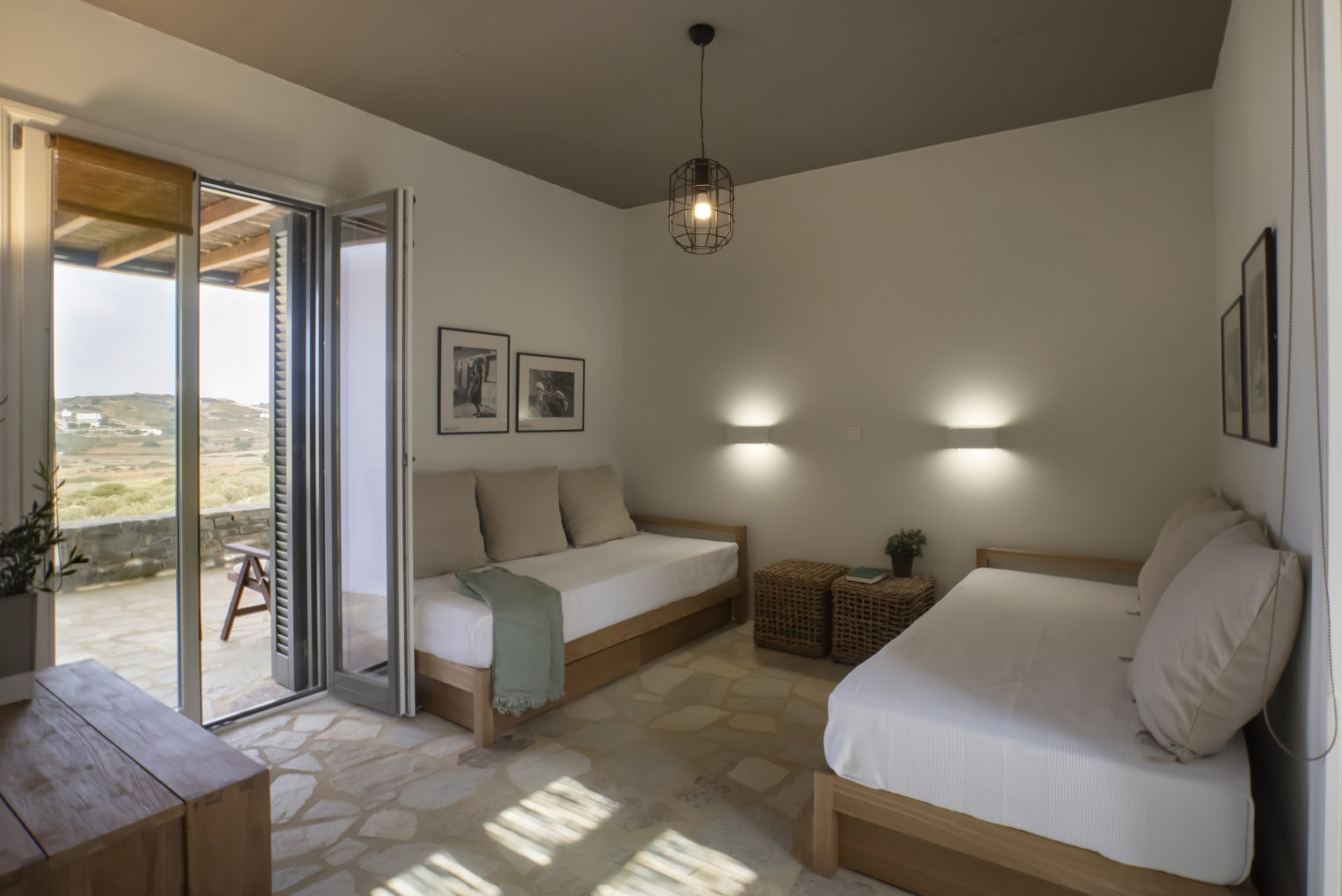 Από κάθε σημείο της ιδιοκτησίας, καθώς και απ’ όλα τα δωμάτια έχετε ορατότητα προς έναν δασωμένο λόφο πάνω από την μοναδική, ανέγγιχτη αγροτική κοιλάδα της Αντιπάρου με εκπληκτικά ηλιοβασιλέματα ανάμεσα από αμυγδαλιές. Στην ταράτσα του κυρίως κτιρίου, στην περιοχή της πισίνας υπάρχει προτζέκτορας με συστήματα ήχου, όπου οι καλεσμένοι σας μπορούν να απολαύσουν μία μοναδική κινηματογραφική βραδιά.