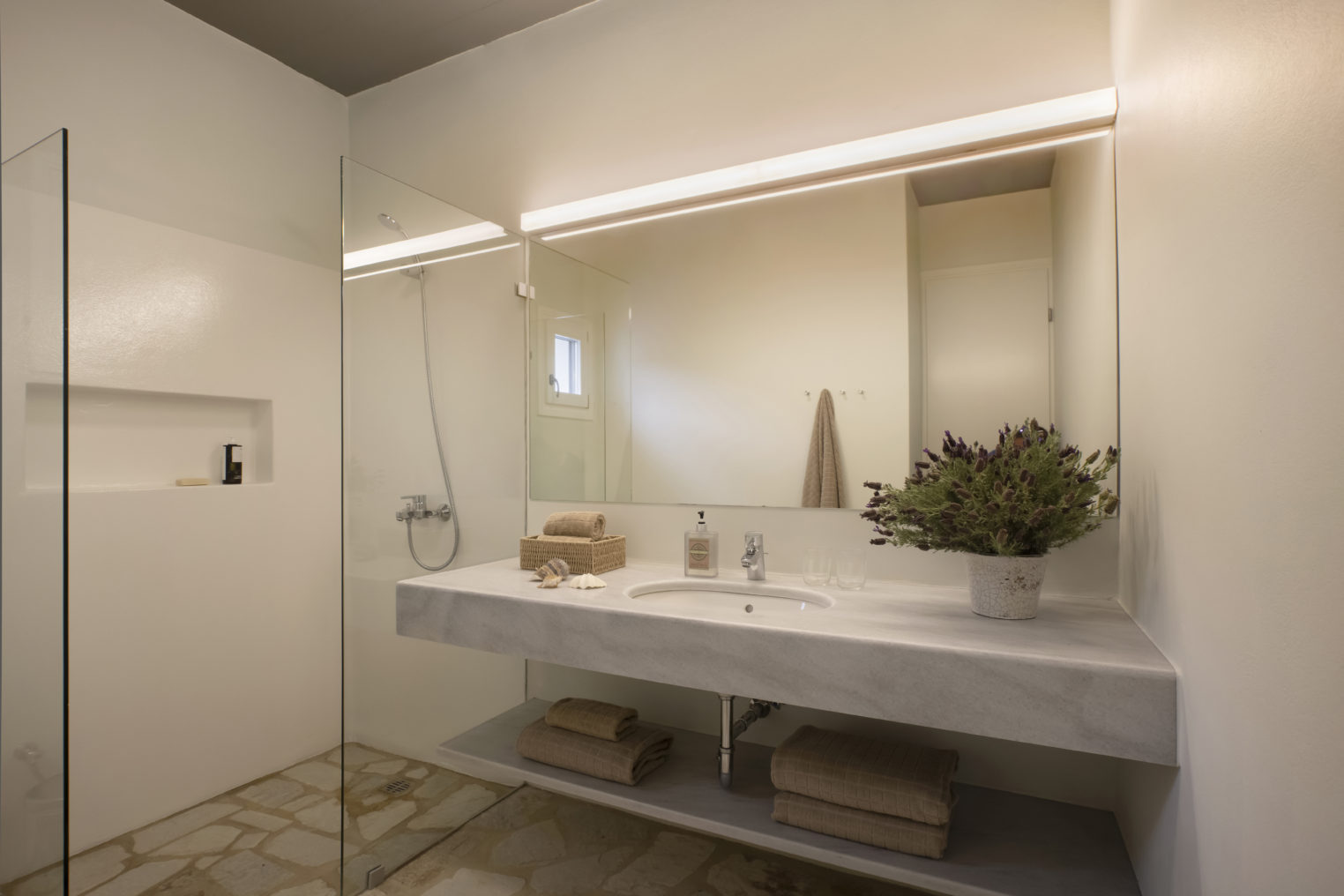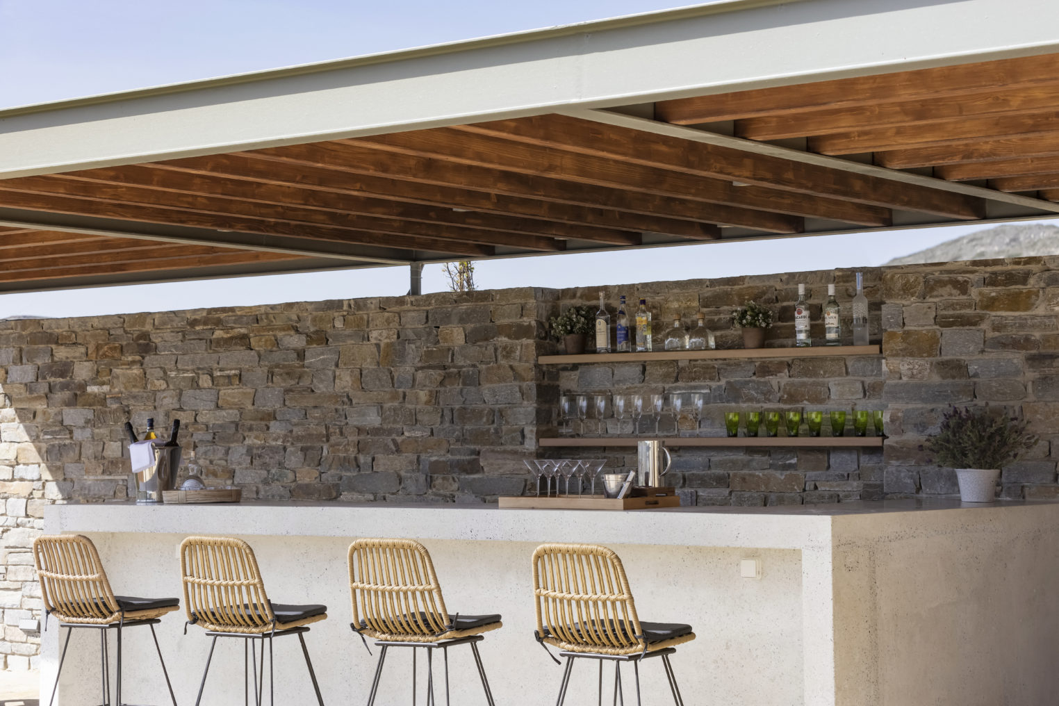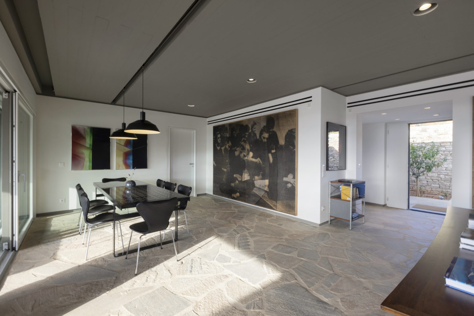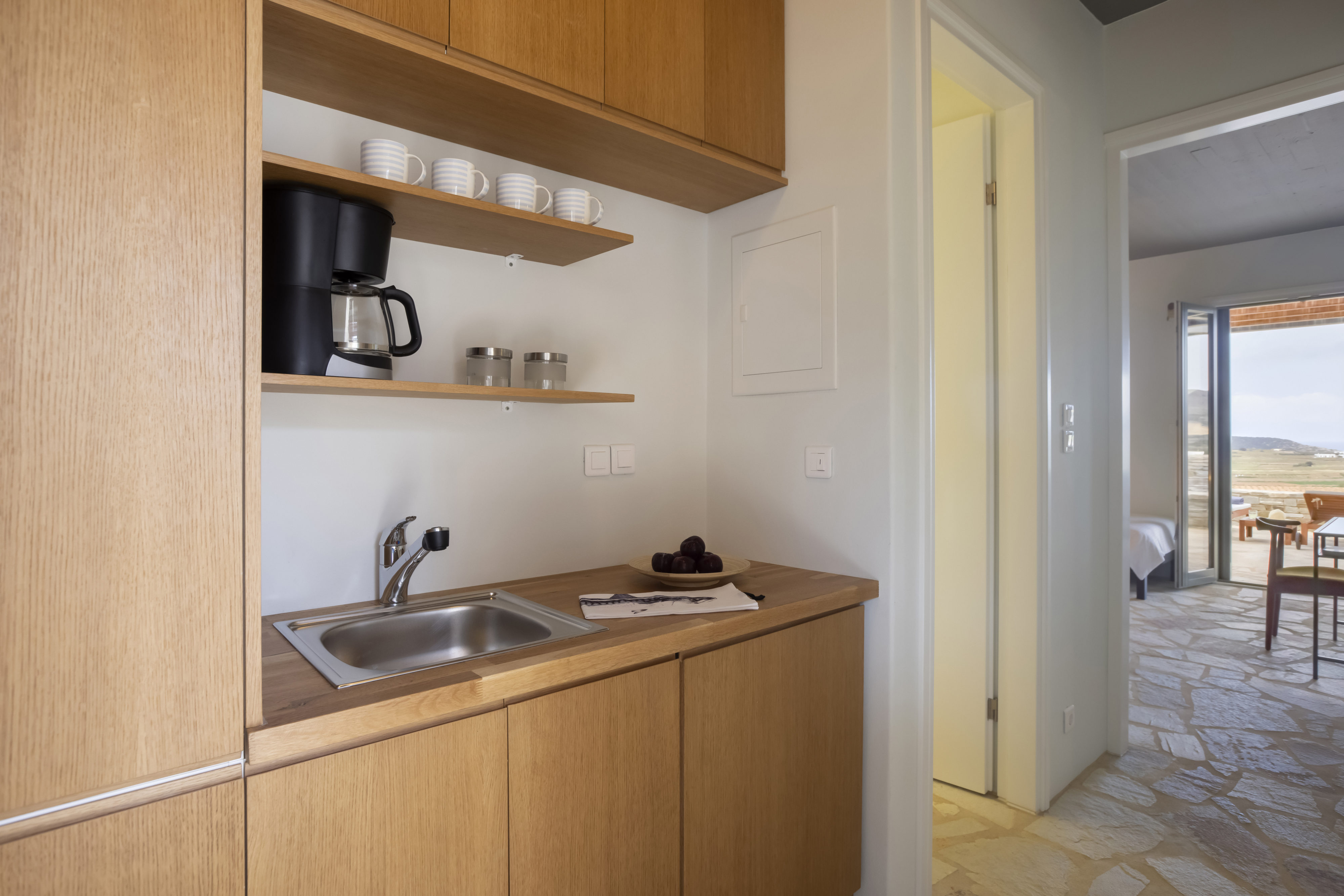 Από κάθε σημείο της ιδιοκτησίας, καθώς και απ’ όλα τα δωμάτια έχετε ορατότητα προς έναν δασωμένο λόφο πάνω από την μοναδική, ανέγγιχτη αγροτική κοιλάδα της Αντιπάρου με εκπληκτικά ηλιοβασιλέματα ανάμεσα από αμυγδαλιές. Στην ταράτσα του κυρίως κτιρίου, στην περιοχή της πισίνας υπάρχει προτζέκτορας με συστήματα ήχου, όπου οι καλεσμένοι σας μπορούν να απολαύσουν μία μοναδική κινηματογραφική βραδιά.