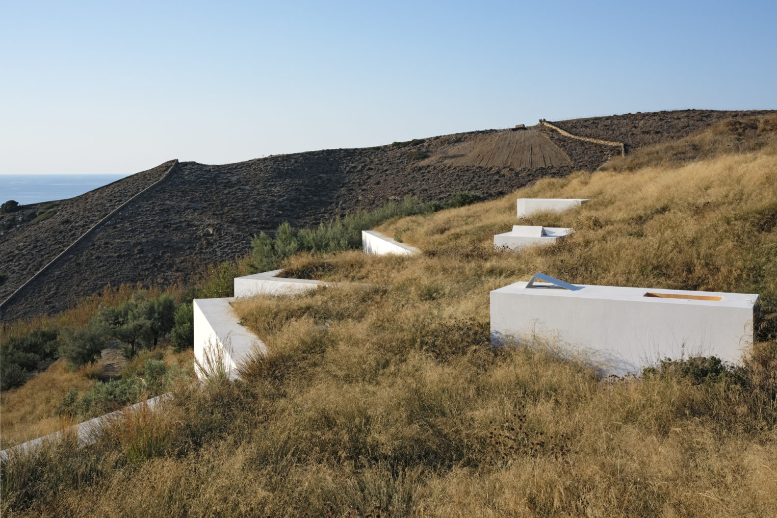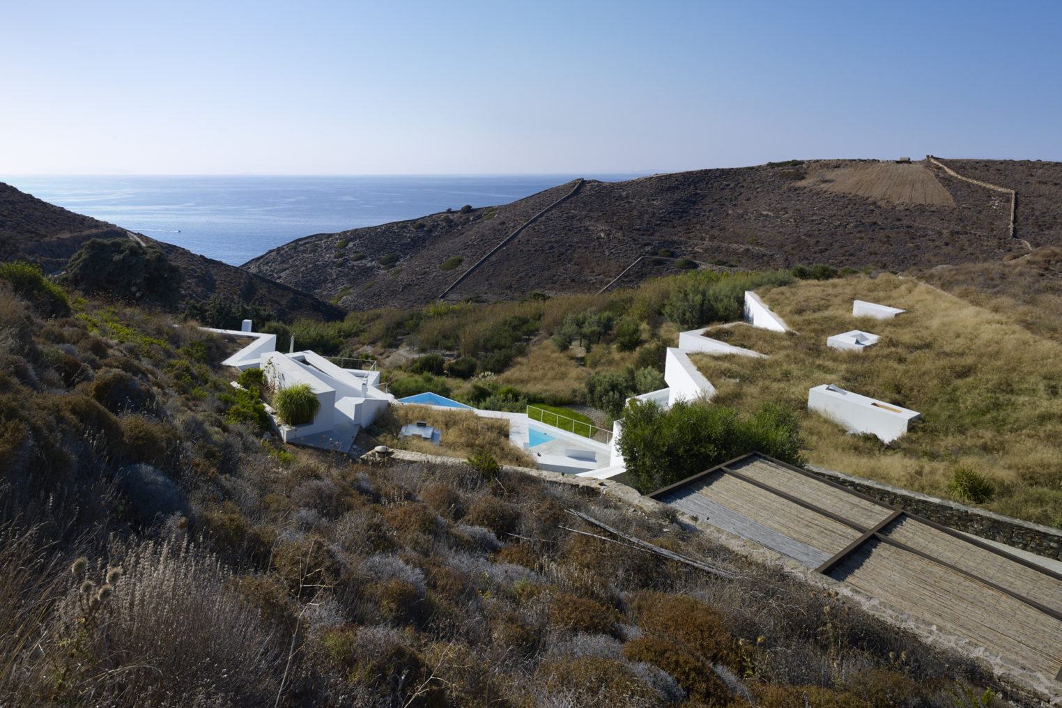 Σχεδιασμένο από τους Πορτογάλους αρχιτέκτονες Camilo Rebelo & Susana Martins, αυτός ο σύγχρονος εξοχικός οίκος – ο οποίος έχει προβληθεί στα πιο έκτακτα σπίτια του κόσμου του BBC. Το Ktima βρίσκεται σε ένα απόλυτα ήσυχο και ιδιωτικό μέρος του νησιού, είναι μέρος του βραβευμένου έργου Antiparos του Oliaros και μπορεί να φιλοξενήσει μια ομάδα οικογένειας και φίλων, διαθέτει μια όμορφα σχεδιασμένη πισίνα, με θέα στο εκπληκτικό πανόραμα του Αιγαίου. Η κύρια ιδέα του έργου βασίστηκε σε δύο στοιχεία: τους υπάρχοντες τοίχους, σε διαφορετικά επίπεδα, και τις πλατφόρμες που δημιουργήθηκαν από αυτούς τους τοίχους. Τα υψόμετρα των δύο επιπέδων κατοικιών είναι σπασμένες γραμμές που δημιουργήθηκαν ως συνέχεια των υπαρχόντων τειχών του χώρου. Η τοπογραφία βοηθά στη διάδοση του σπιτιού. Το Κτήμα σημαίνει ελληνικό αγρόκτημα ή αγροτεμάχιο με εύφορη γη. Η τοποθεσία του έργου είναι ένα οικόπεδο με απότομες πλαγιές, κυρίως πράσινο, με μερικά δέντρα που αποτελούν εξαίρεση στο πλαίσιο της Αντιπάρου. Η τάξη και το χάος μπορούν να βρεθούν στον ελληνικό πολιτισμό κατά τη διάρκεια των αιώνων, ακόμη και στις μέρες μας – ενδιαφερόμασταν για αυτές τις πτυχές και και οι δύο ήταν μέρος της ιδέας για αυτό το σπίτι. Στην περιοχή, μπορούμε να αντιληφθούμε αυτήν την κατασκευή με δύο διαφορετικούς τρόπους. Από ψηλά, στην κύρια περιοχή πρόσβασης, βλέπουμε μια παχιά λευκή και αφηρημένη γραμμή, προσαρμοσμένη στην τοπογραφία και στις εσωτερικές απαιτήσεις. Από την άλλη πλευρά, κοιτάζοντας από τη θάλασσα, ανακαλύπτουμε την πρόσοψη με μια εικονιστική, συνεχή αλλά προφανώς κατακερματισμένη σύνθεση που μας παραπέμπει σε μια αρχαία ακρόπολη. Η αρχιτεκτονική διαδικασία είναι πολύ περίπλοκη τις περισσότερες φορές και οι πίνακες του Palazuelo ήταν επίσης μια από τις πιο σχετικές αναφορές για αυτό το σπίτι. Στους ελληνικούς κανονισμούς, οι όγκοι δεν μπορούν να ξεπερνούν τα δέκα μέτρα και αυτός ο κανόνας υπαγορεύει το ρυθμό σύνθεσης, που σχετίζεται πάντα με τους εσωτερικούς χώρους. Όλα έχουν ξεχωριστή διαμόρφωση τοπίου και ποικίλλουν ιδιαίτερα στην ποσότητα και την ένταση του φωτός. Με βάση ένα μεγάλο πρόγραμμα, αποφασίσαμε να χωρίσουμε το σπίτι σε δύο επίπεδα: το επίπεδο εισόδου είναι το κύριο σπίτι και το χαμηλότερο επίπεδο του ξενώνα, των υπηρεσιών και του προσωπικού. Το σπίτι χτίστηκε σύμφωνα με την τοπική παράδοση κατασκευής και τους κανονισμούς του νησιού – αυτές οι πτυχές ήταν ζωτικής σημασίας για την έκφραση του σπιτιού. Αυτό το σπίτι έχει μια ιδιαίτερα ευνοϊκή κατάσταση από τη βιώσιμη άποψη: η πράσινη οροφή εγγυάται αποτελεσματικότητα σε σταθερή θερμοκρασία στο εσωτερικό, χωρίς την ανάγκη ισχυρών συστημάτων ψύξης. Στο πίσω μέρος του σπιτιού, ενσωματώσαμε μερικές βεράντες που είναι εξαιρετικά σημαντικές και για τα δύο επίπεδα αερισμού. Έτσι προσπαθήσαμε να χρησιμοποιήσουμε απλά στοιχεία αρχιτεκτονικής για να επιτύχουμε χαμηλή κατανάλωση ενέργειας.