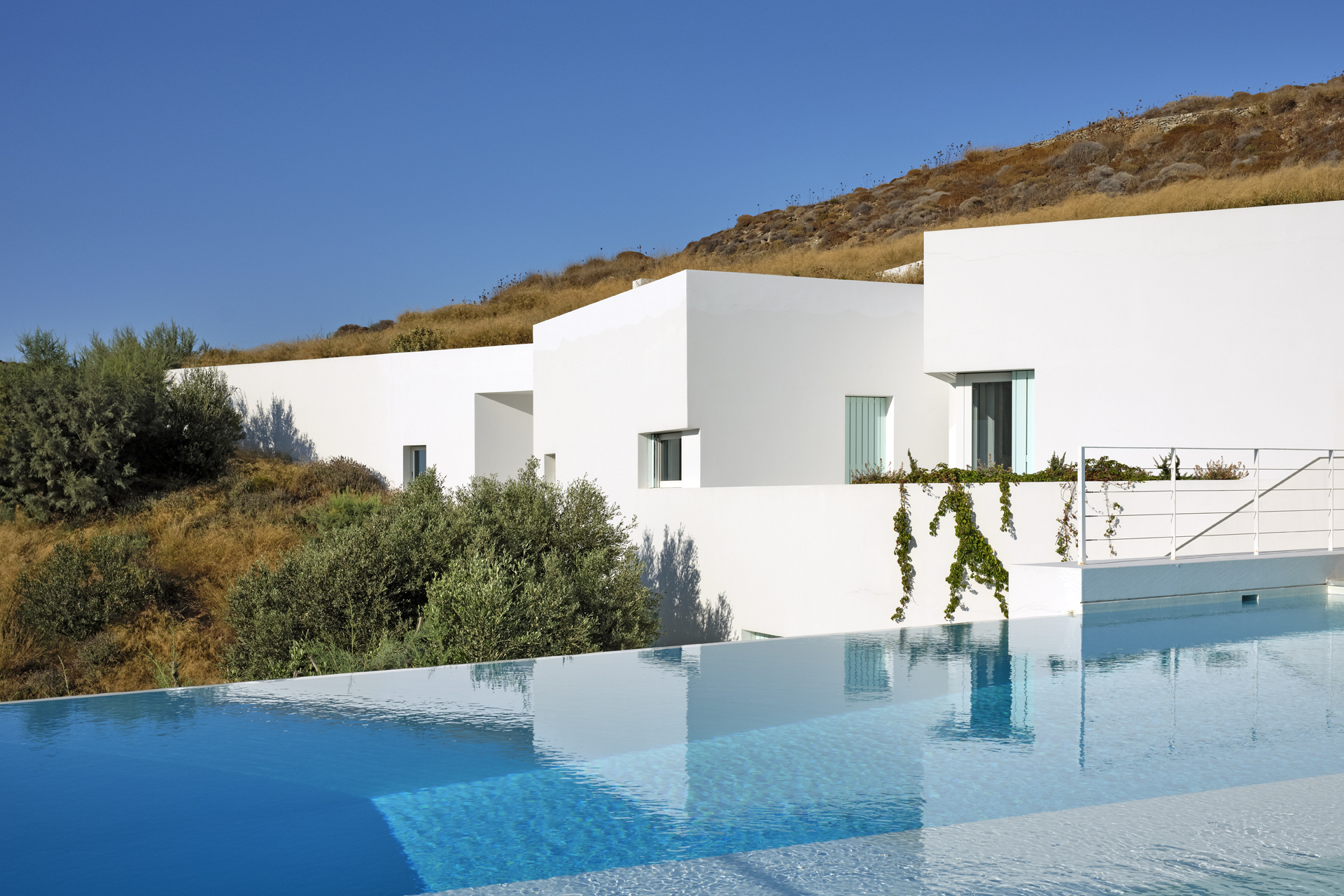 Σχεδιασμένο από τους Πορτογάλους αρχιτέκτονες Camilo Rebelo & Susana Martins, αυτός ο σύγχρονος εξοχικός οίκος – ο οποίος έχει προβληθεί στα πιο έκτακτα σπίτια του κόσμου του BBC. Το Ktima βρίσκεται σε ένα απόλυτα ήσυχο και ιδιωτικό μέρος του νησιού, είναι μέρος του βραβευμένου έργου Antiparos του Oliaros και μπορεί να φιλοξενήσει μια ομάδα οικογένειας και φίλων, διαθέτει μια όμορφα σχεδιασμένη πισίνα, με θέα στο εκπληκτικό πανόραμα του Αιγαίου. Η κύρια ιδέα του έργου βασίστηκε σε δύο στοιχεία: τους υπάρχοντες τοίχους, σε διαφορετικά επίπεδα, και τις πλατφόρμες που δημιουργήθηκαν από αυτούς τους τοίχους. Τα υψόμετρα των δύο επιπέδων κατοικιών είναι σπασμένες γραμμές που δημιουργήθηκαν ως συνέχεια των υπαρχόντων τειχών του χώρου. Η τοπογραφία βοηθά στη διάδοση του σπιτιού. Το Κτήμα σημαίνει ελληνικό αγρόκτημα ή αγροτεμάχιο με εύφορη γη. Η τοποθεσία του έργου είναι ένα οικόπεδο με απότομες πλαγιές, κυρίως πράσινο, με μερικά δέντρα που αποτελούν εξαίρεση στο πλαίσιο της Αντιπάρου. Η τάξη και το χάος μπορούν να βρεθούν στον ελληνικό πολιτισμό κατά τη διάρκεια των αιώνων, ακόμη και στις μέρες μας – ενδιαφερόμασταν για αυτές τις πτυχές και και οι δύο ήταν μέρος της ιδέας για αυτό το σπίτι. Στην περιοχή, μπορούμε να αντιληφθούμε αυτήν την κατασκευή με δύο διαφορετικούς τρόπους. Από ψηλά, στην κύρια περιοχή πρόσβασης, βλέπουμε μια παχιά λευκή και αφηρημένη γραμμή, προσαρμοσμένη στην τοπογραφία και στις εσωτερικές απαιτήσεις. Από την άλλη πλευρά, κοιτάζοντας από τη θάλασσα, ανακαλύπτουμε την πρόσοψη με μια εικονιστική, συνεχή αλλά προφανώς κατακερματισμένη σύνθεση που μας παραπέμπει σε μια αρχαία ακρόπολη. Η αρχιτεκτονική διαδικασία είναι πολύ περίπλοκη τις περισσότερες φορές και οι πίνακες του Palazuelo ήταν επίσης μια από τις πιο σχετικές αναφορές για αυτό το σπίτι. Στους ελληνικούς κανονισμούς, οι όγκοι δεν μπορούν να ξεπερνούν τα δέκα μέτρα και αυτός ο κανόνας υπαγορεύει το ρυθμό σύνθεσης, που σχετίζεται πάντα με τους εσωτερικούς χώρους. Όλα έχουν ξεχωριστή διαμόρφωση τοπίου και ποικίλλουν ιδιαίτερα στην ποσότητα και την ένταση του φωτός. Με βάση ένα μεγάλο πρόγραμμα, αποφασίσαμε να χωρίσουμε το σπίτι σε δύο επίπεδα: το επίπεδο εισόδου είναι το κύριο σπίτι και το χαμηλότερο επίπεδο του ξενώνα, των υπηρεσιών και του προσωπικού. Το σπίτι χτίστηκε σύμφωνα με την τοπική παράδοση κατασκευής και τους κανονισμούς του νησιού – αυτές οι πτυχές ήταν ζωτικής σημασίας για την έκφραση του σπιτιού. Αυτό το σπίτι έχει μια ιδιαίτερα ευνοϊκή κατάσταση από τη βιώσιμη άποψη: η πράσινη οροφή εγγυάται αποτελεσματικότητα σε σταθερή θερμοκρασία στο εσωτερικό, χωρίς την ανάγκη ισχυρών συστημάτων ψύξης. Στο πίσω μέρος του σπιτιού, ενσωματώσαμε μερικές βεράντες που είναι εξαιρετικά σημαντικές και για τα δύο επίπεδα αερισμού. Έτσι προσπαθήσαμε να χρησιμοποιήσουμε απλά στοιχεία αρχιτεκτονικής για να επιτύχουμε χαμηλή κατανάλωση ενέργειας.