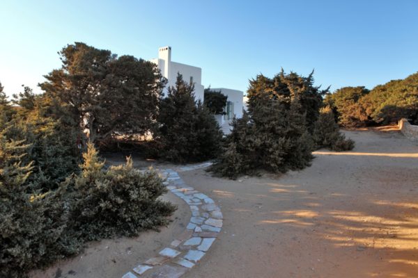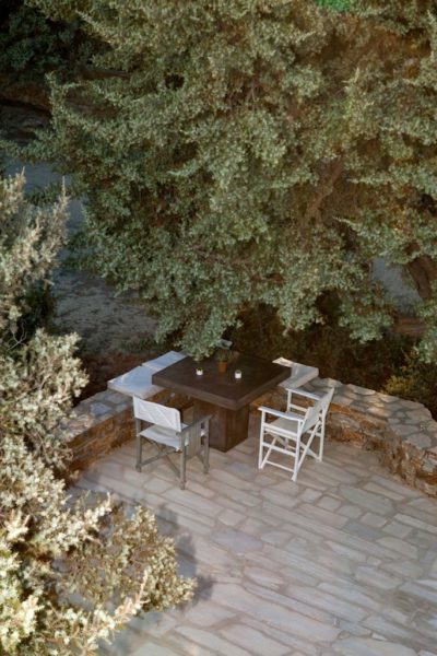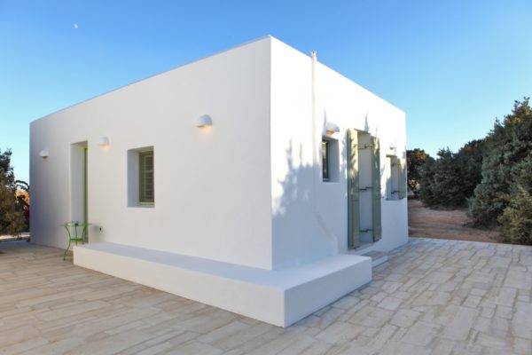 Αυτή η άνετη βίλλα είναι περιτριγυρισμένη από ένα μικρό δάσος κέδρου και μπορεί να φιλοξενήσει μία οικογένεια και τους καλεσμένους της στο κύριο σπίτι και στον γειτονικό ξενώνα δύο υπνοδωματίων. Σεβόμενος τα δέντρα και την μοναδική θέα, ο αρχιτέκτονας σχεδίασε το σχήμα της βίλλας γύρω από έναν κέδρο που βρίσκεται στην μέση της ιδιοκτησίας, δημιουργώντας έτσι μία αυλή που μπορεί να χωρέσει άνετα 10 άτομα για δείπνο. Μία ταράτσα που προσφέρει θέα στη θάλασσα και το ηλιοβασίλεμα, είναι προσβάσιμη μέσω του μεγάλου υπνοδωματίου στον πρώτο όροφο, ή μέσω μιας σειράς σκαλοπατιών από την αυλή. Η αμμουδερή παραλία είναι μόλις δέκα λεπτά περπάτημα, και το κύριο χωριό της Αντιπάρου με τα εστιατόριά του και τα καφέ του είναι επίσης σε κοντινή απόσταση.