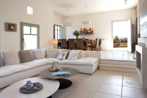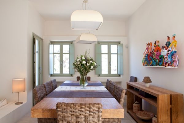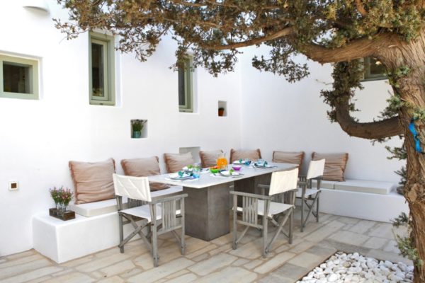 Μία οικογενειακή παραλία μπροστά από τη βίλλα βυθισμένη στη κυκλαδική φύση.
