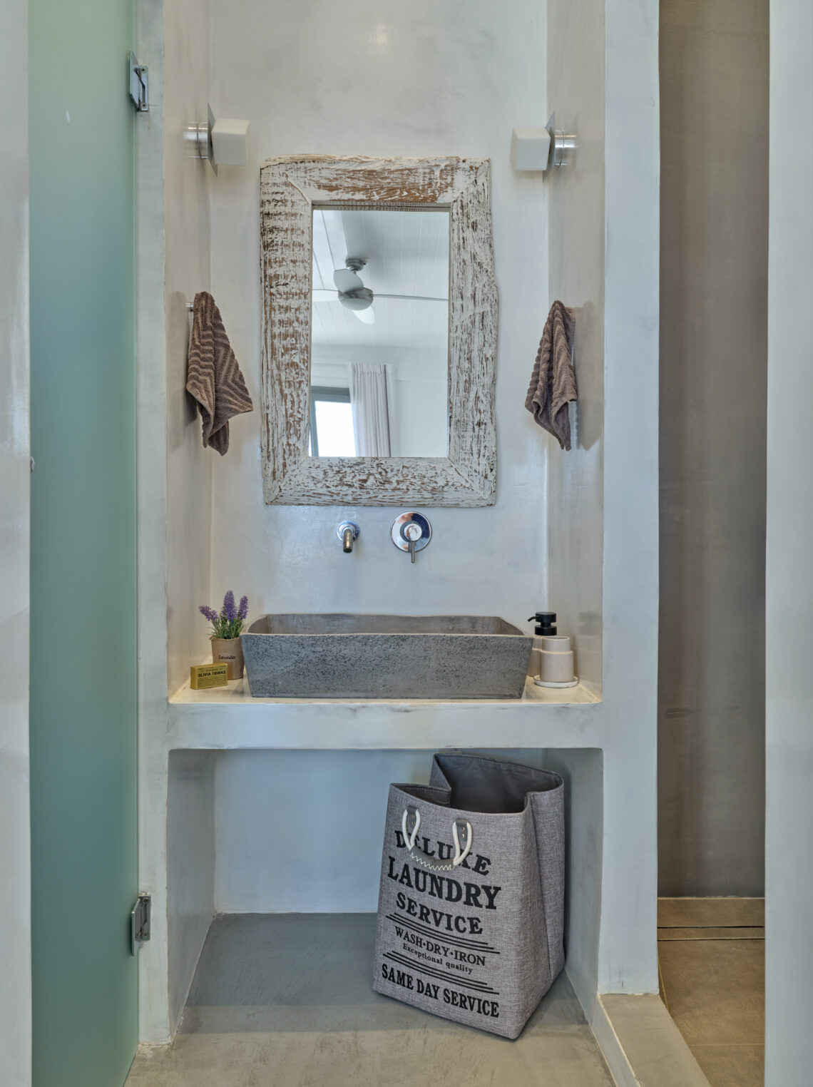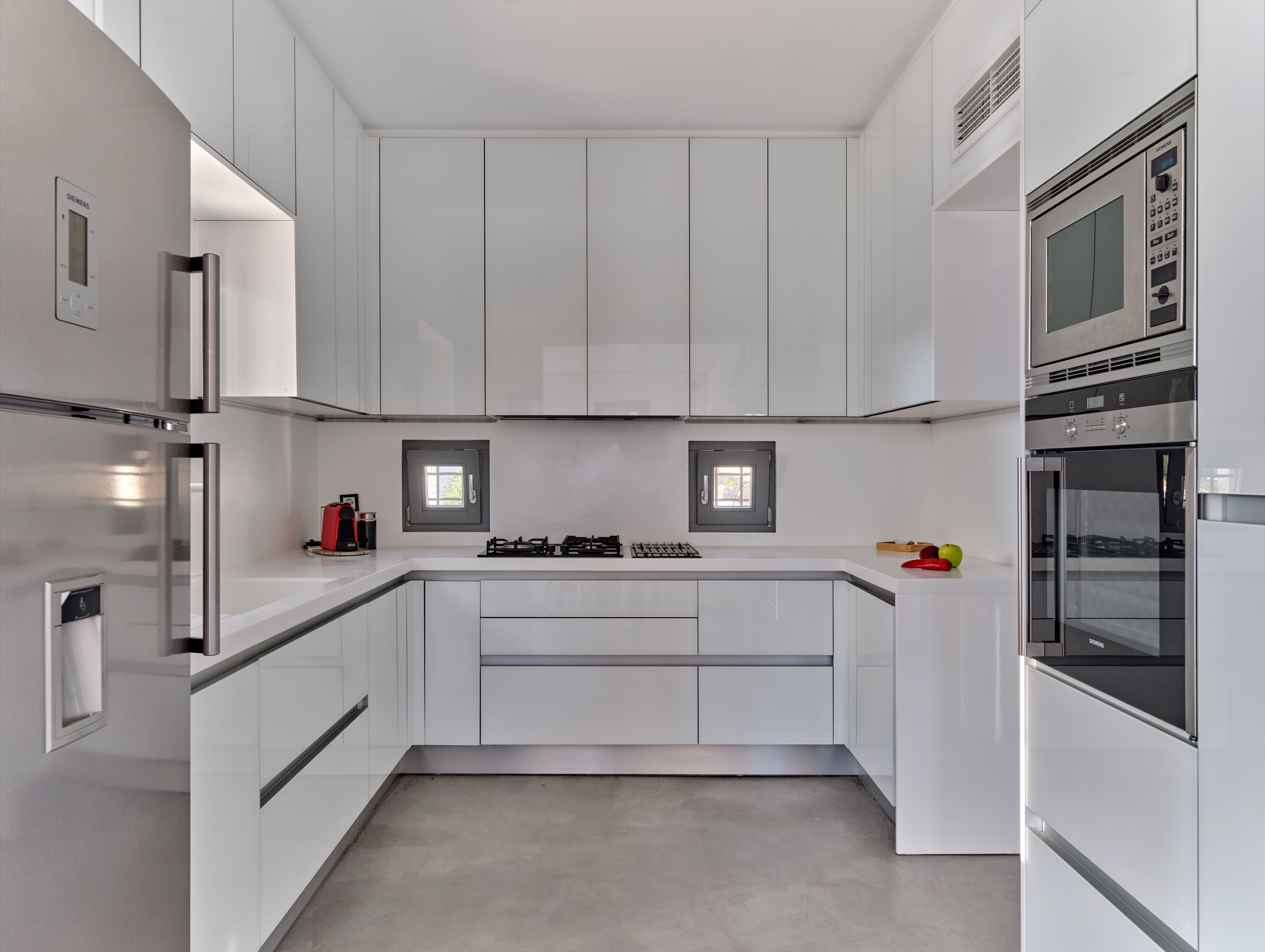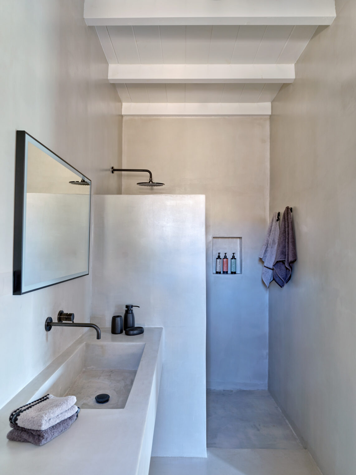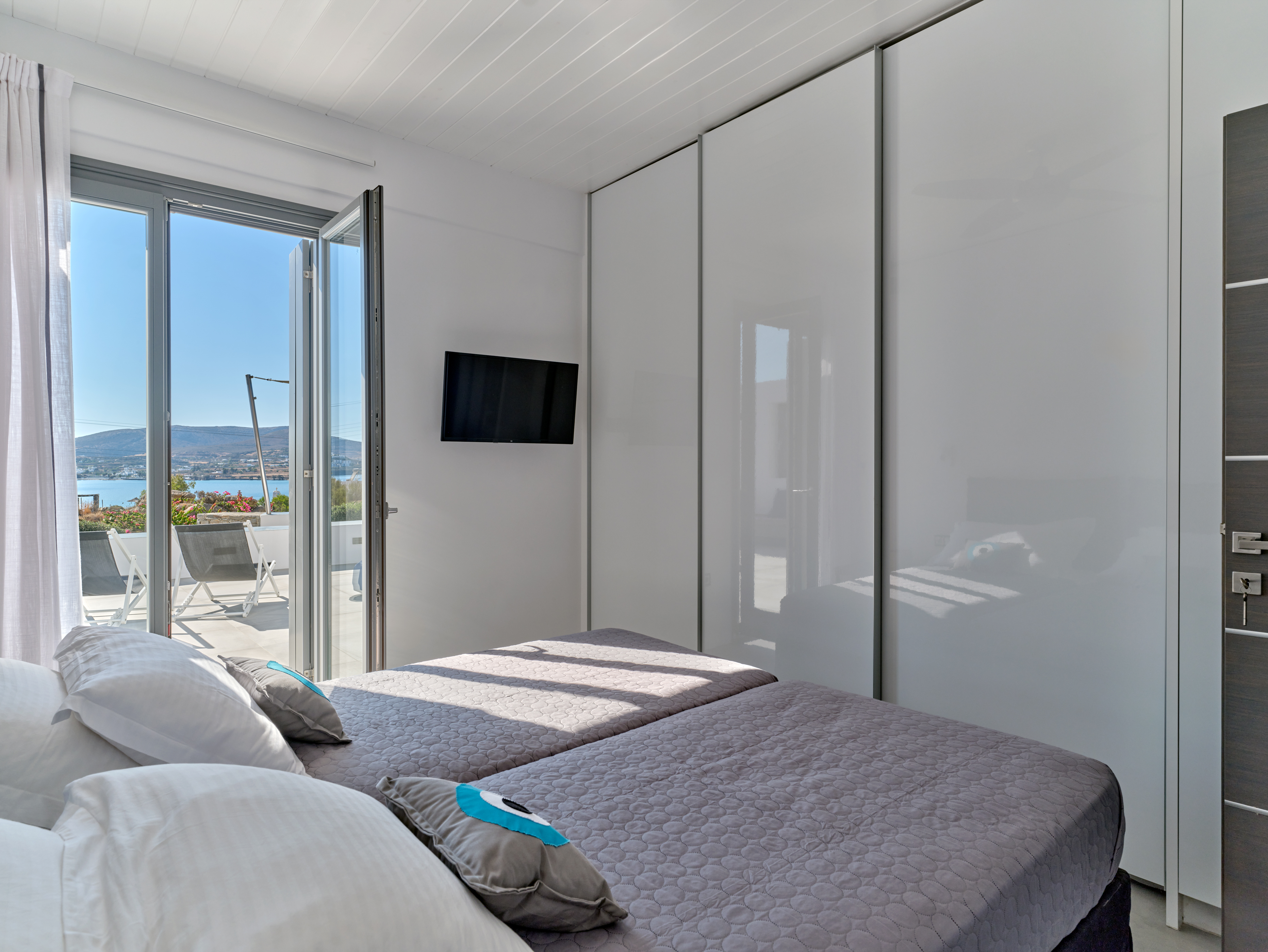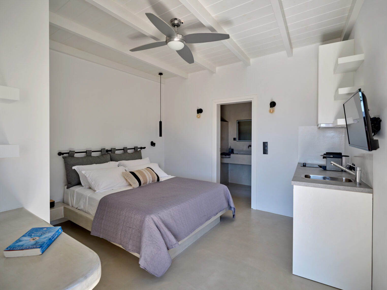 Enjoy stunning rocky surroundings and the infinity pool with outdoor dining areas that can accommodate 14 guests on each side. Relax poolside on ten comfortable chairs, sip drinks at the sixseat bar, and listen to your favorite music. Shaded lounge areas, three outdoor showers, and a BBQ are also available.The house offers ample opportunities to dine. To have and to host, they say. Invite your friends for a quiet evening outside, or hold a formal dinner in the spacious indoor dining room with a reclaimed wooden table.