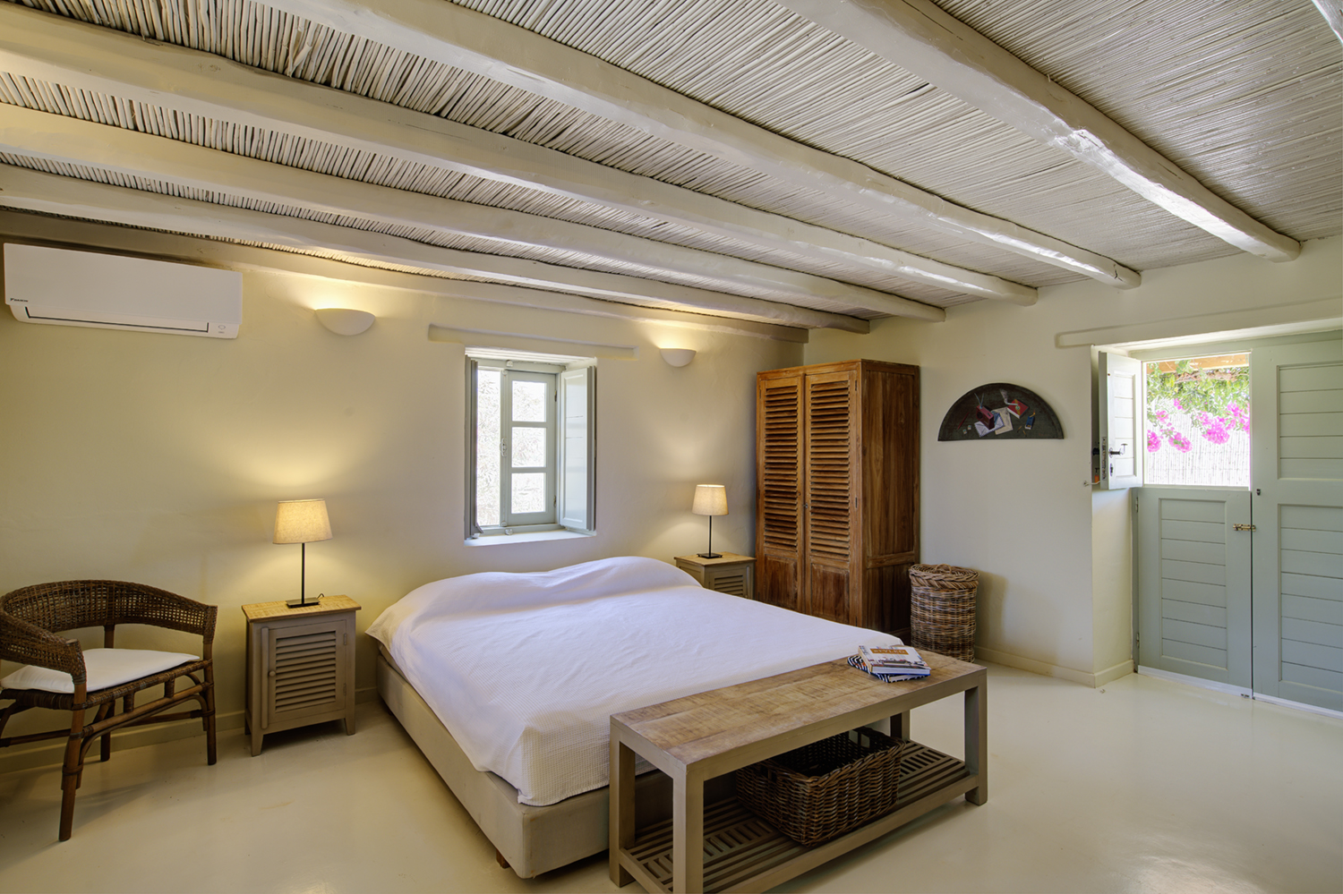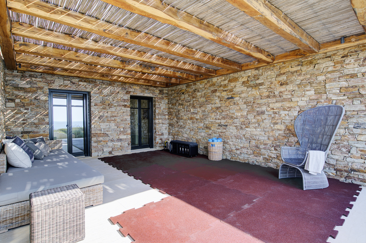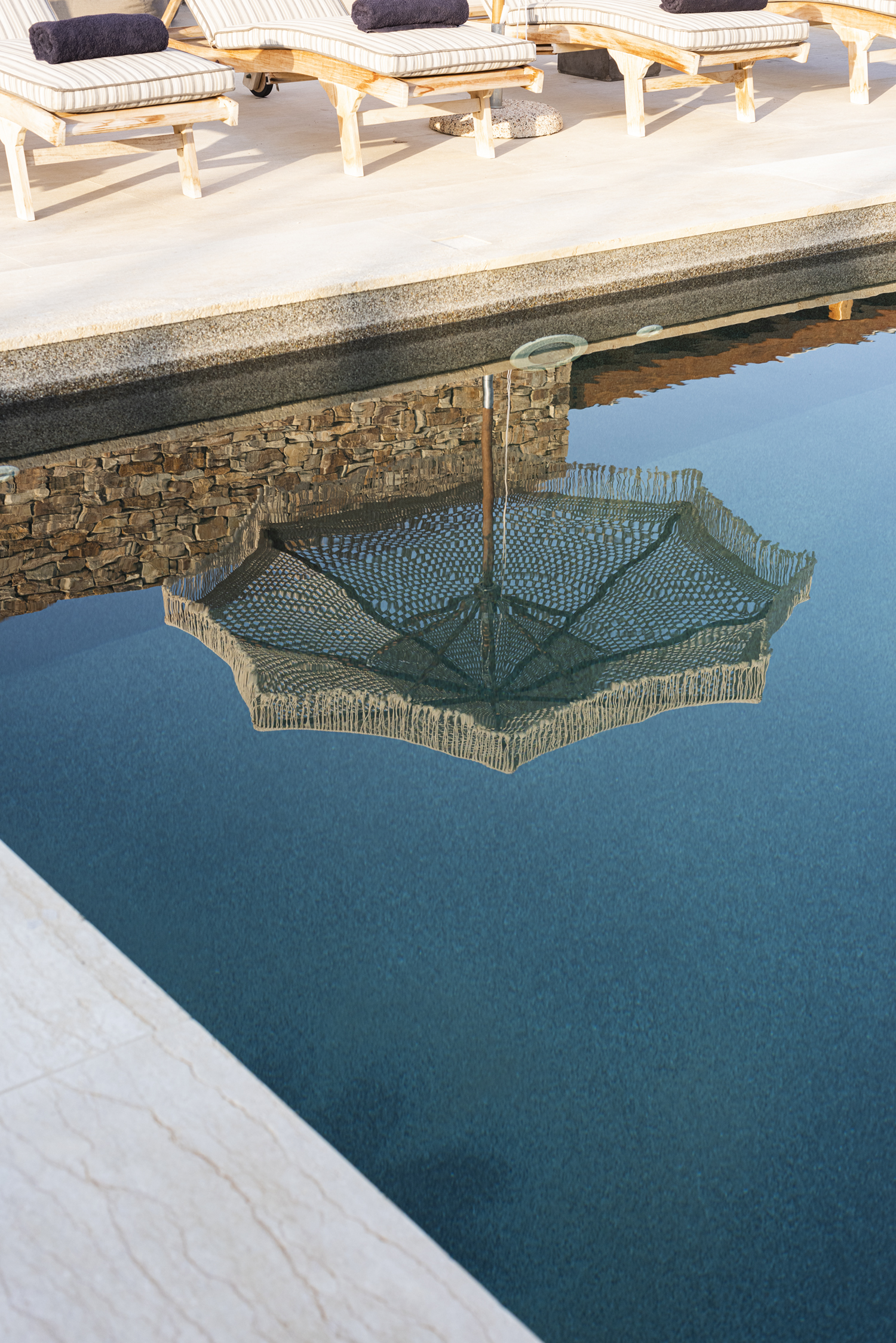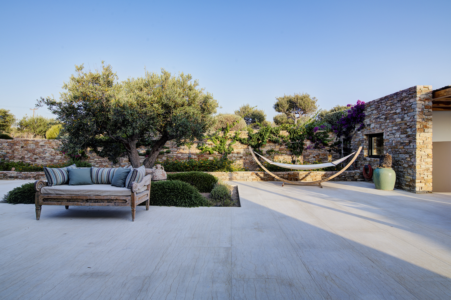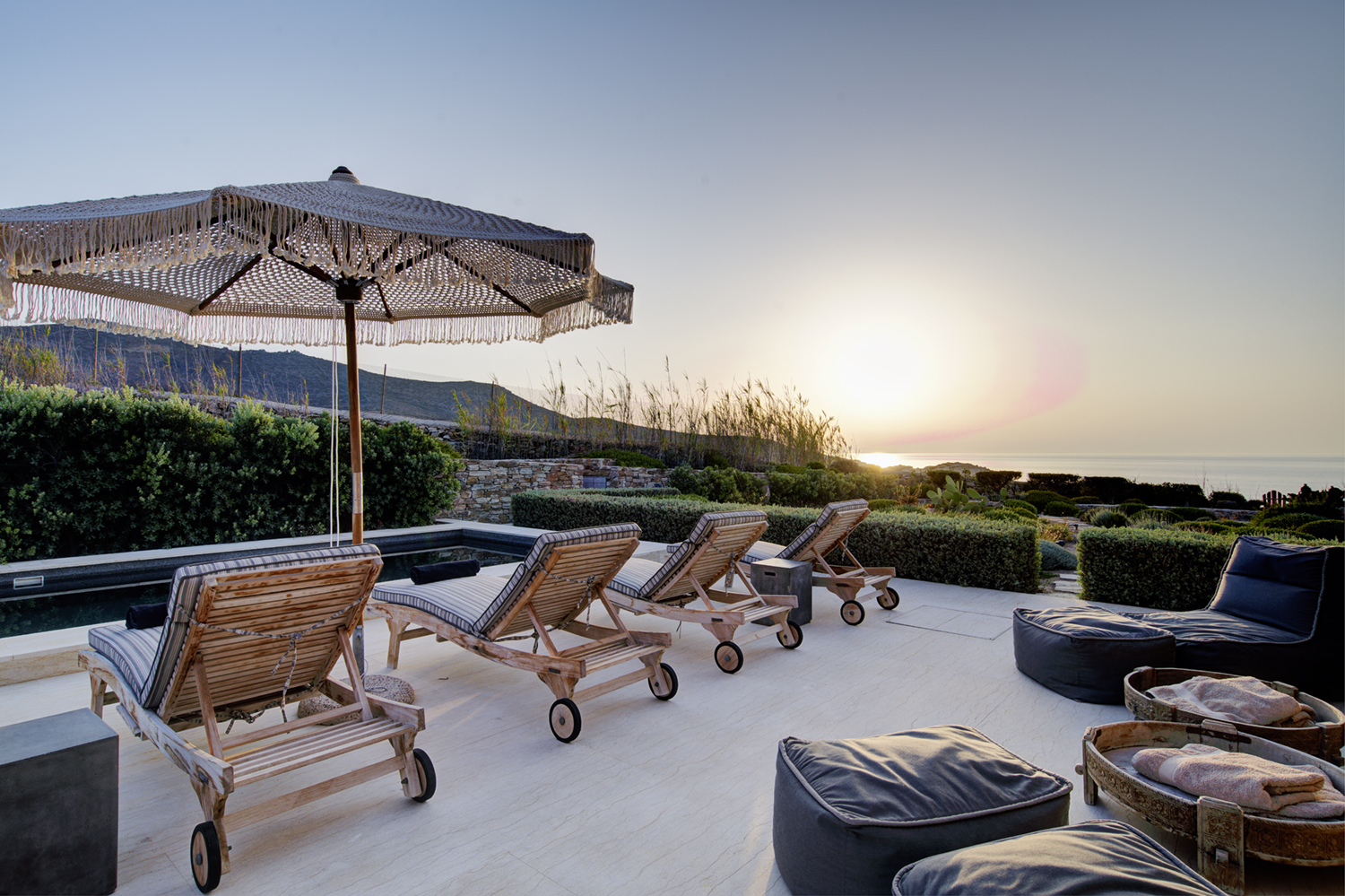 Designed by DECA architects, the villa is walking distance from Livadia beach on the west coast of Antiparos. Inspired by the surrounding natural landscape, it is built from local stone and wood, with a beautiful covered terrace that frames the view of the Aegean beyond. With a generous pool and long outdoor dining table, it is designed with relaxing vacations in mind. Livadia can be rented as either a four or six bedroom house, with a maximum of 12 guests.