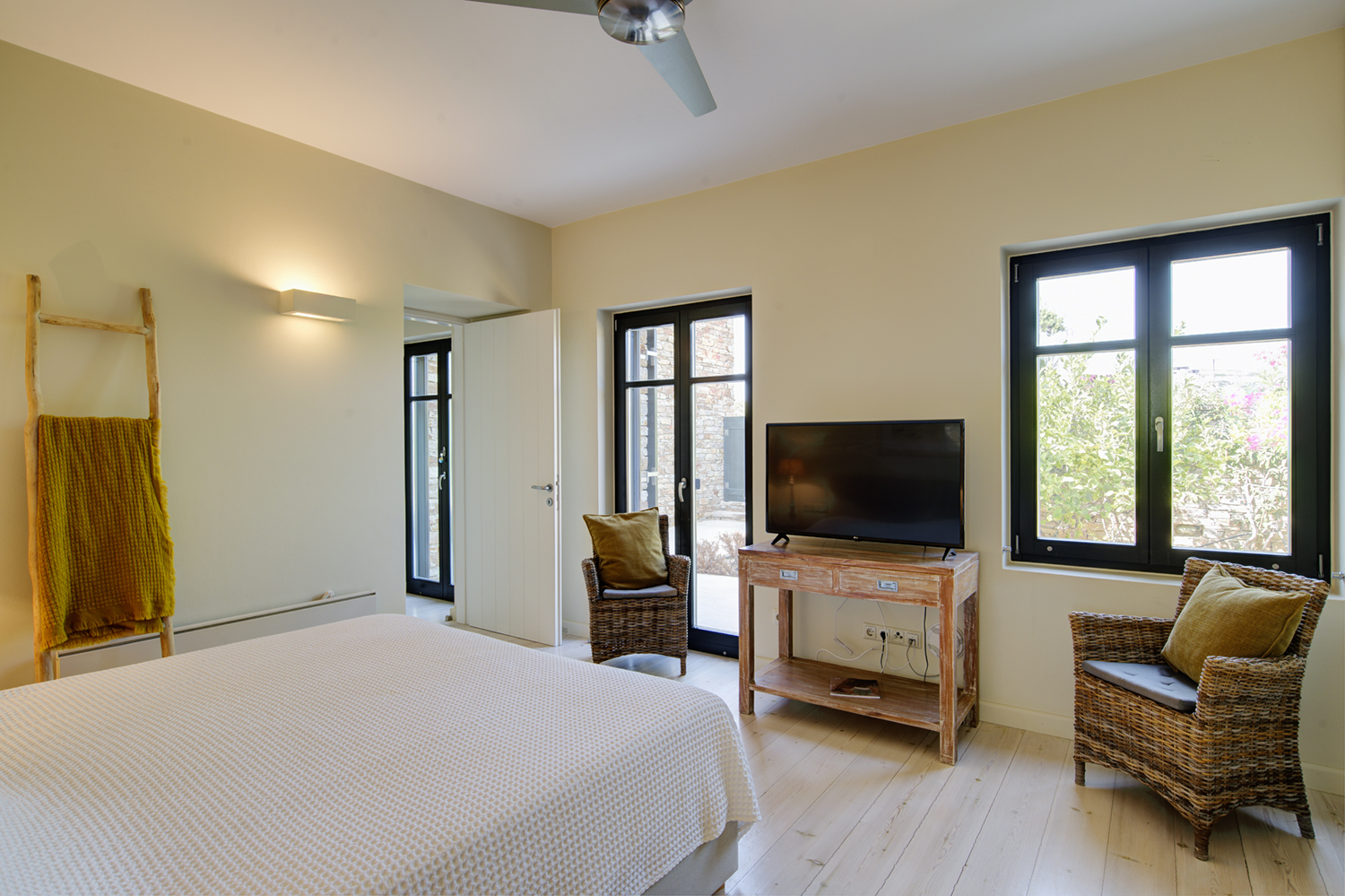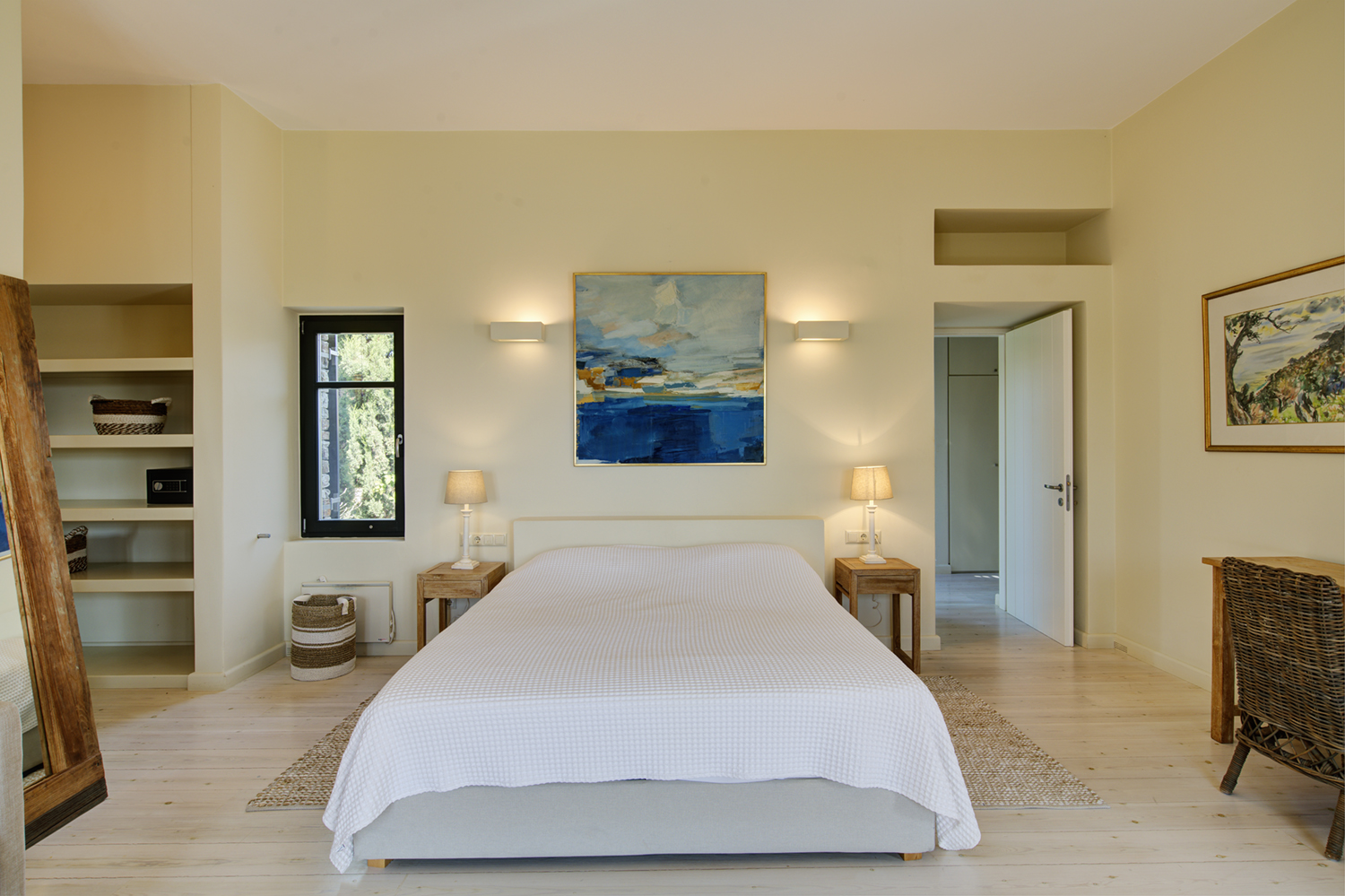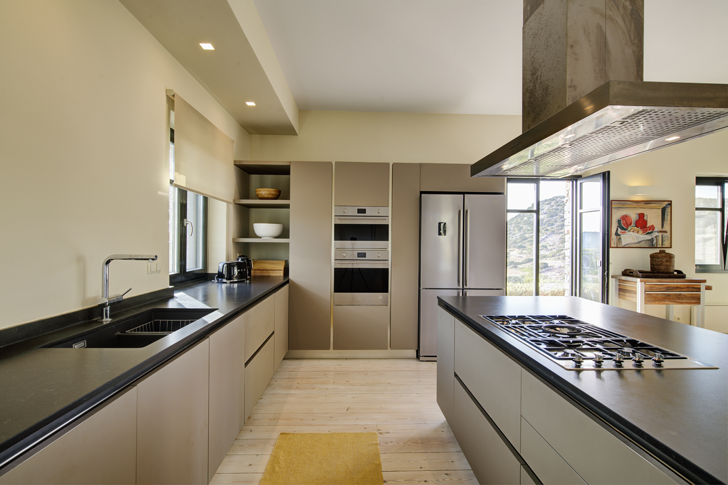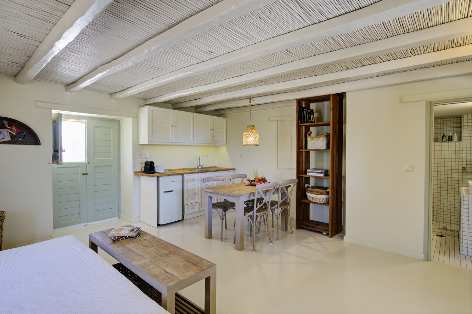 Designed by DECA architects, the villa is walking distance from Livadia beach on the west coast of Antiparos. Inspired by the surrounding natural landscape, it is built from local stone and wood, with a beautiful covered terrace that frames the view of the Aegean beyond. With a generous pool and long outdoor dining table, it is designed with relaxing vacations in mind. Livadia can be rented as either a four or six bedroom house, with a maximum of 12 guests.