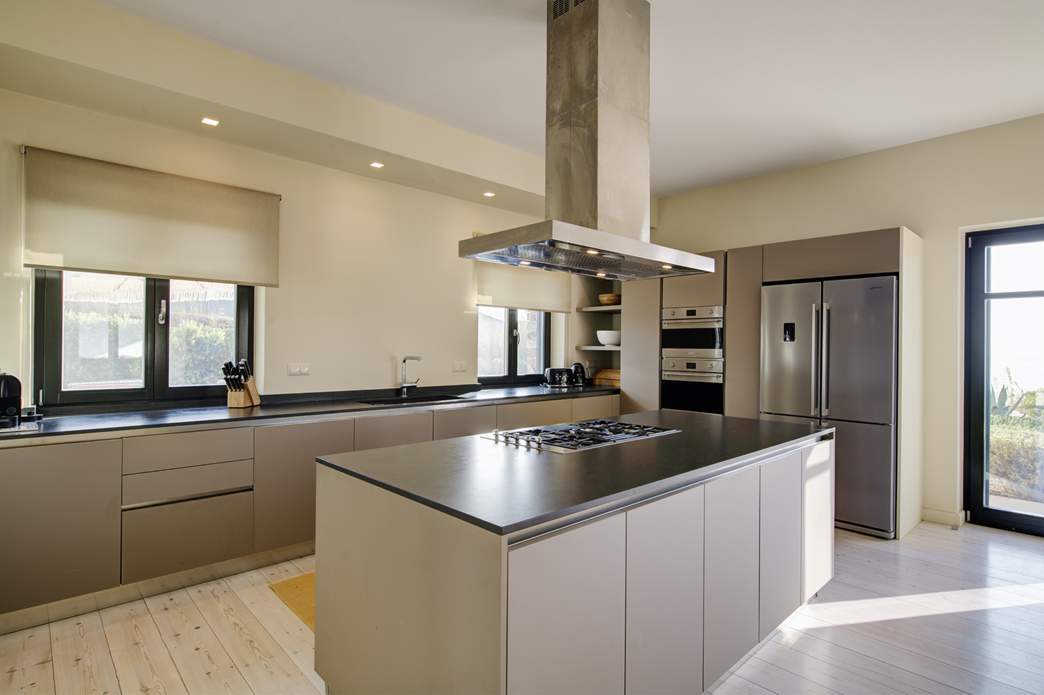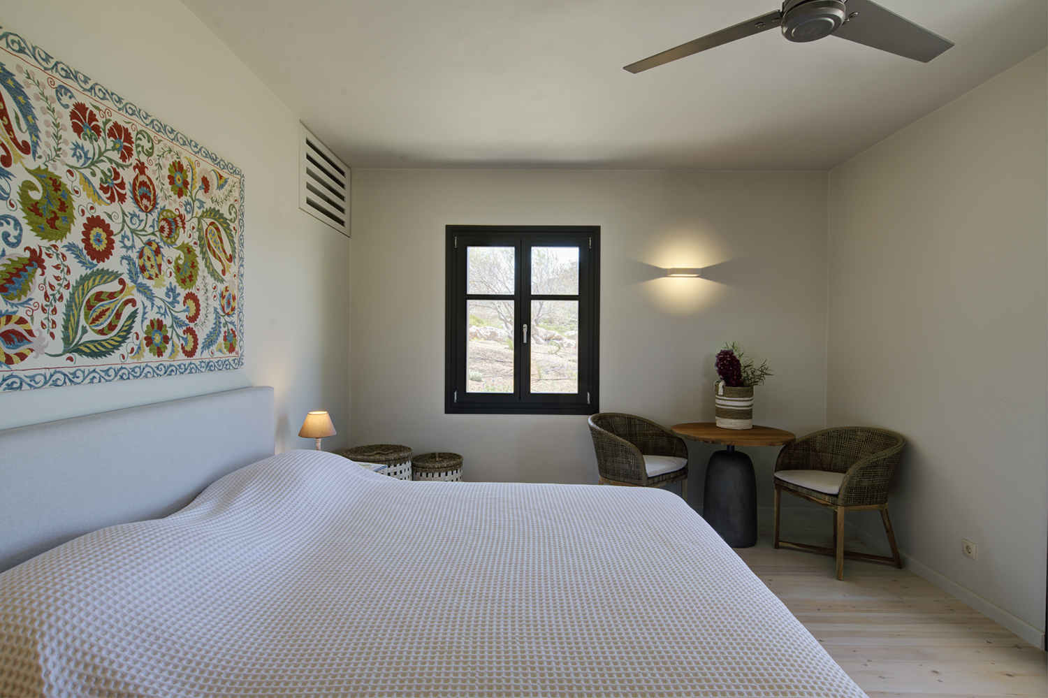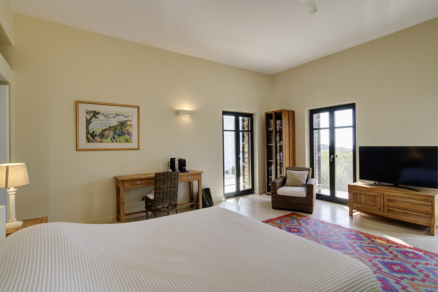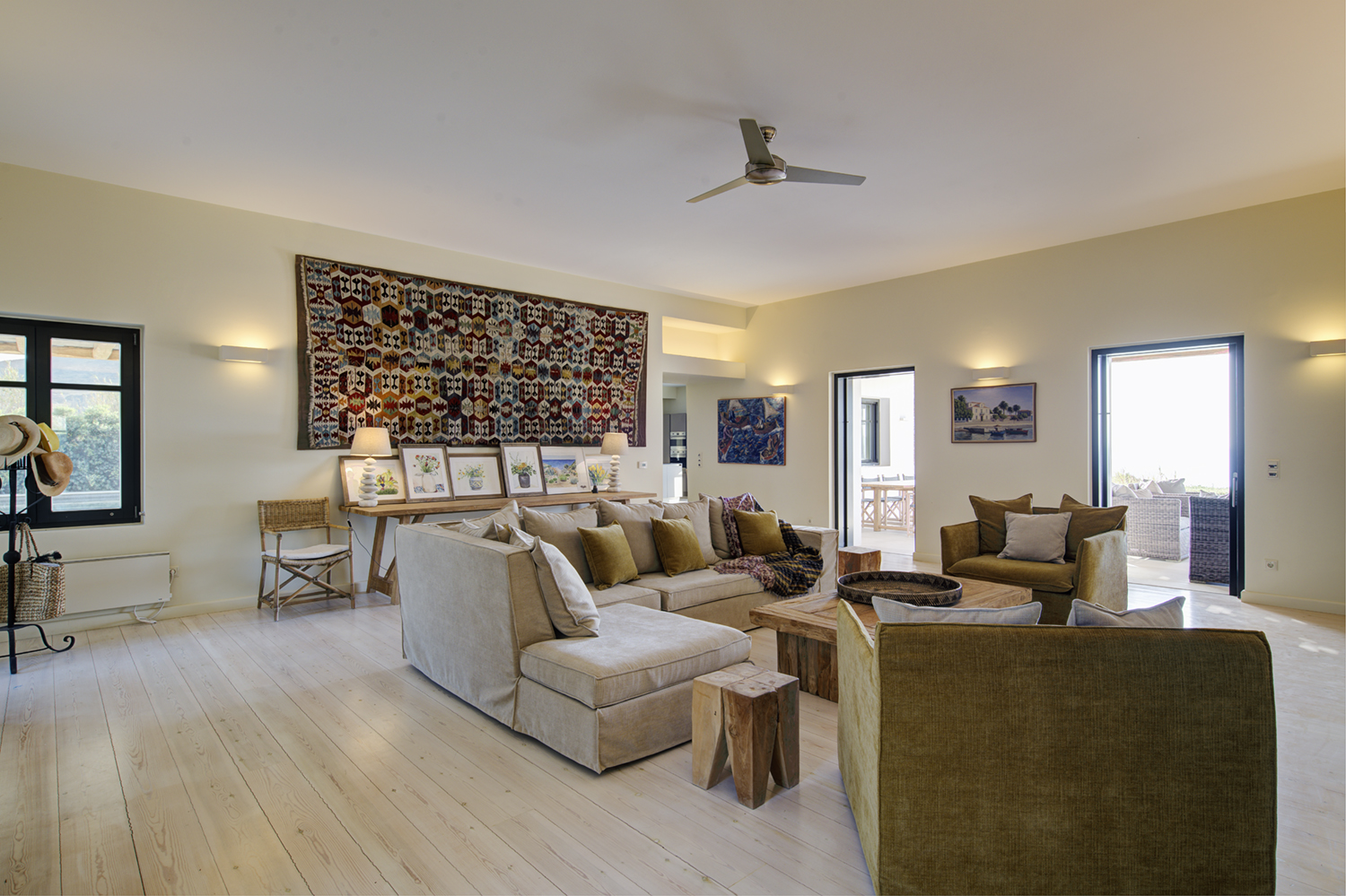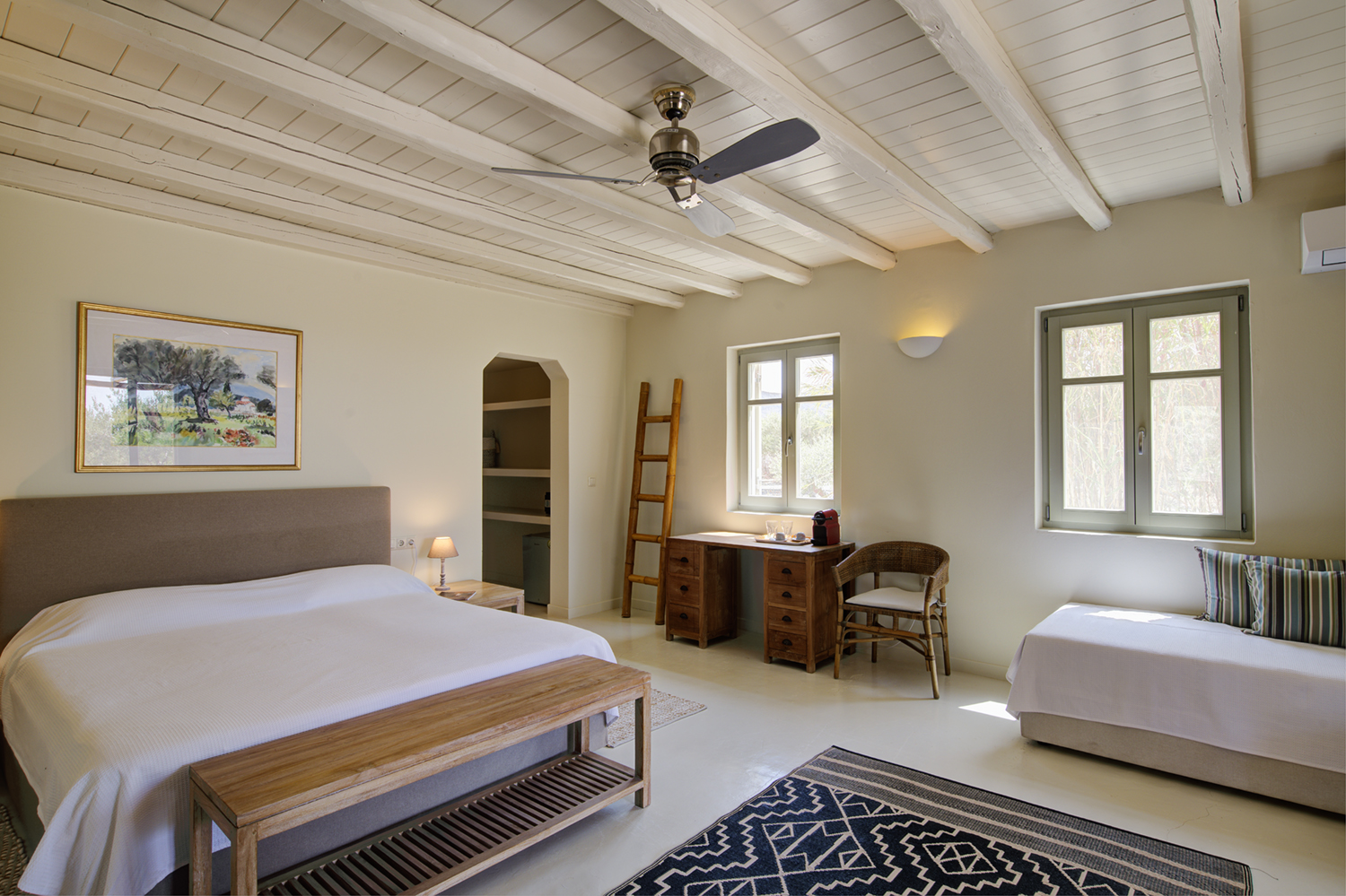 Designed by DECA architects, the villa is walking distance from Livadia beach on the west coast of Antiparos. Inspired by the surrounding natural landscape, it is built from local stone and wood, with a beautiful covered terrace that frames the view of the Aegean beyond. With a generous pool and long outdoor dining table, it is designed with relaxing vacations in mind. Livadia can be rented as either a four or six bedroom house, with a maximum of 12 guests.