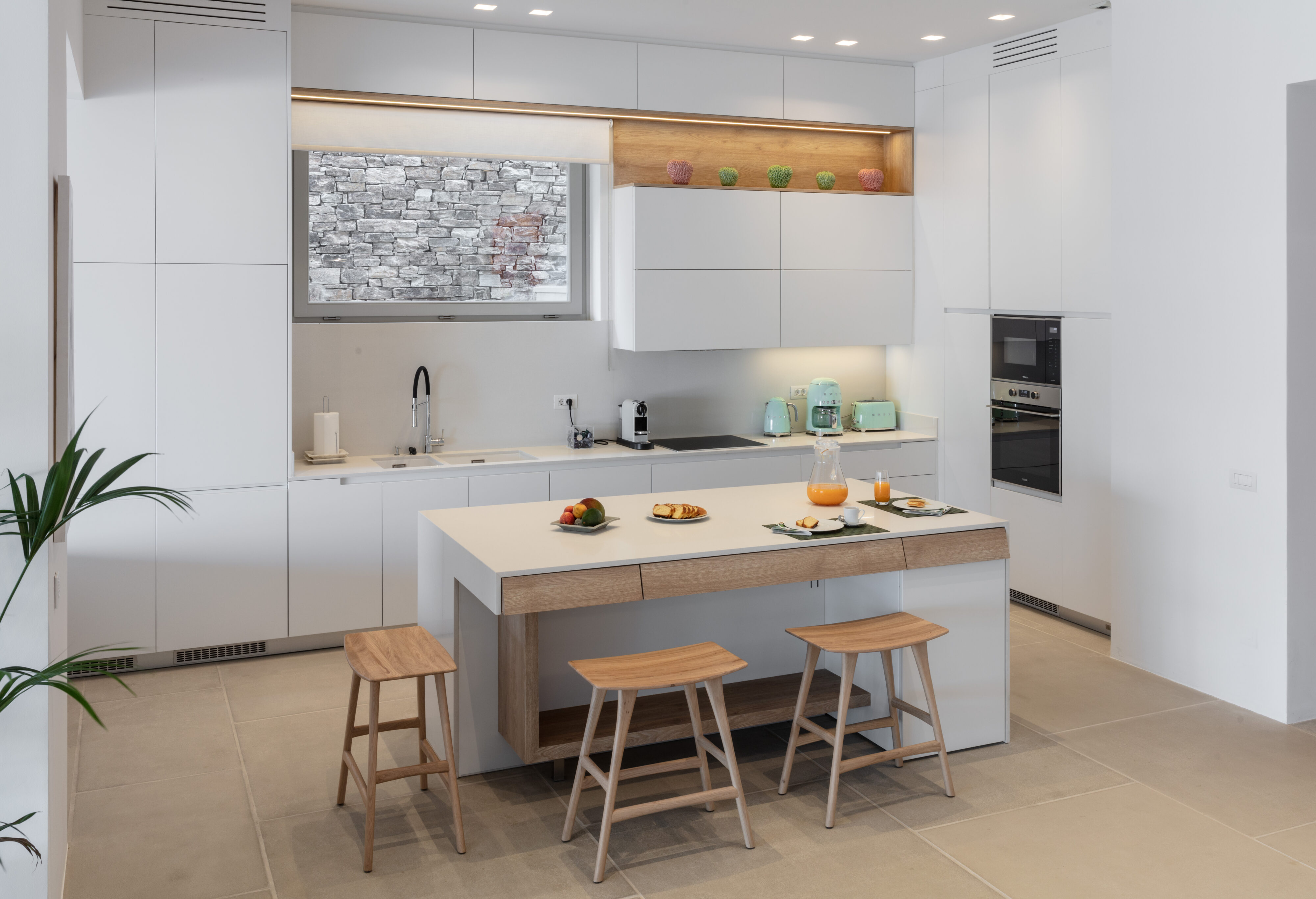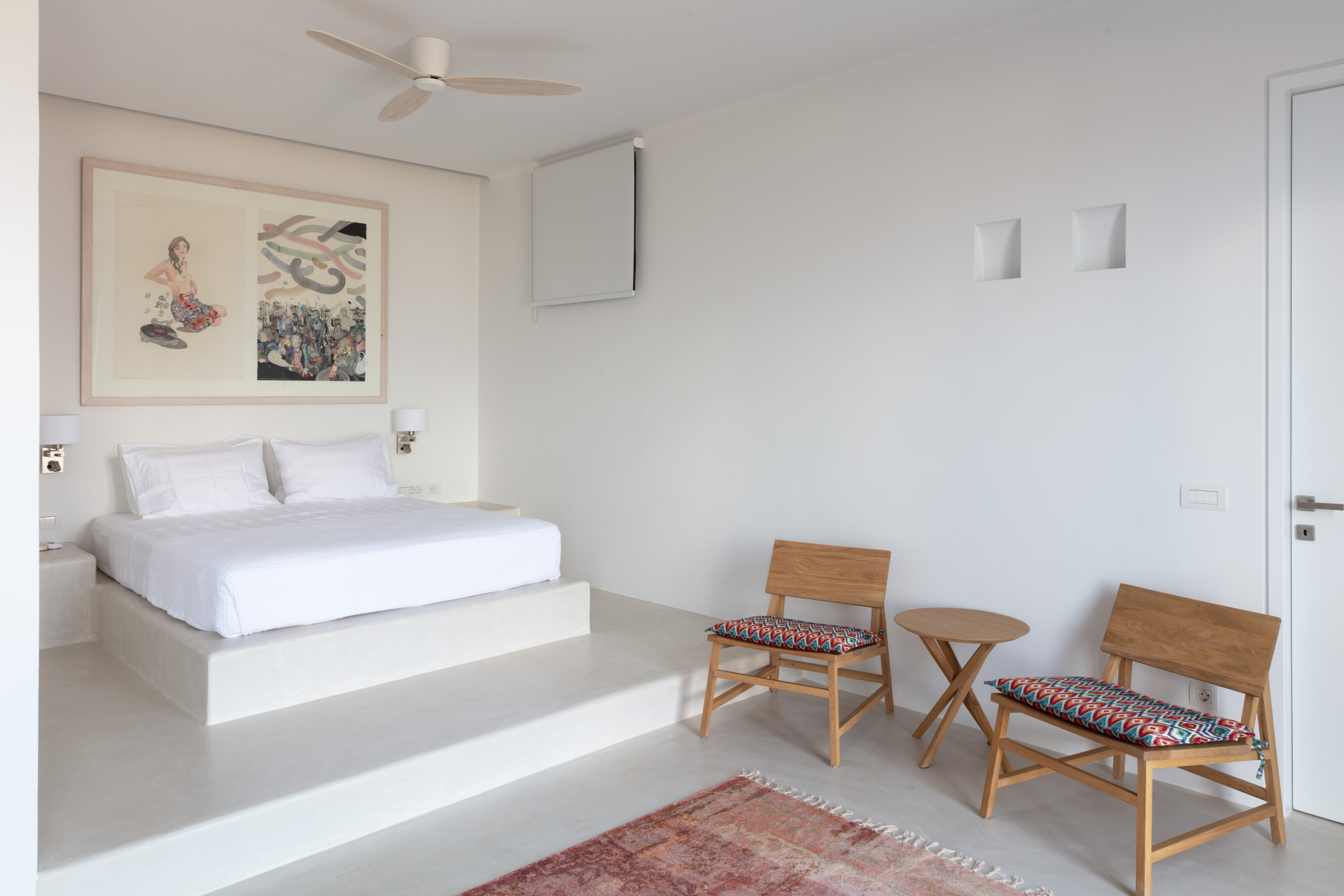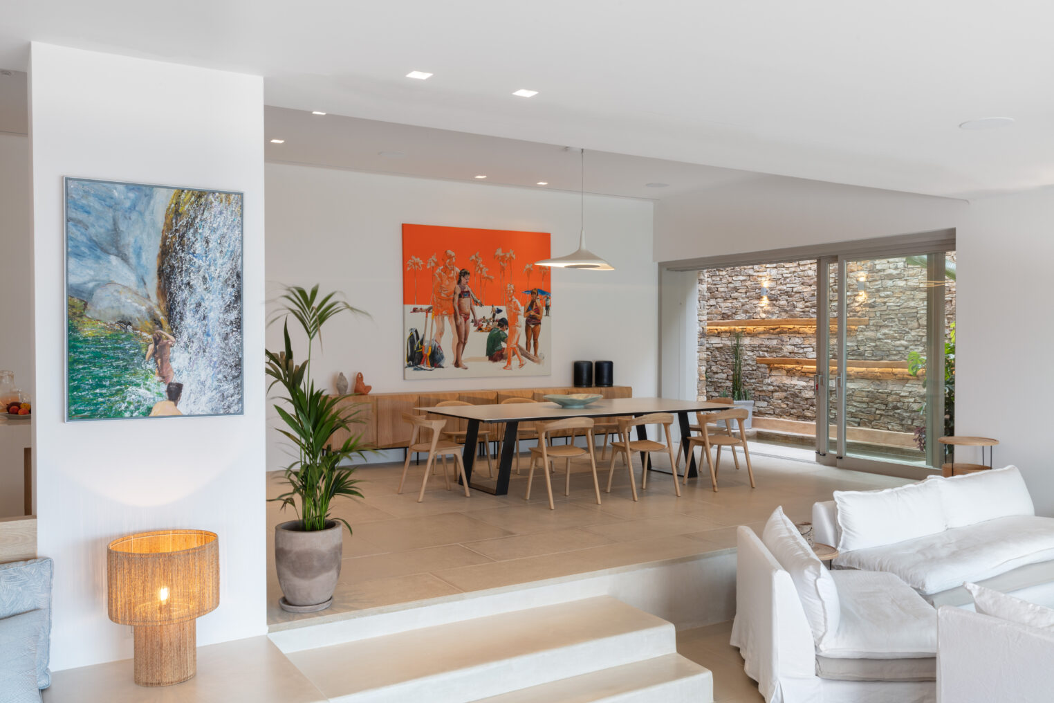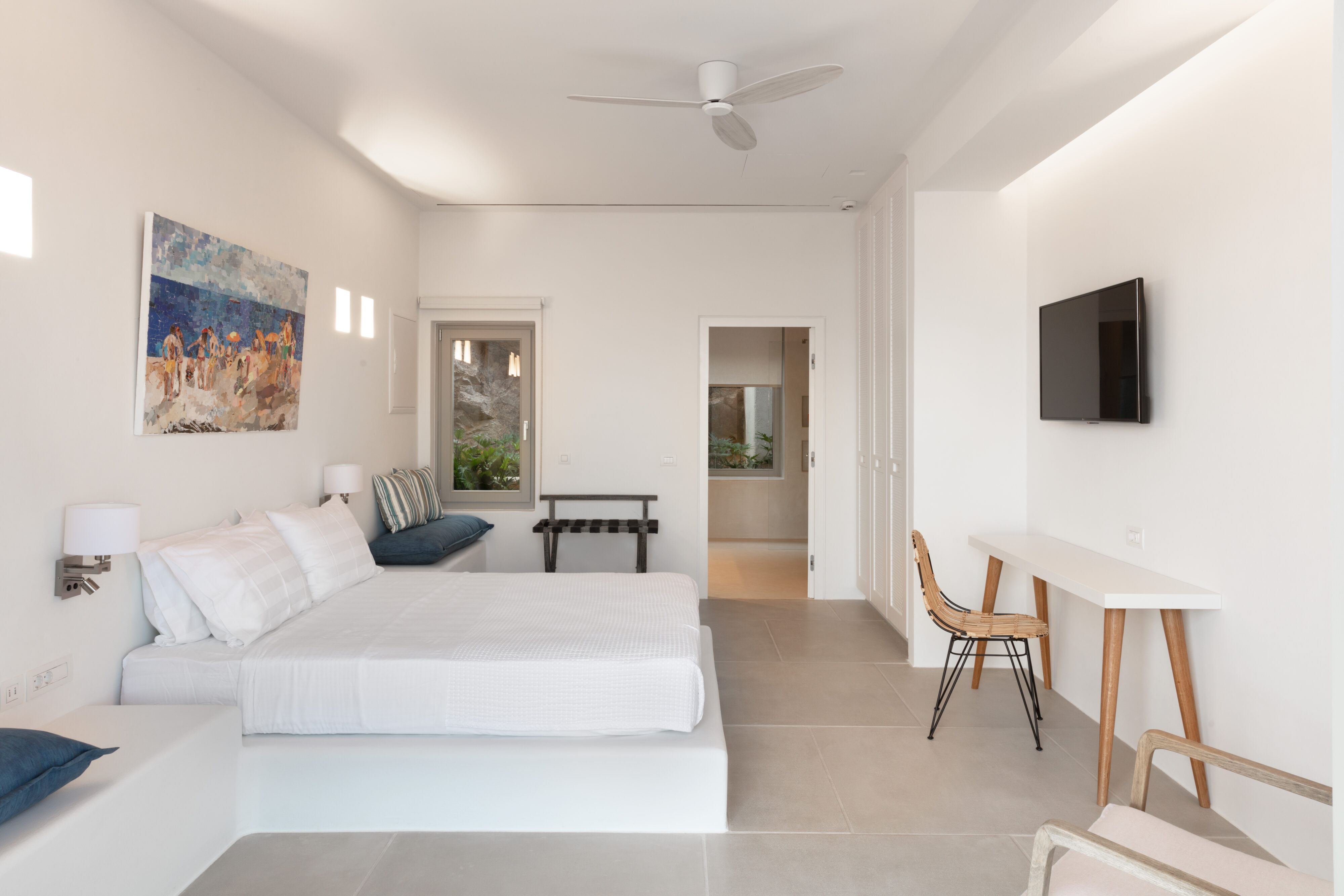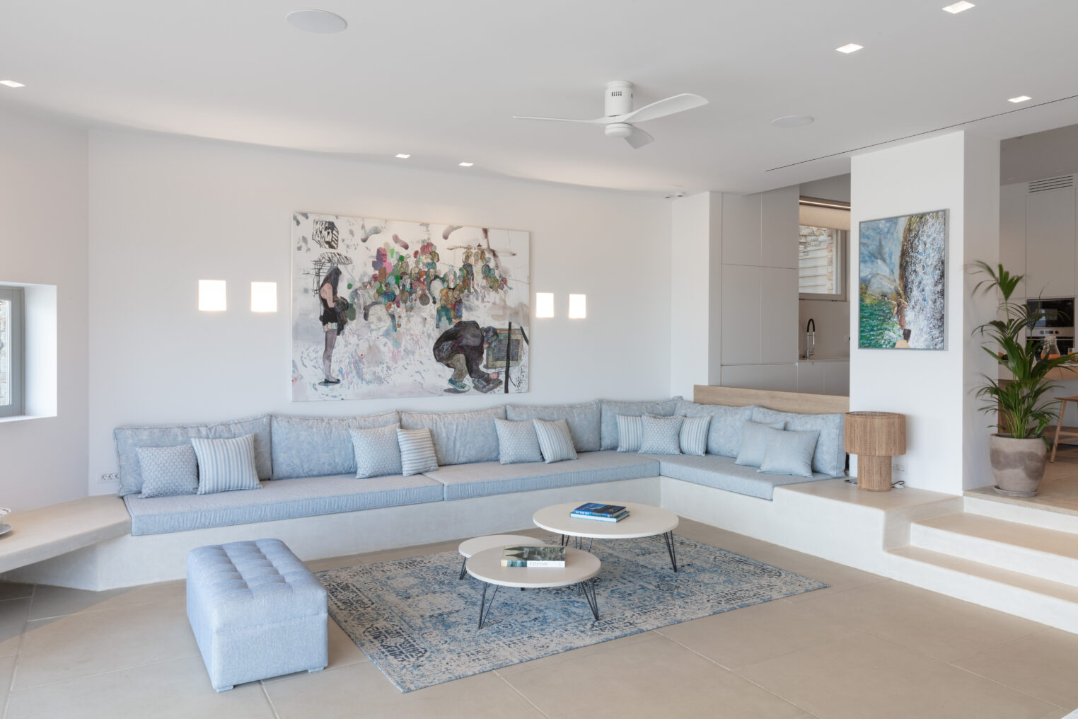 Parathires enjoys a wonderful setting, with sweeping views over Antiparos’ coastline and the Chora, and the surrounding natural landscape. With eight bedrooms sleeping 16 people, this villa is perfect for big groups and occasions. It has an infinity pool looking across to neighboring Cycladic islands, with plenty of comfortable daybeds for lounging all together under the Mediterranean sun. Calm and serene, it is also close to the action down in the port and the Chora.