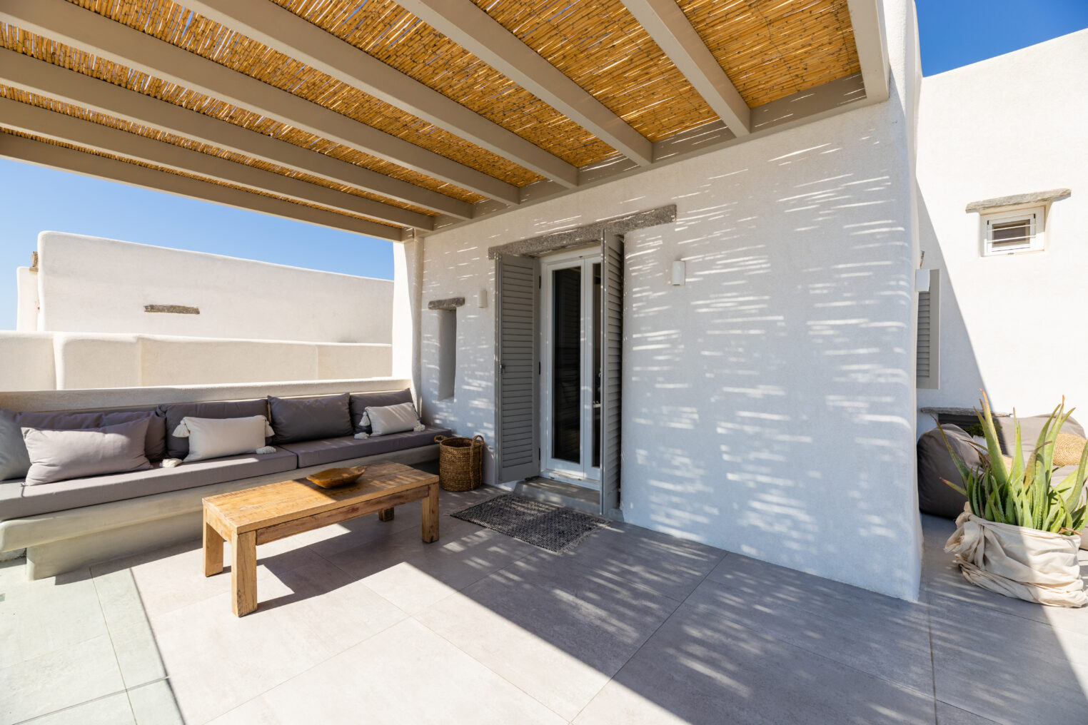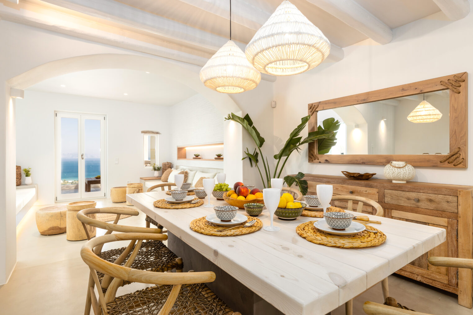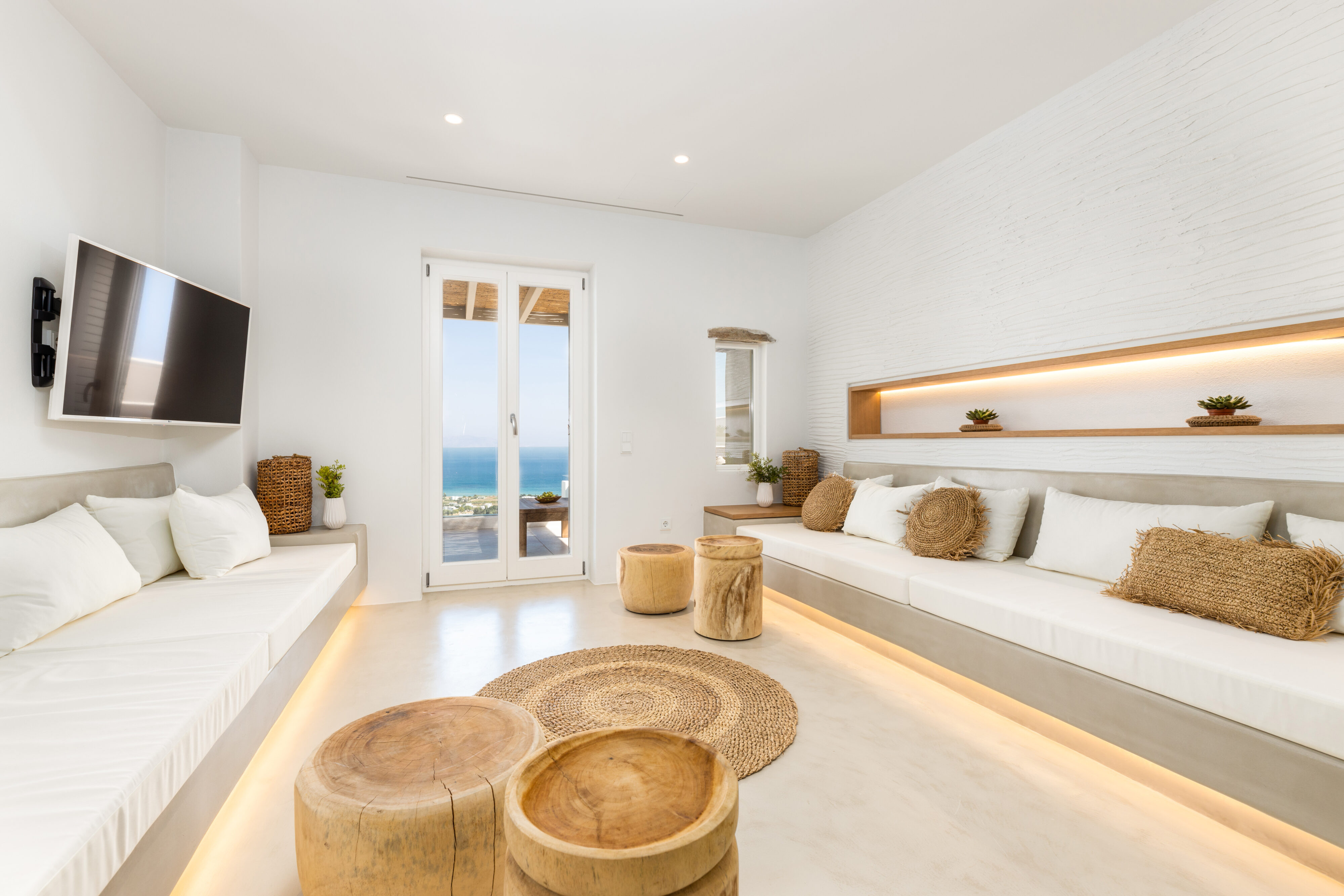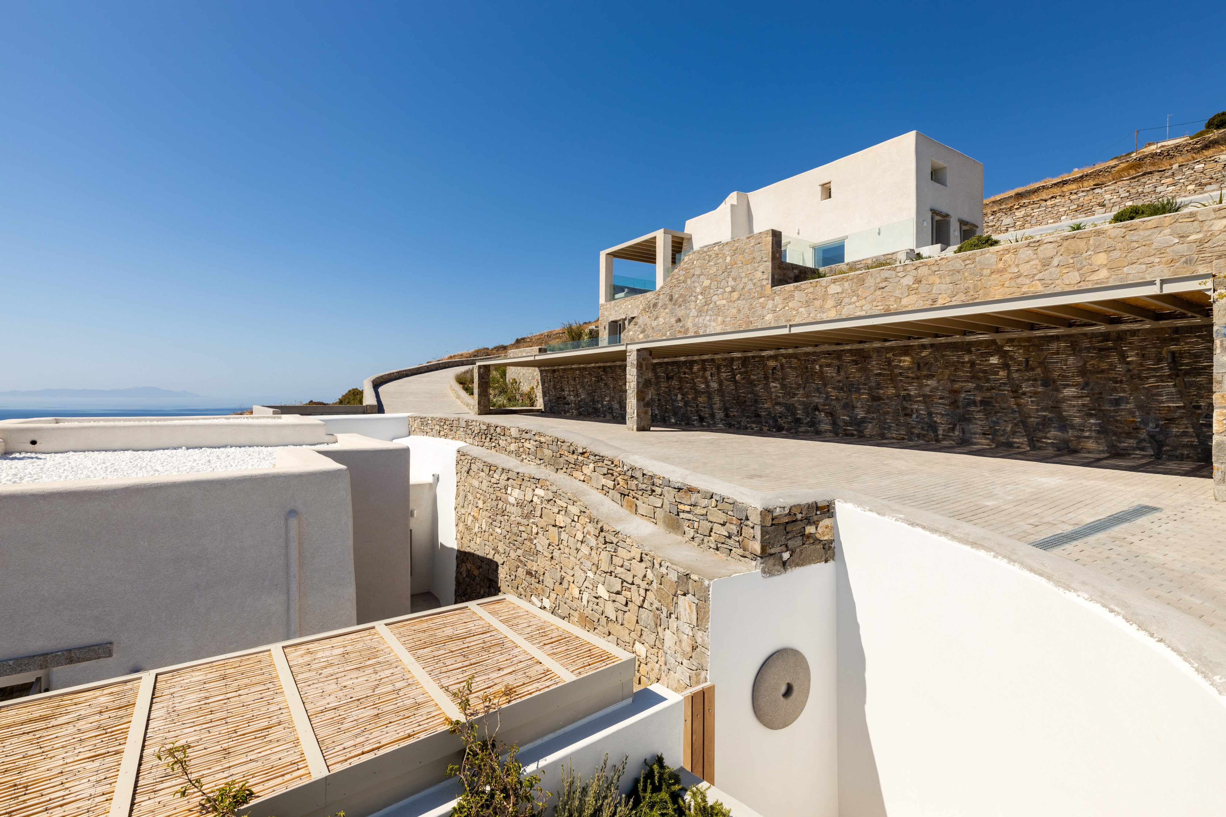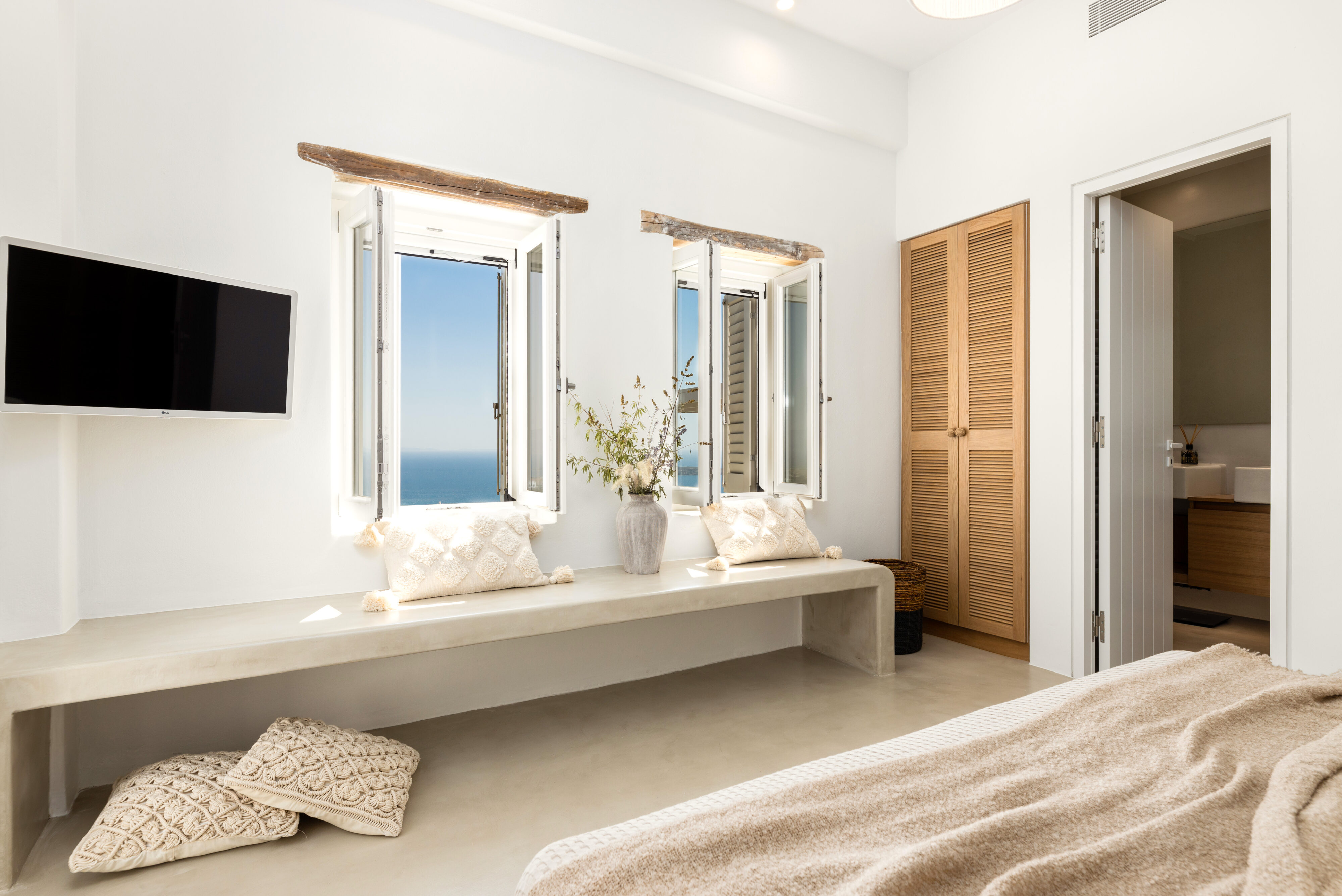 Villa Derfi 1 in Dryos, Paros, is a glamorous escape for 4 couples or groups of up to 10. The guest master bedroom offers a private garden for seclusion, while the pool’s bench bed is the ultimate spot to lounge, soak up the sun, and enjoy island life.