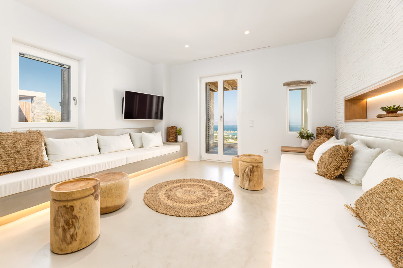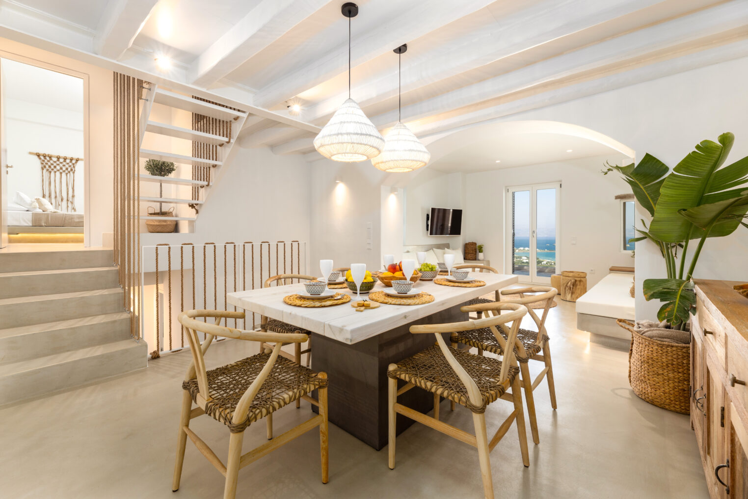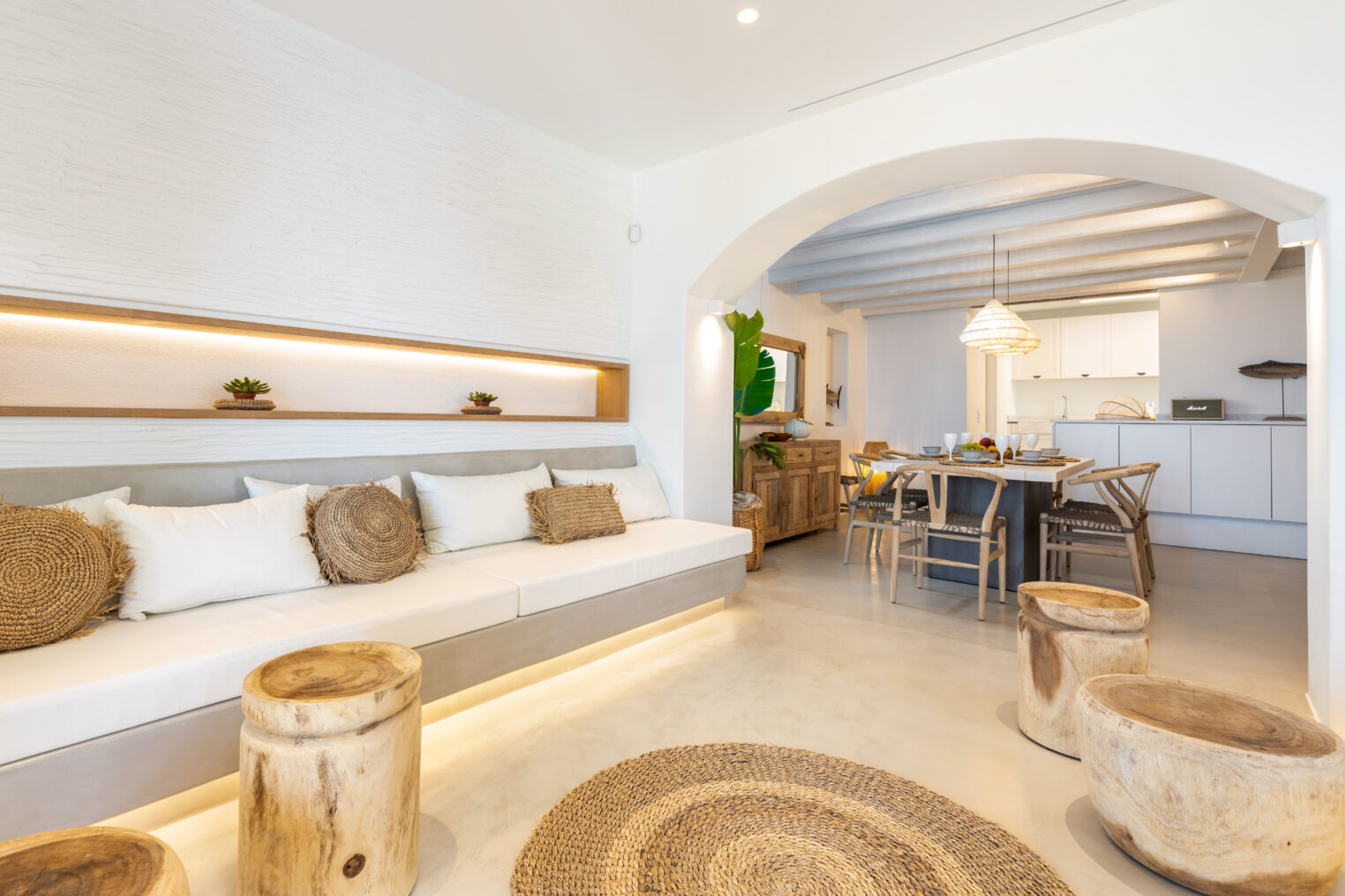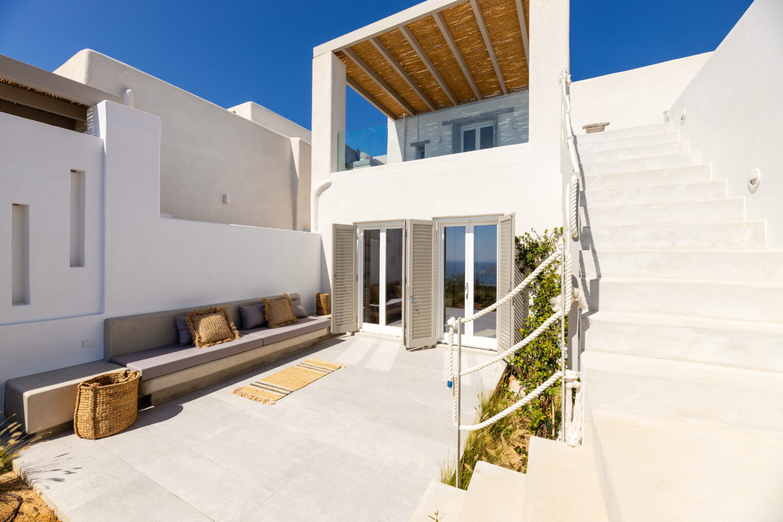 Villa Derfi 1 in Dryos, Paros, is a glamorous escape for 4 couples or groups of up to 10. The guest master bedroom offers a private garden for seclusion, while the pool’s bench bed is the ultimate spot to lounge, soak up the sun, and enjoy island life.