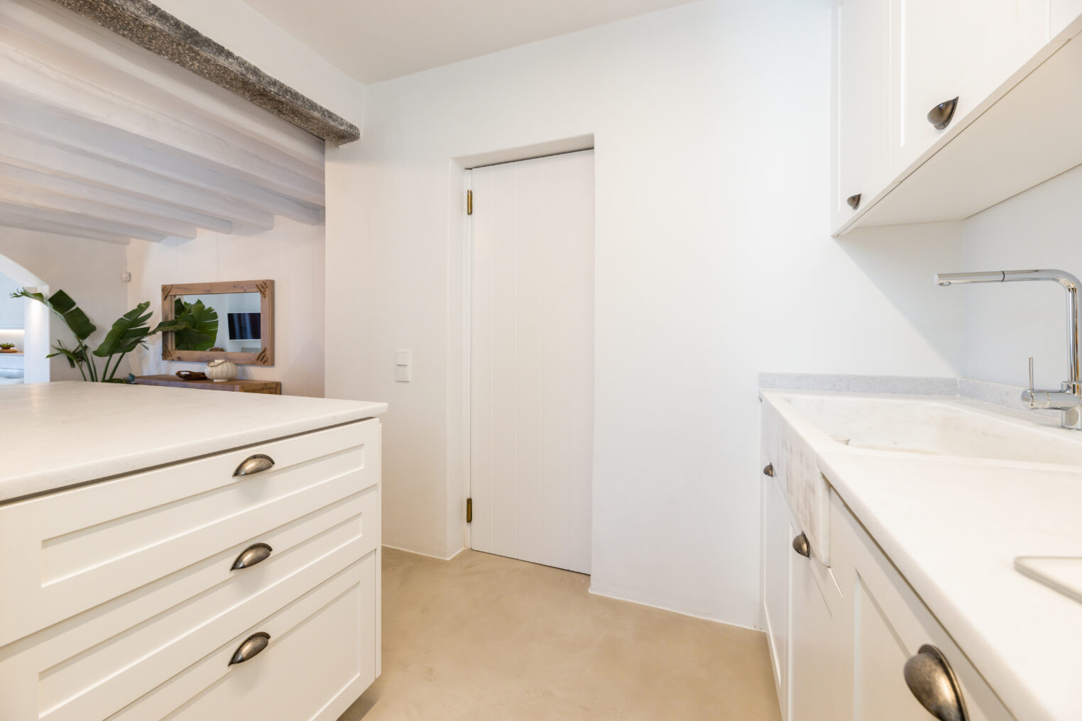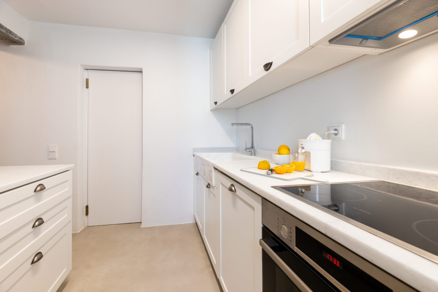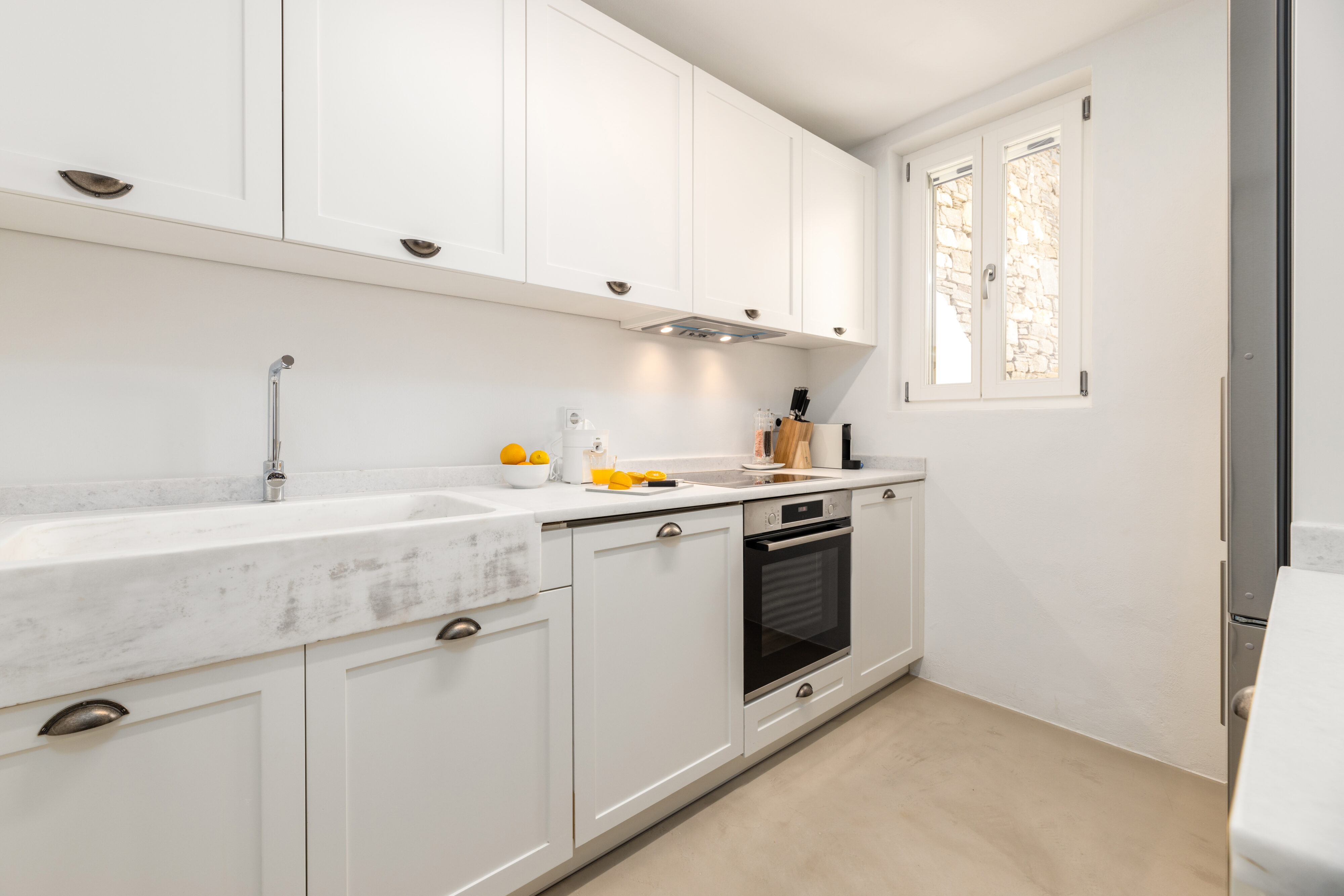 White marble open-plan kitchen