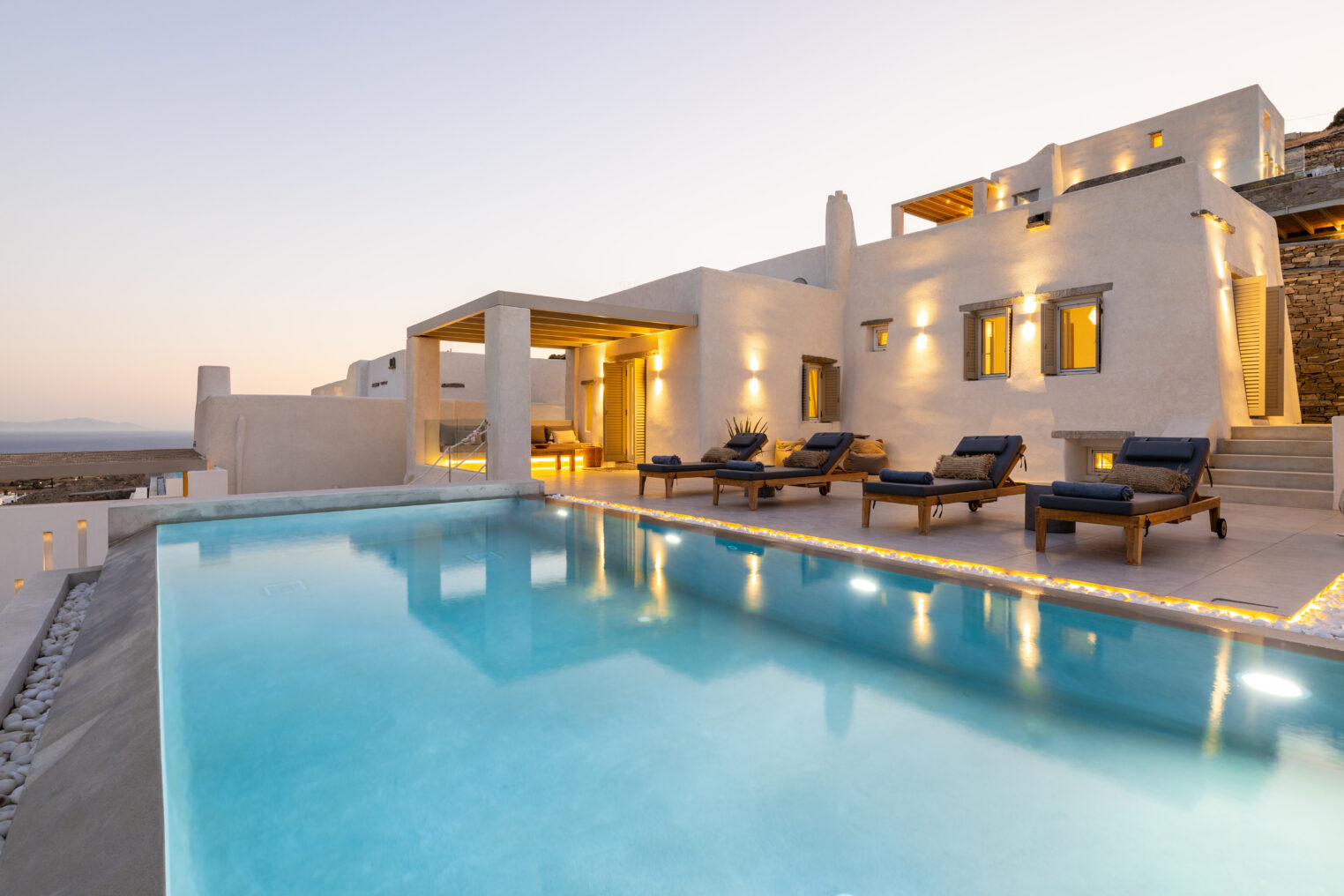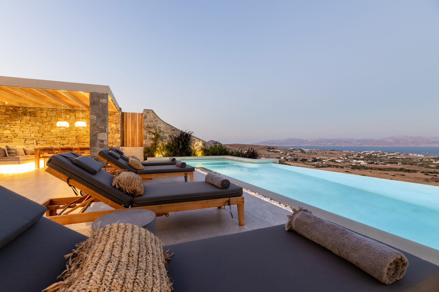 Villa Derfi 1 in Dryos, Paros, is a glamorous escape for 4 couples or groups of up to 10. The guest master bedroom offers a private garden for seclusion, while the pool’s bench bed is the ultimate spot to lounge, soak up the sun, and (...)