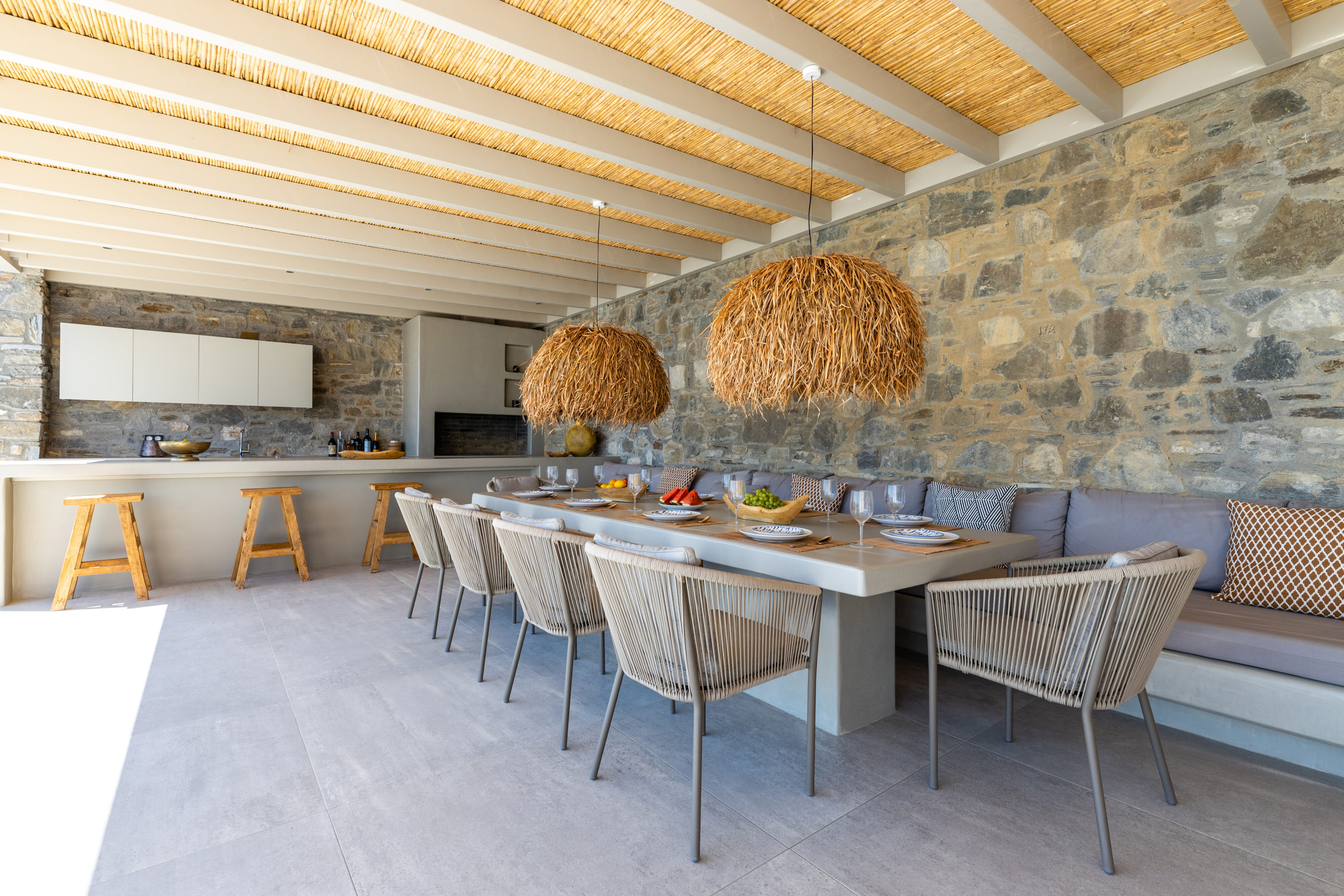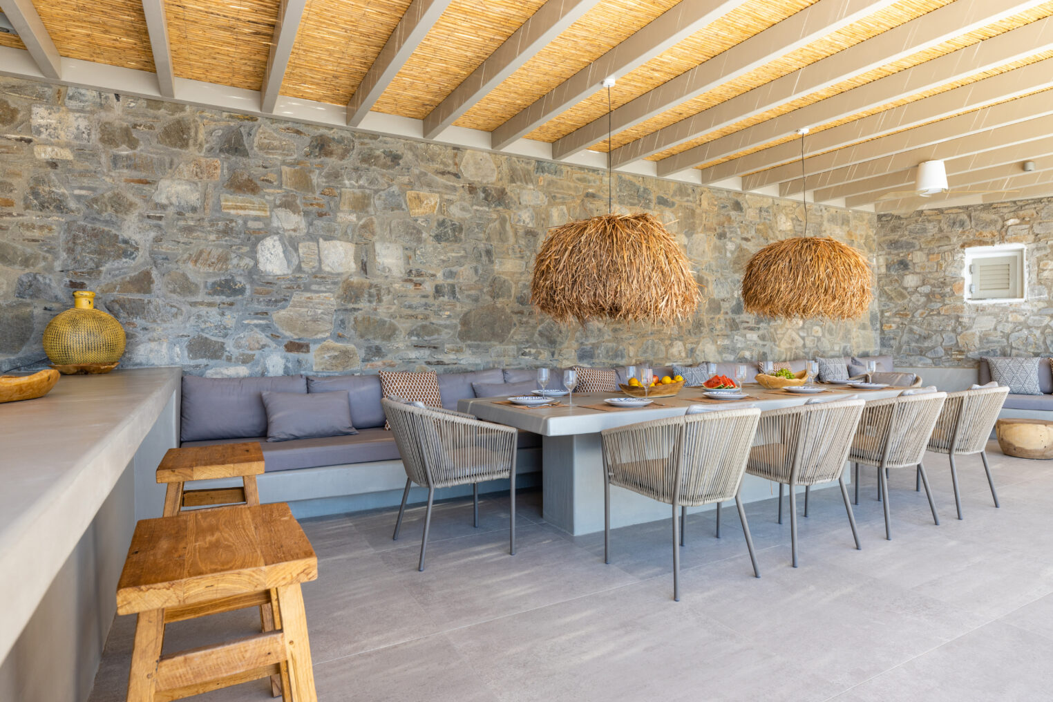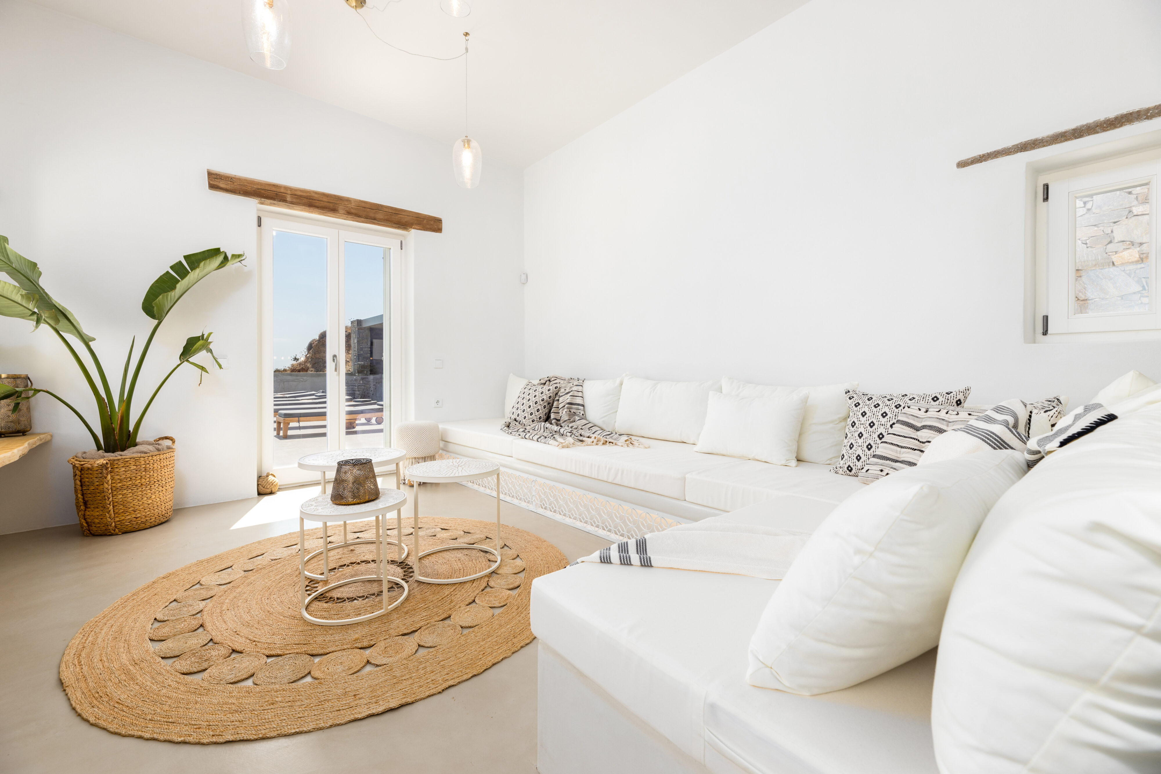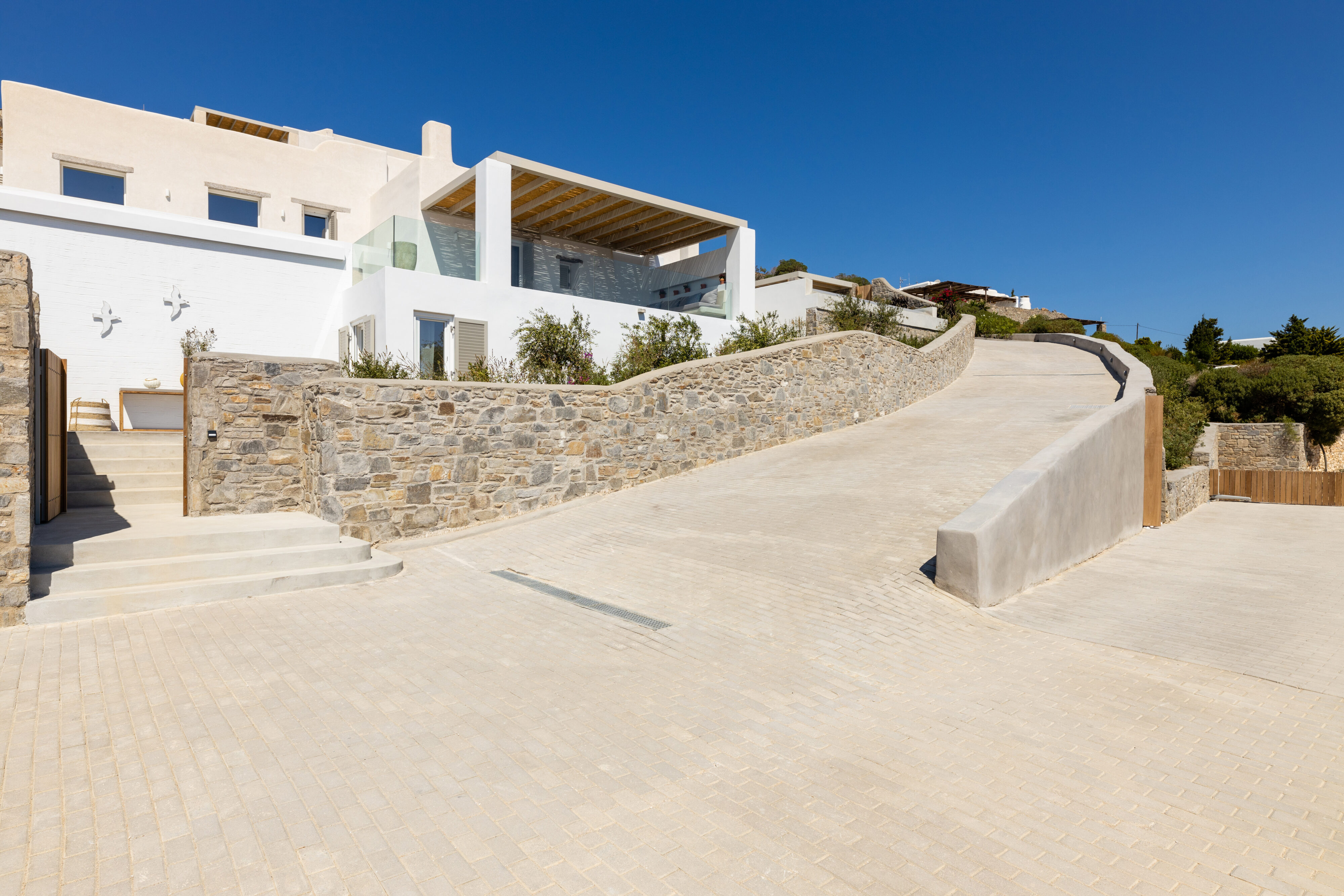 Villa Derfi 2 in Dryos, Paros, for 4 couples or up to 8 friends and family. Enjoy ultimate privacy with one bedroom set apart from the main villa – perfect for moments of calm amid the luxury.