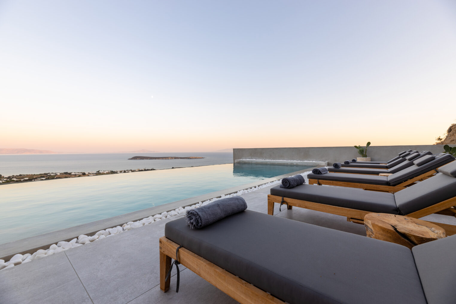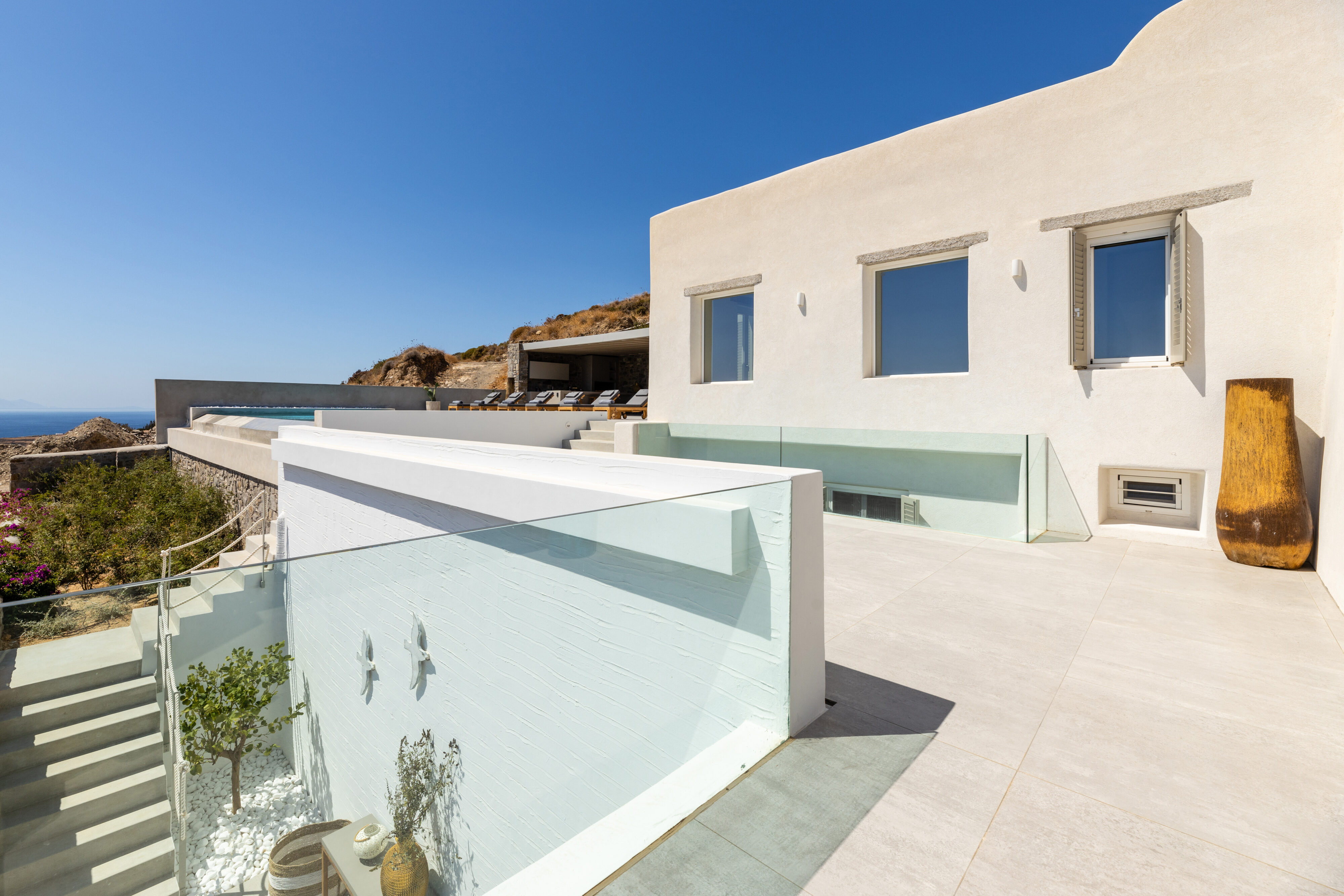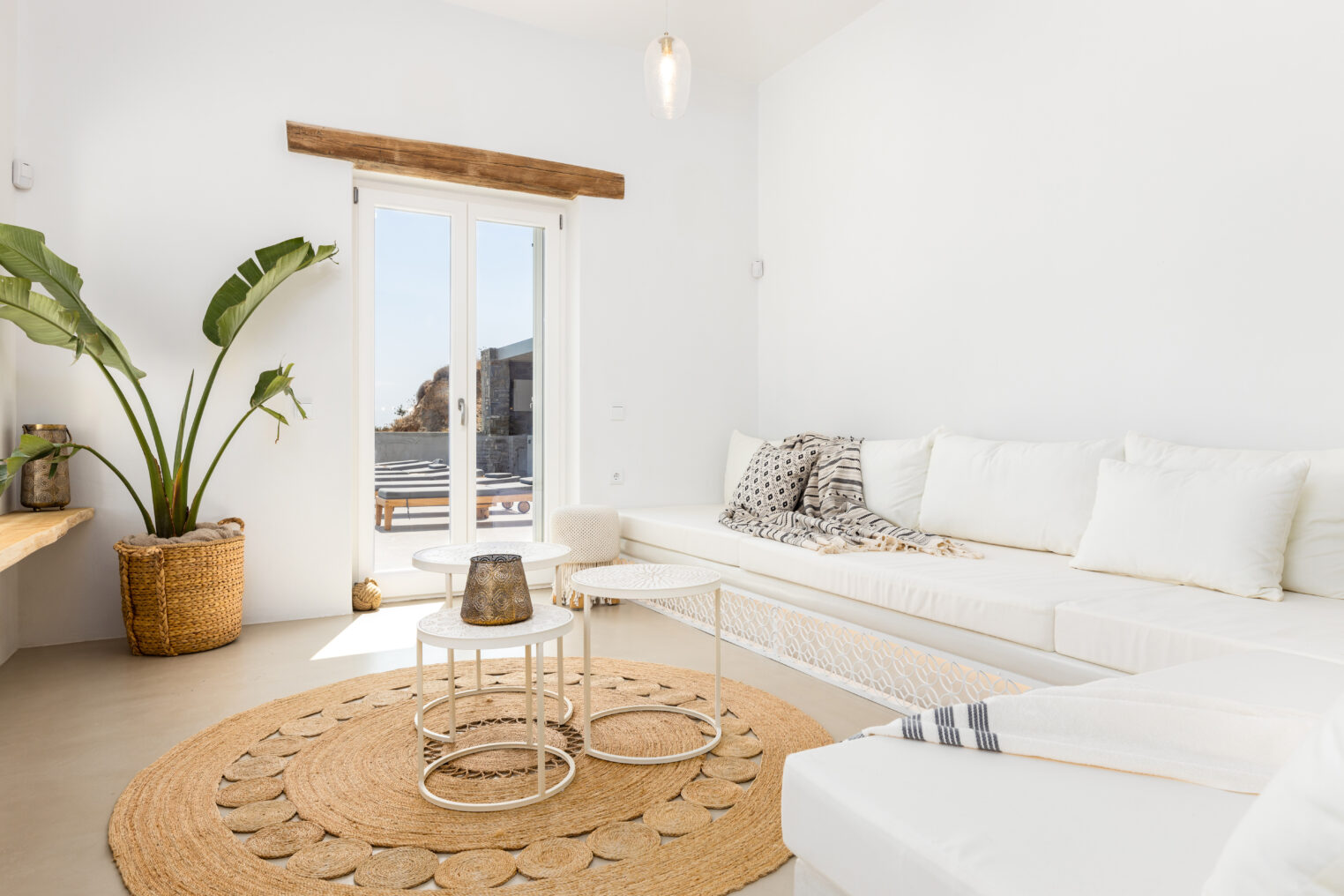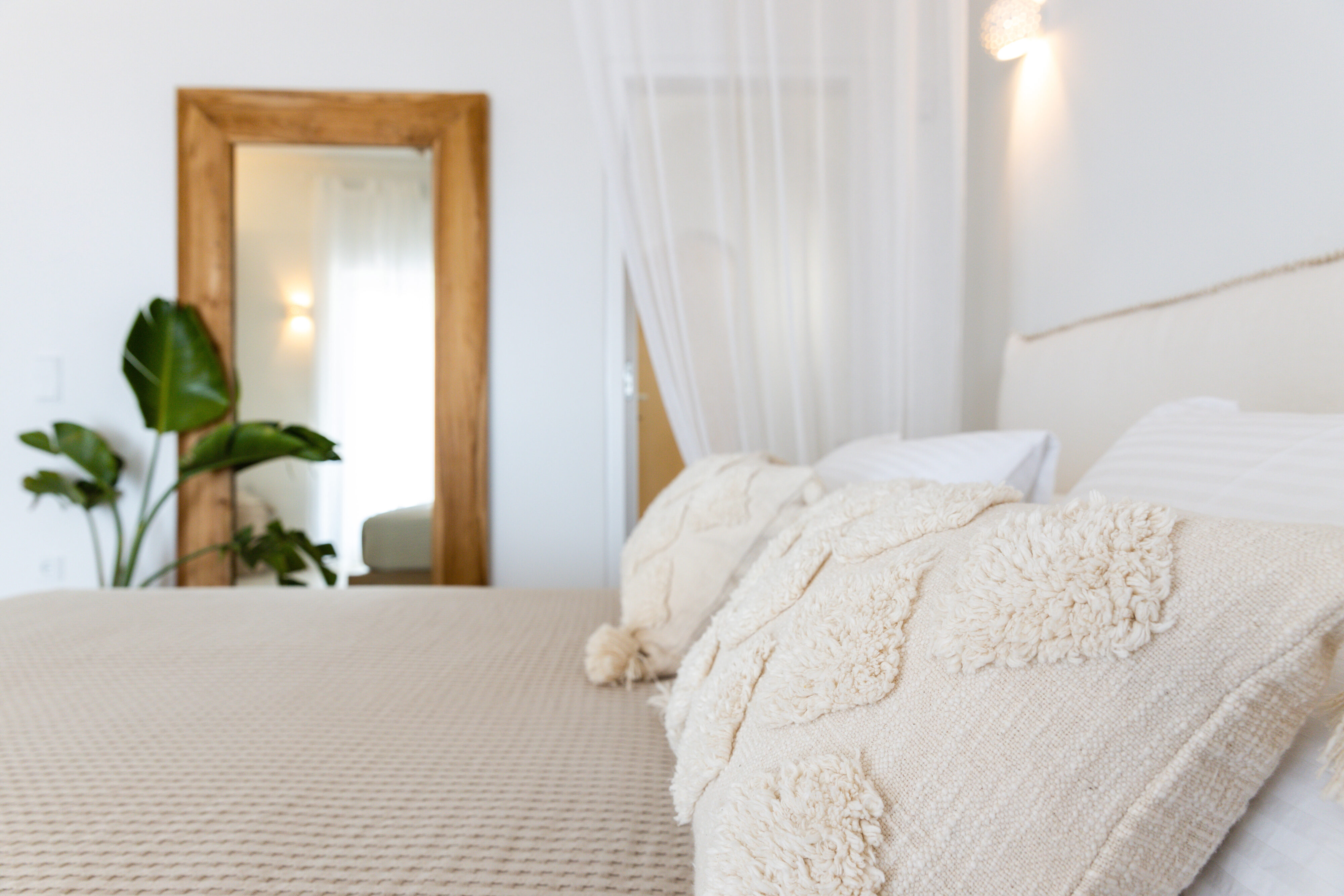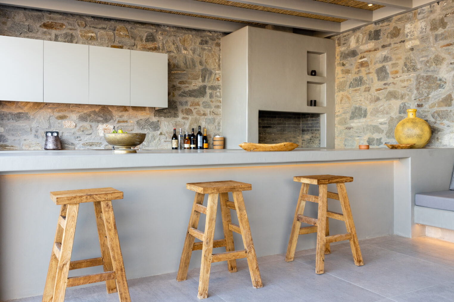 Villa Derfi 2 in Dryos, Paros, for 4 couples or up to 8 friends and family. Enjoy ultimate privacy with one bedroom set apart from the main villa – perfect for moments of calm amid the luxury.
