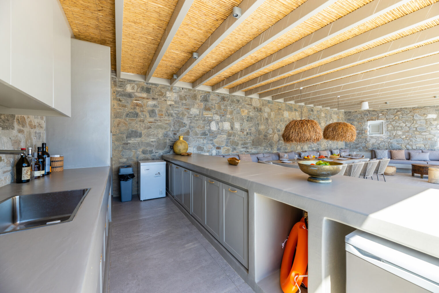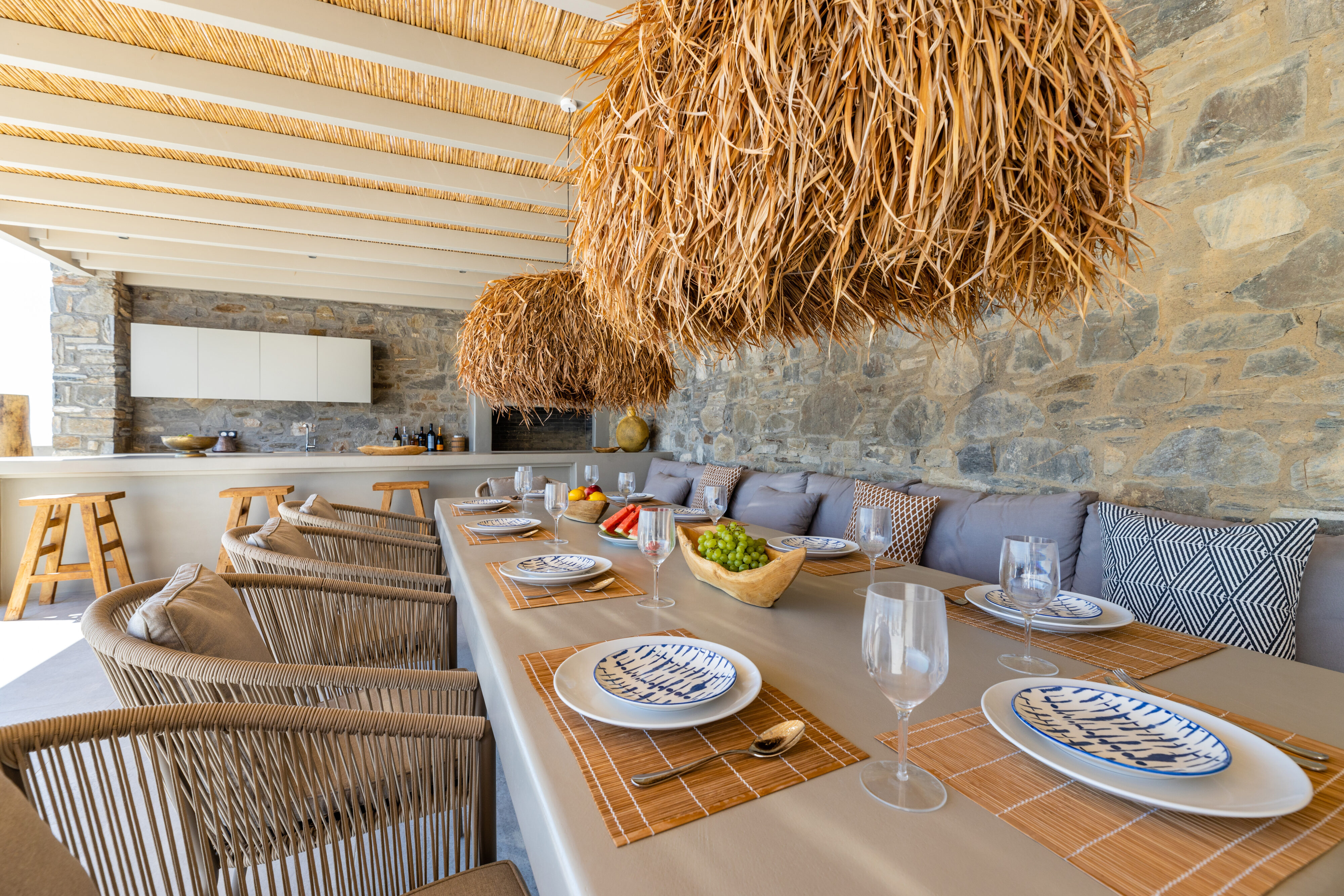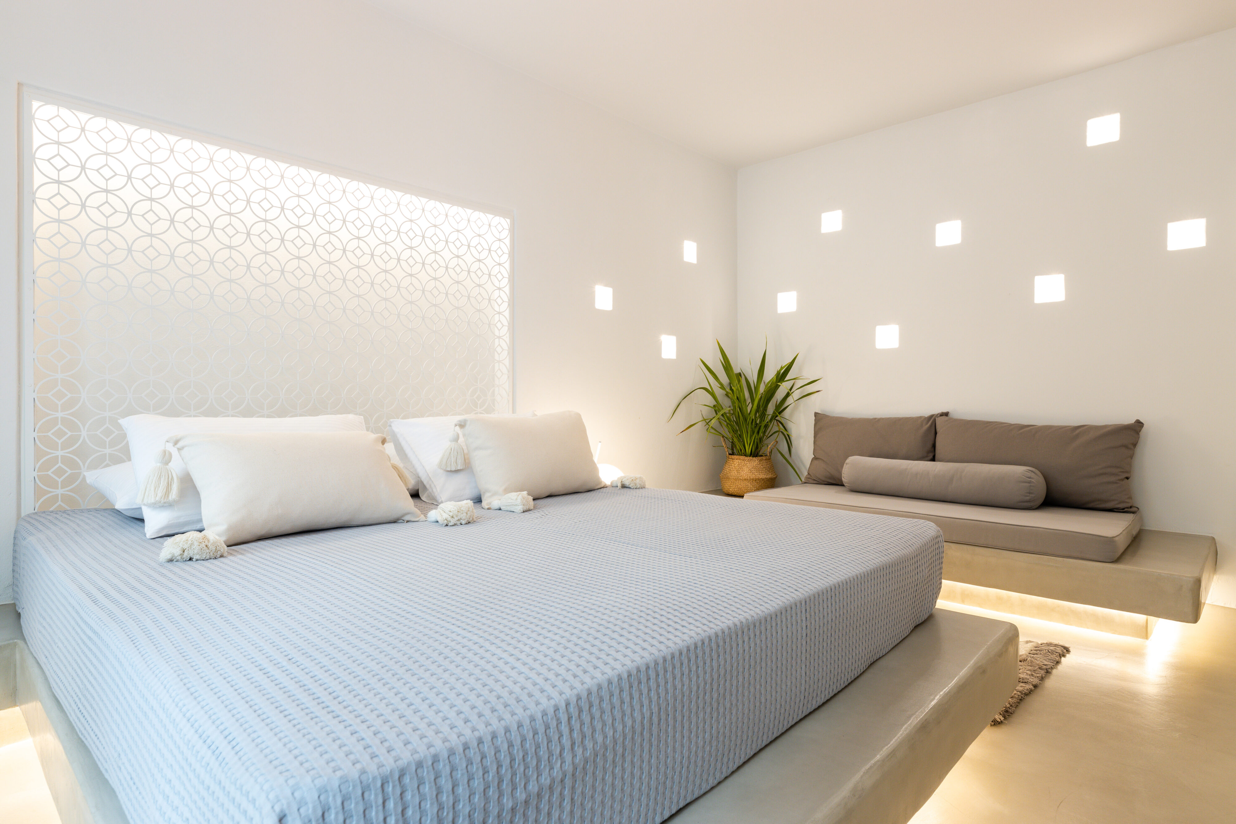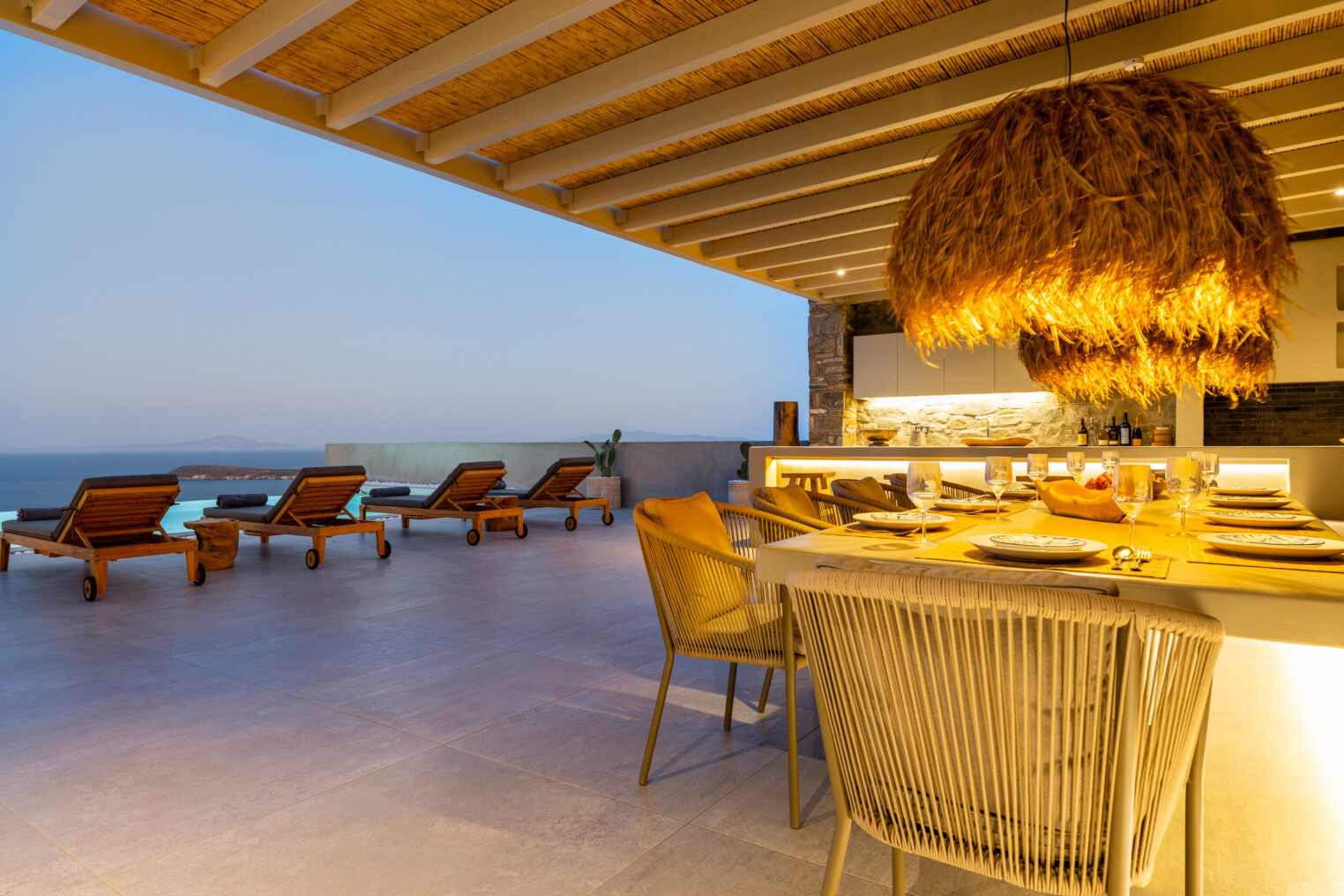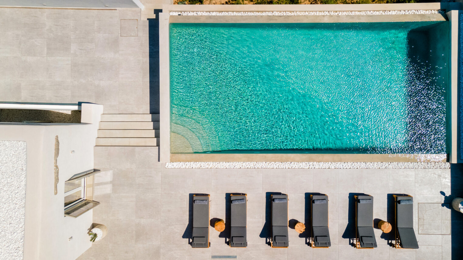 Villa Derfi 2 in Dryos, Paros, for 4 couples or up to 8 friends and family. Enjoy ultimate privacy with one bedroom set apart from the main villa – perfect for moments of calm amid the luxury.
