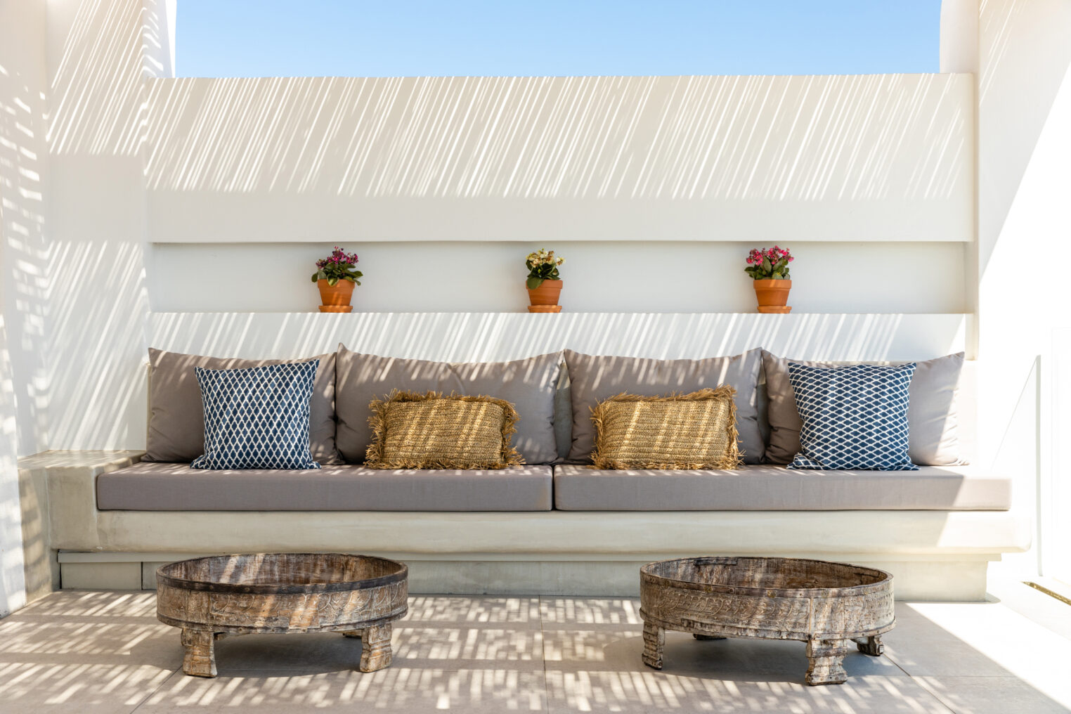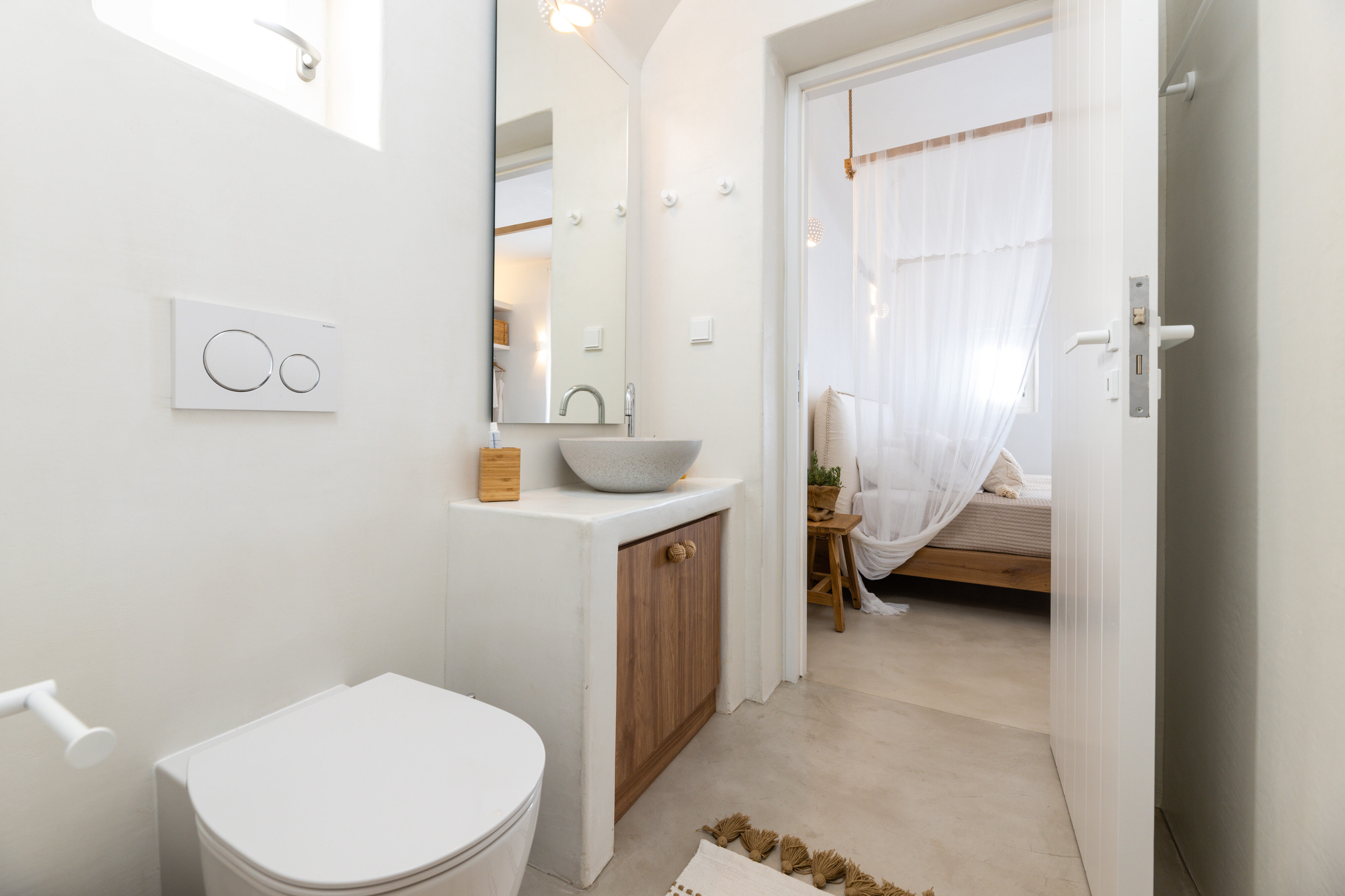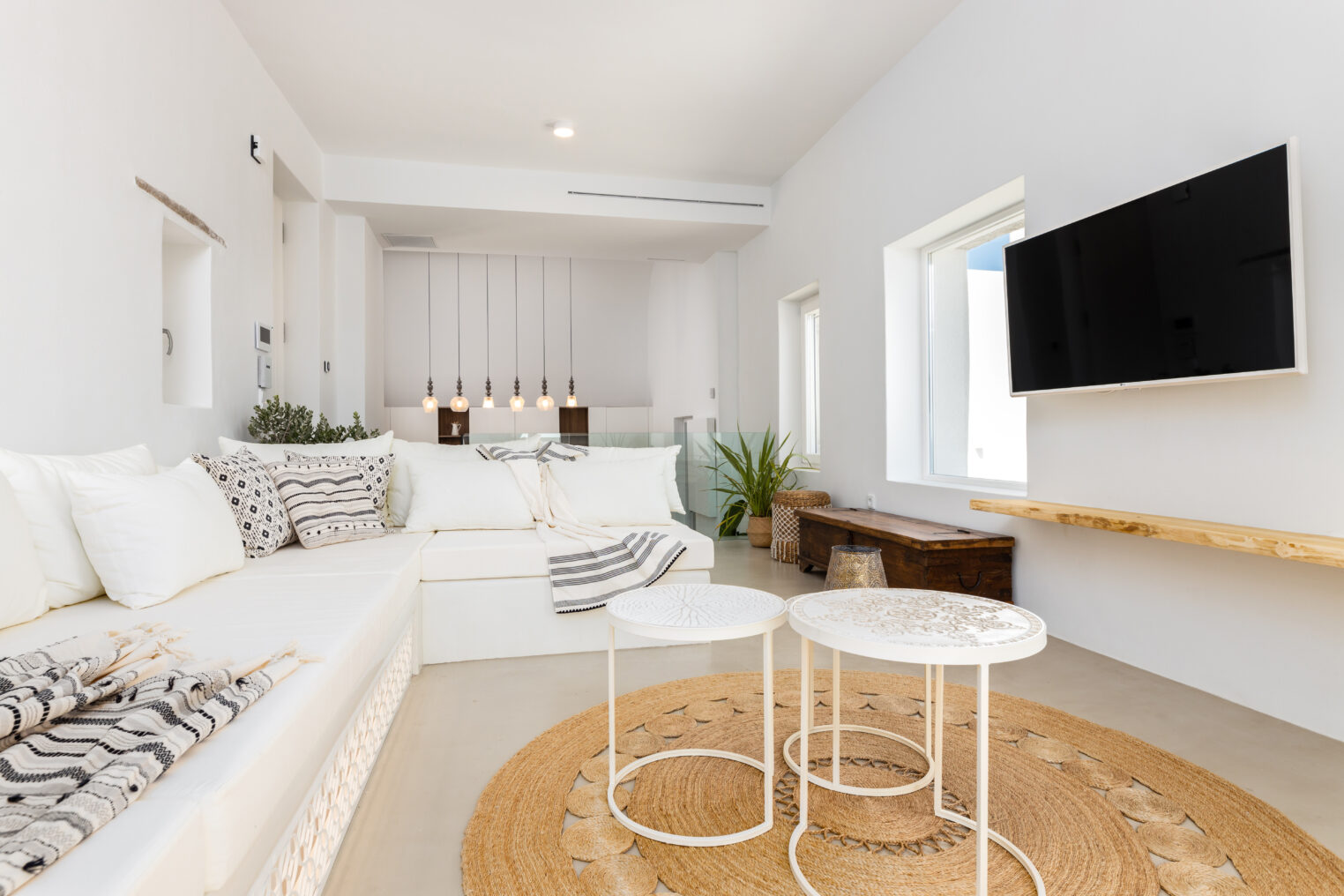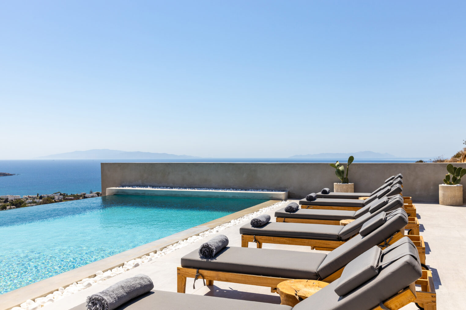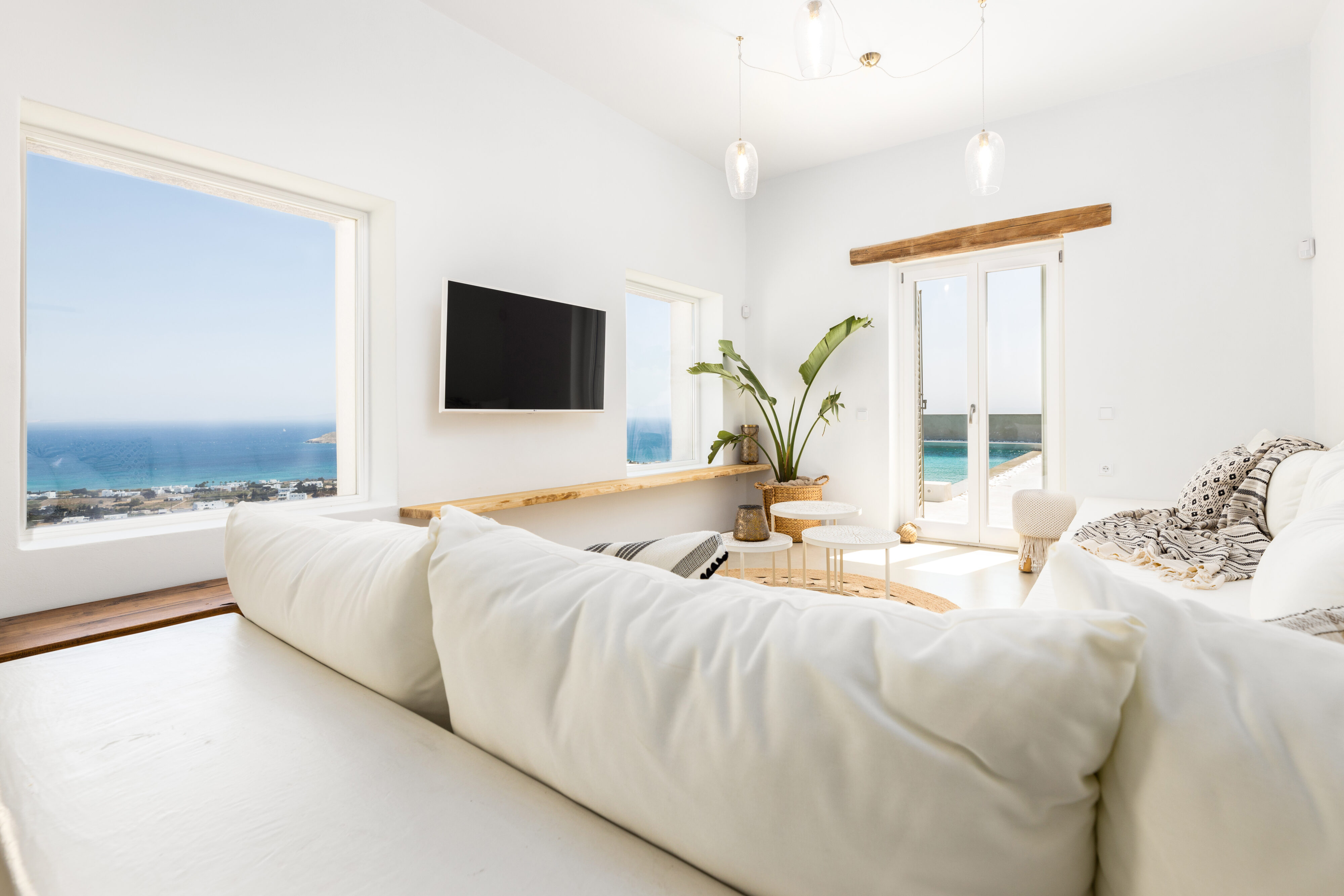 Villa Derfi 2 in Dryos, Paros, for 4 couples or up to 8 friends and family. Enjoy ultimate privacy with one bedroom set apart from the main villa – perfect for moments of calm amid the luxury.