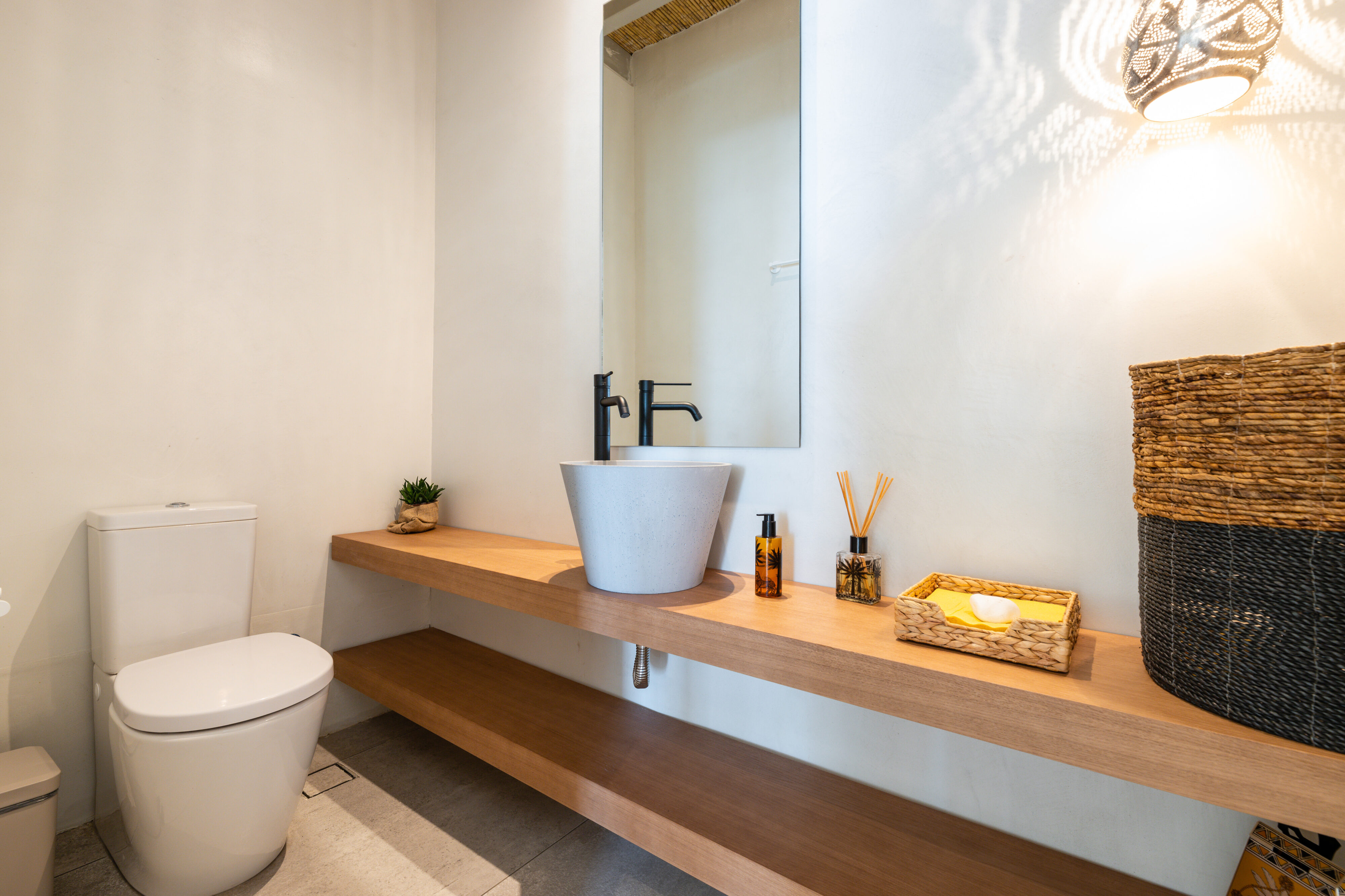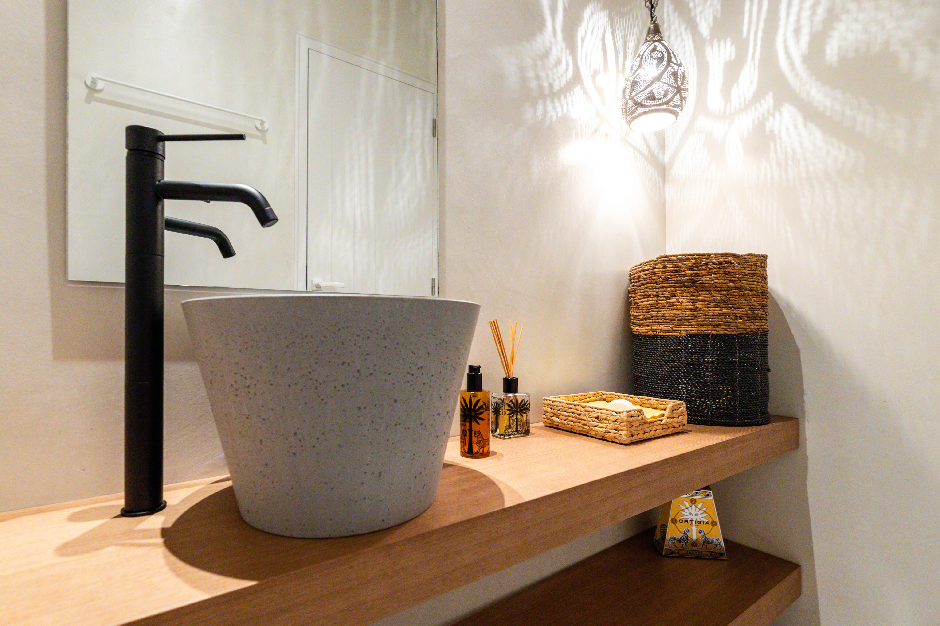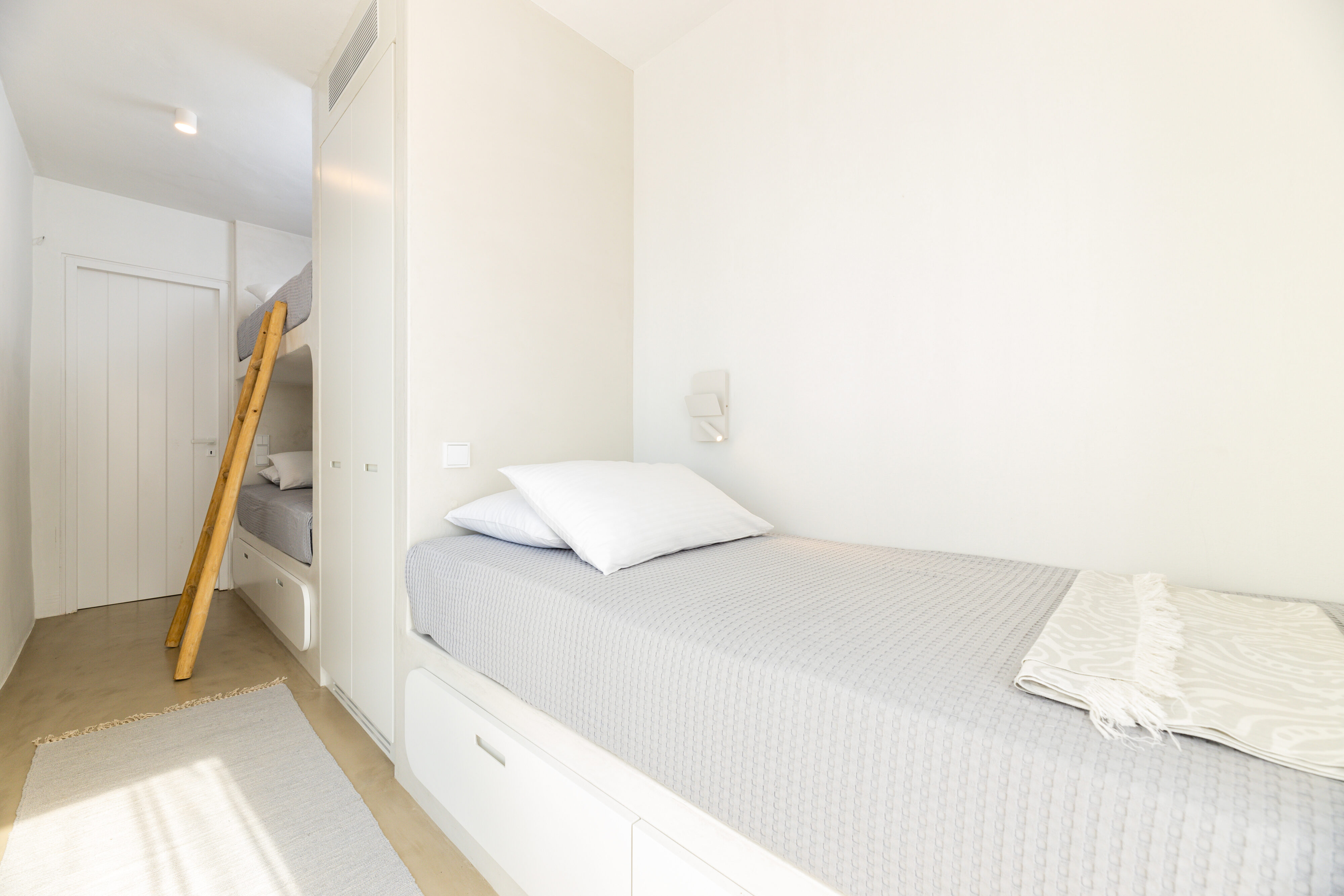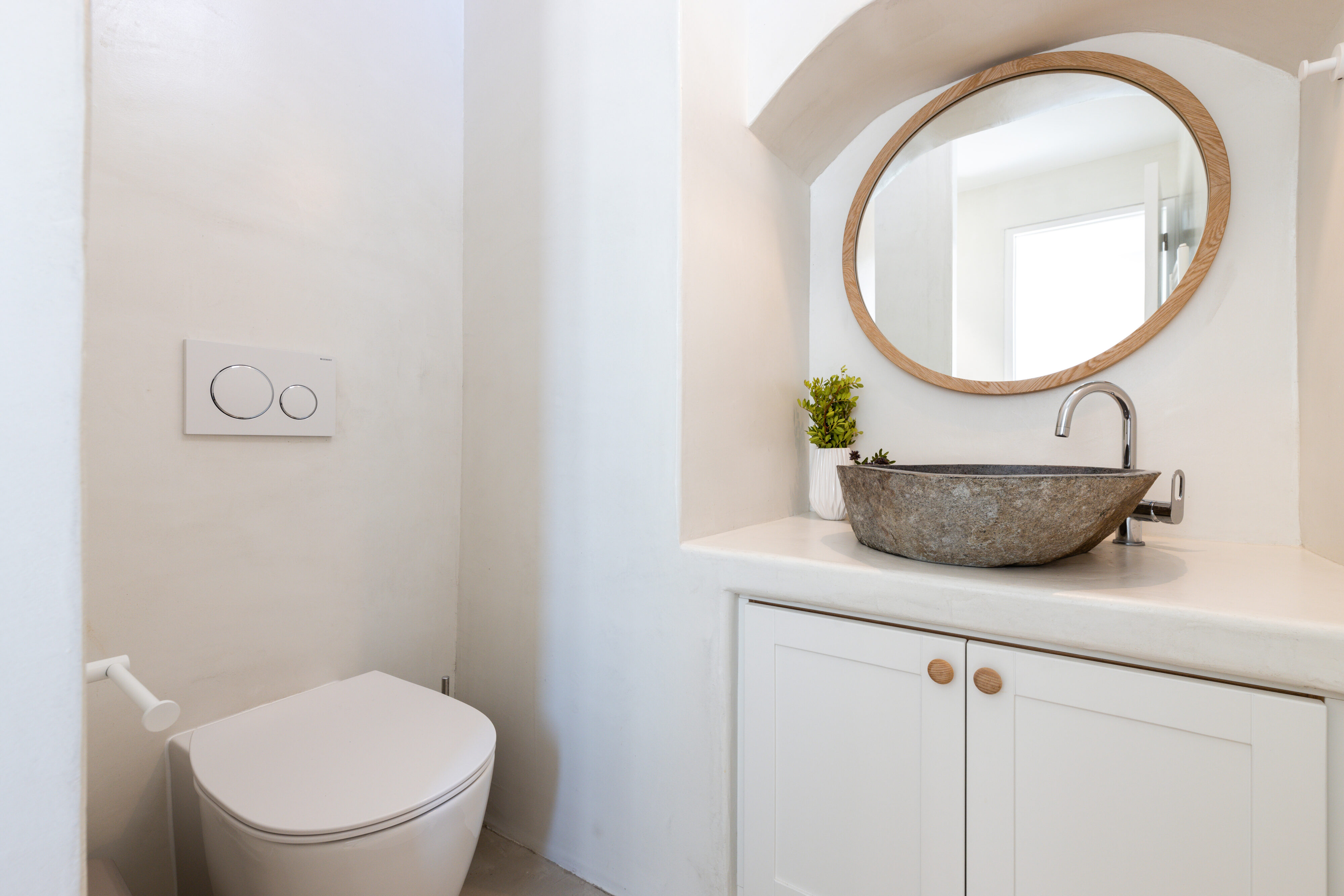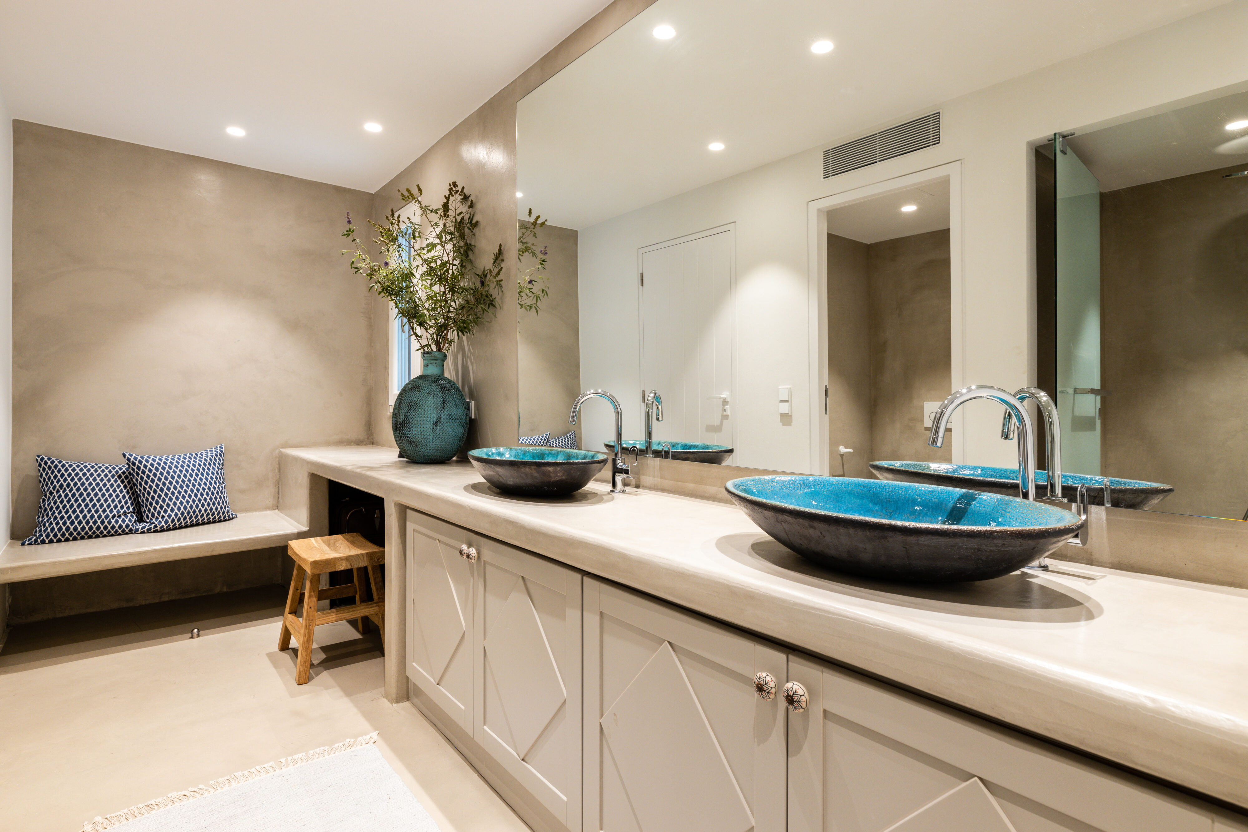 Villa Derfi 2 in Dryos, Paros, for 4 couples or up to 8 friends and family. Enjoy ultimate privacy with one bedroom set apart from the main villa – perfect for moments of calm amid the luxury.