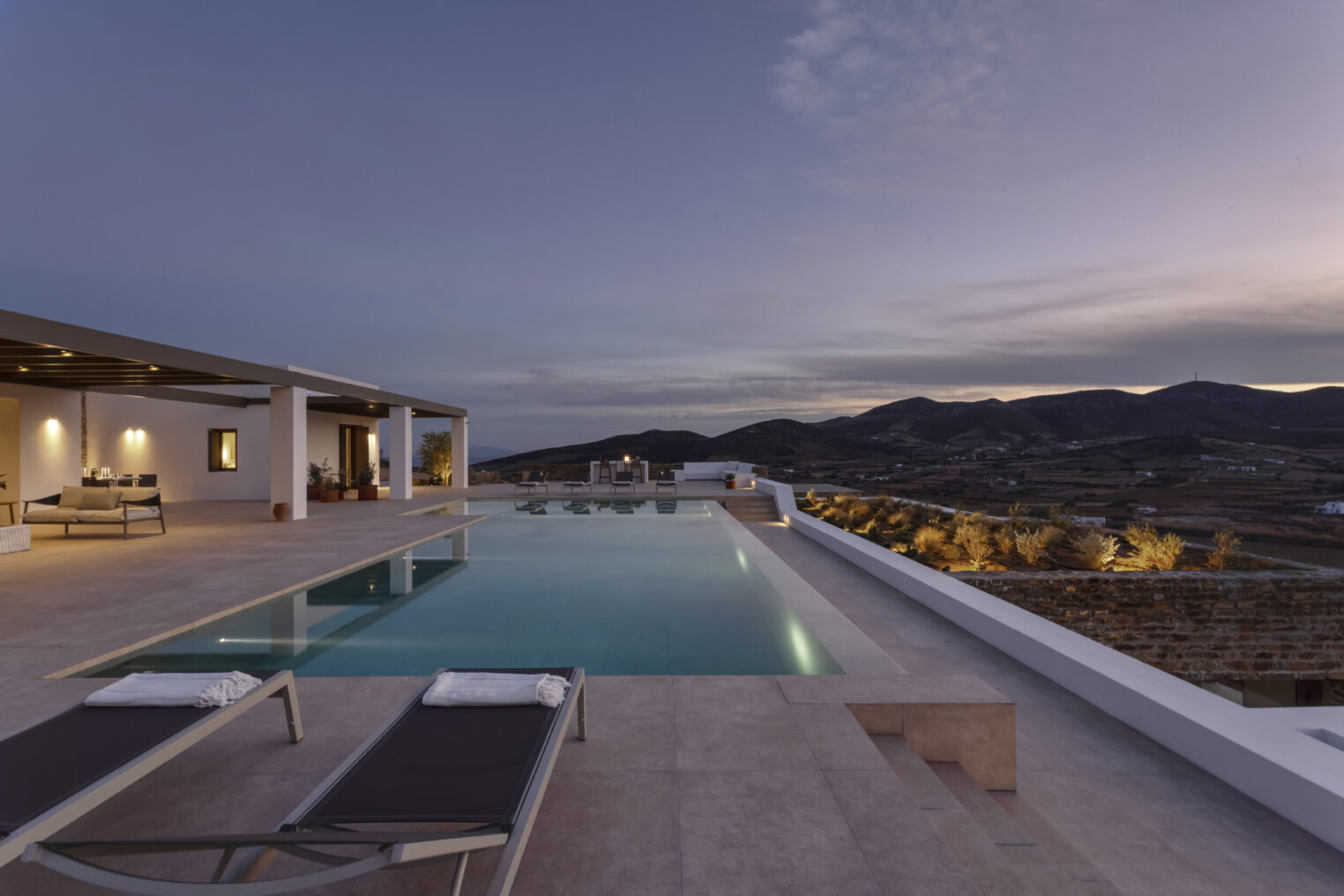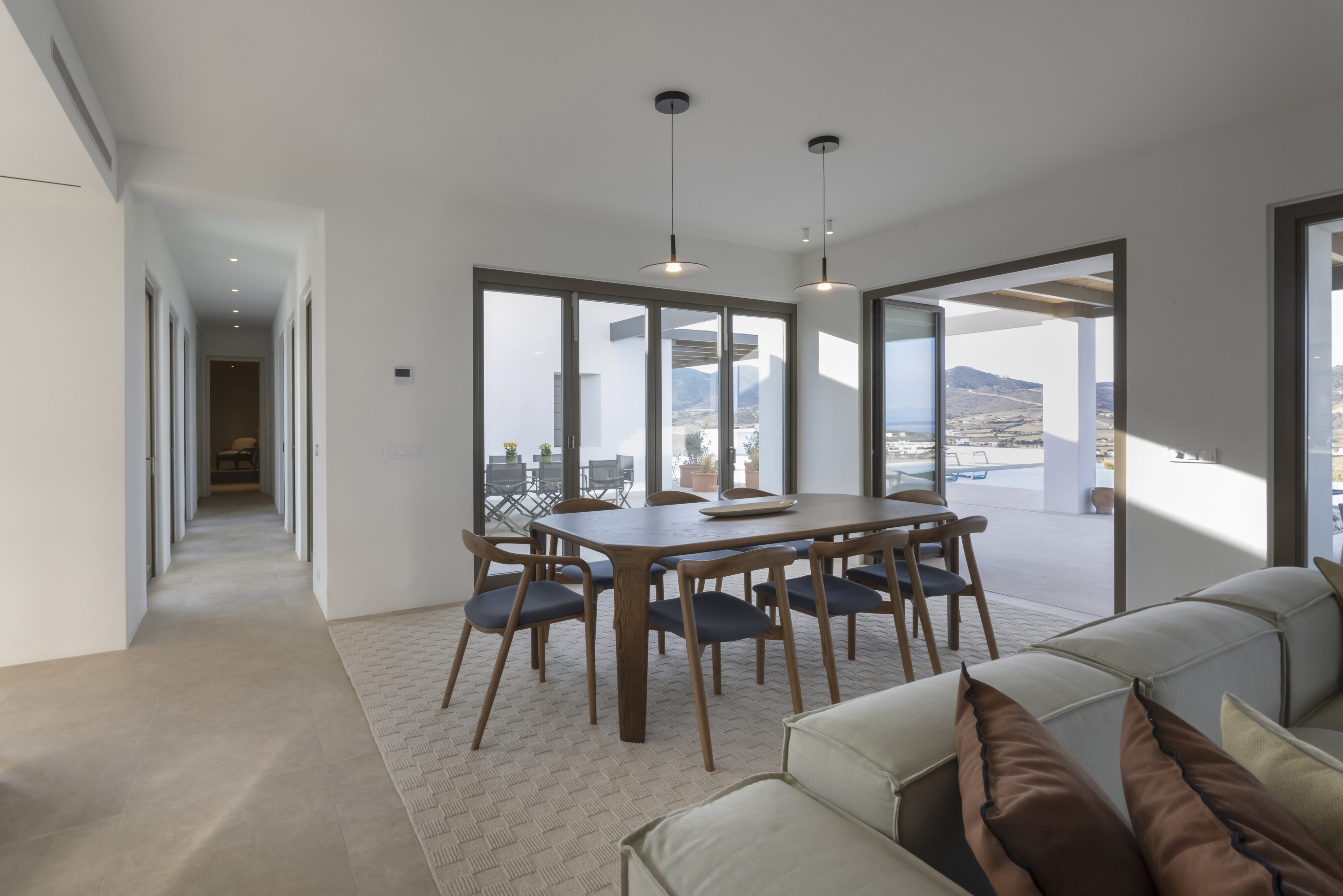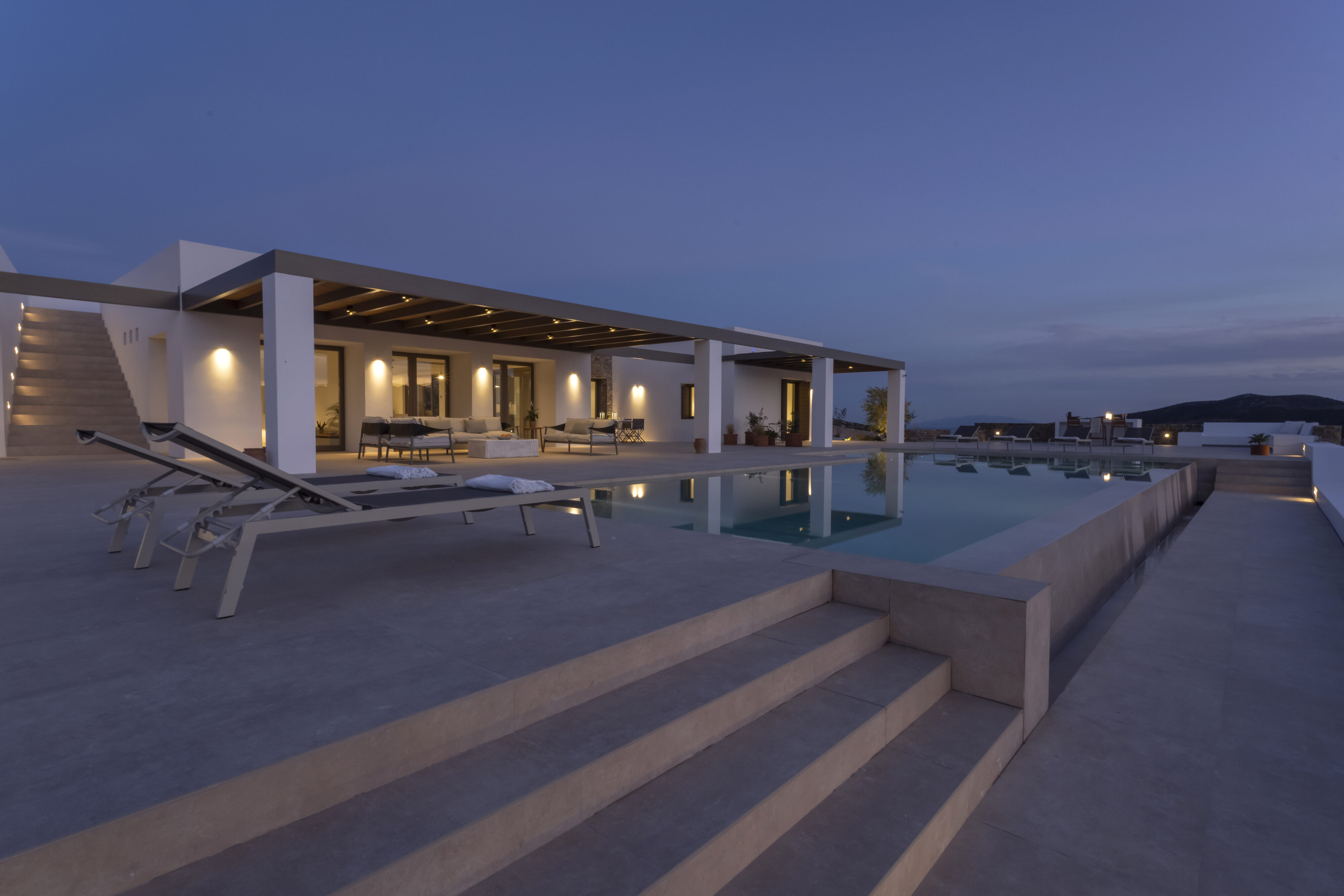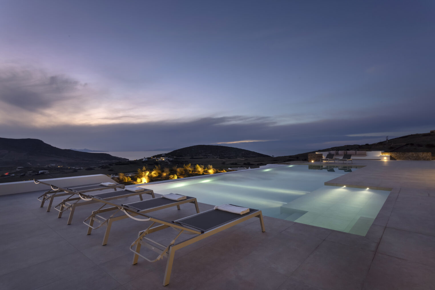Introducing our newest addition in Livadia, Antiparos—a stunning villa completed in 2024. Designed with a focus on luxurious outdoor summer living, this property invites you to unwind and create unforgettable memories. The expansive terrace boasts a striking L-shaped pool, perfect for lounging under the sun or stargazing by night. An outdoor wall projector sets the scene for cozy movie nights under the open sky, while thoughtfully arranged, comfortable furniture ensures relaxation in style. Inside, the villa features six bedrooms, each showcasing a harmonious blend of ambience and playful simplicity, offering a serene retreat for every guest. But the real magic unfolds during golden hour—when the villa is bathed in the breathtaking hues of Antiparos sunsets, painting the sky in vibrant colors that are nothing short of mesmerizing.