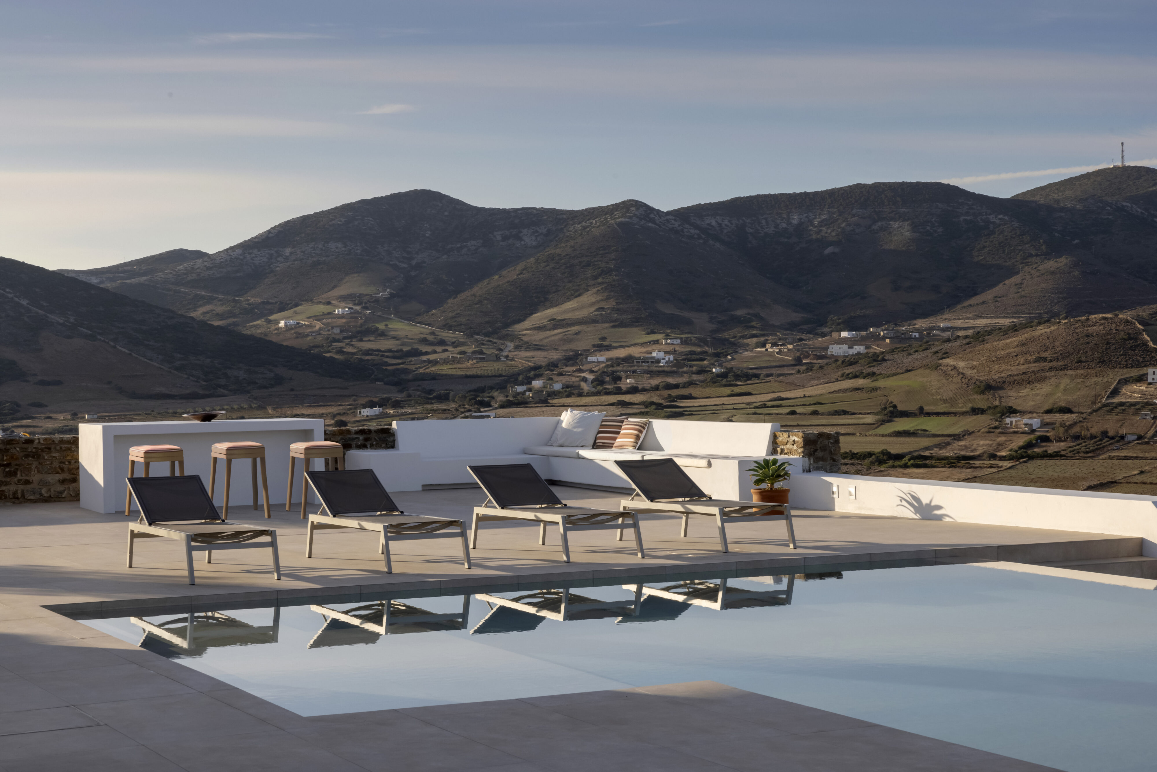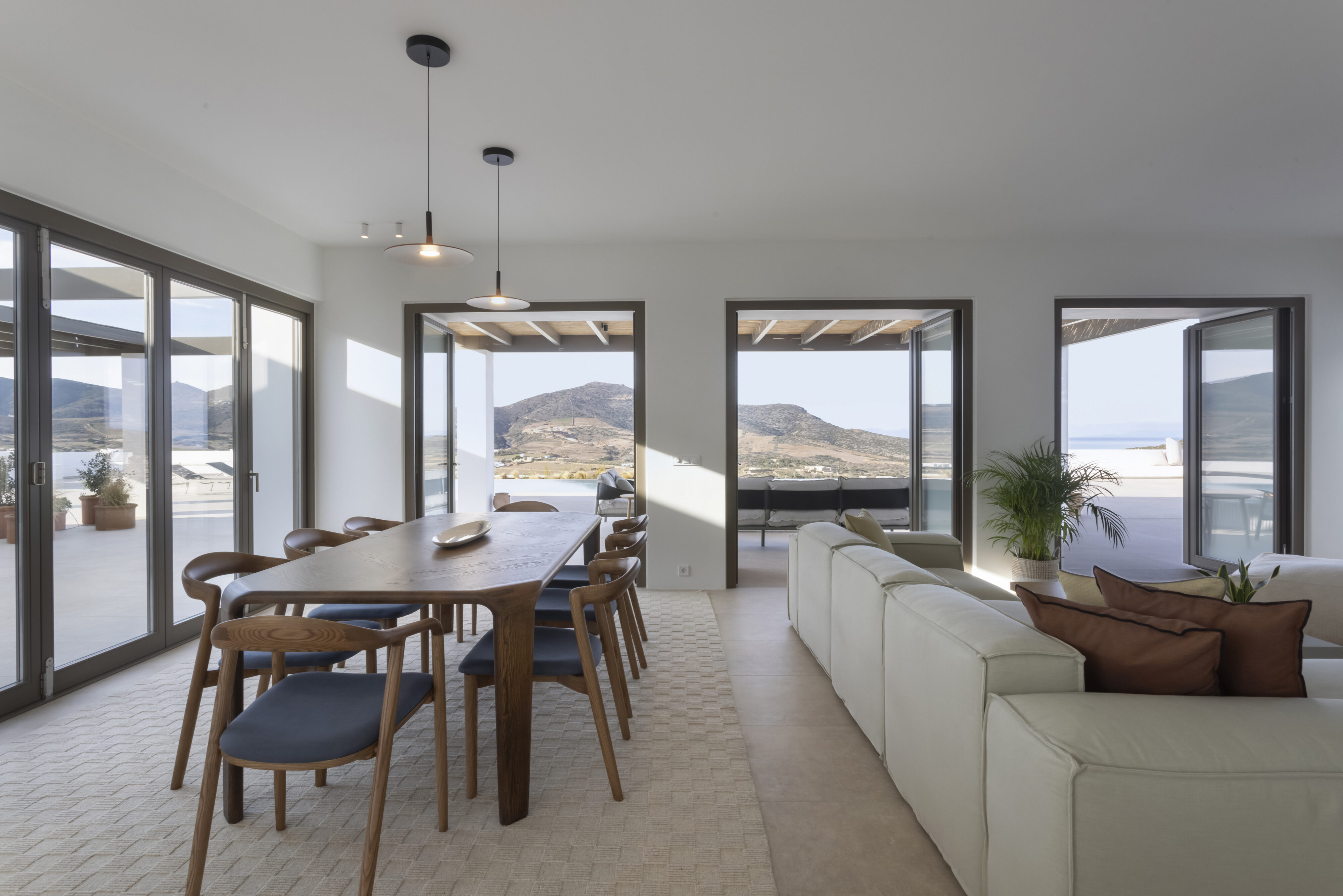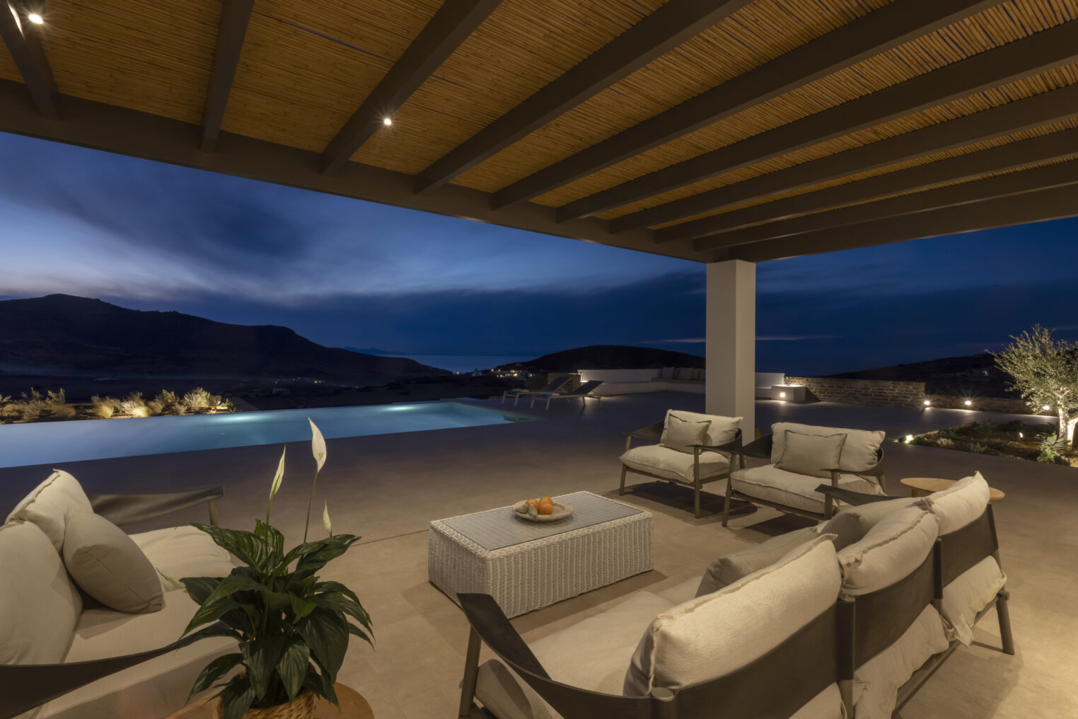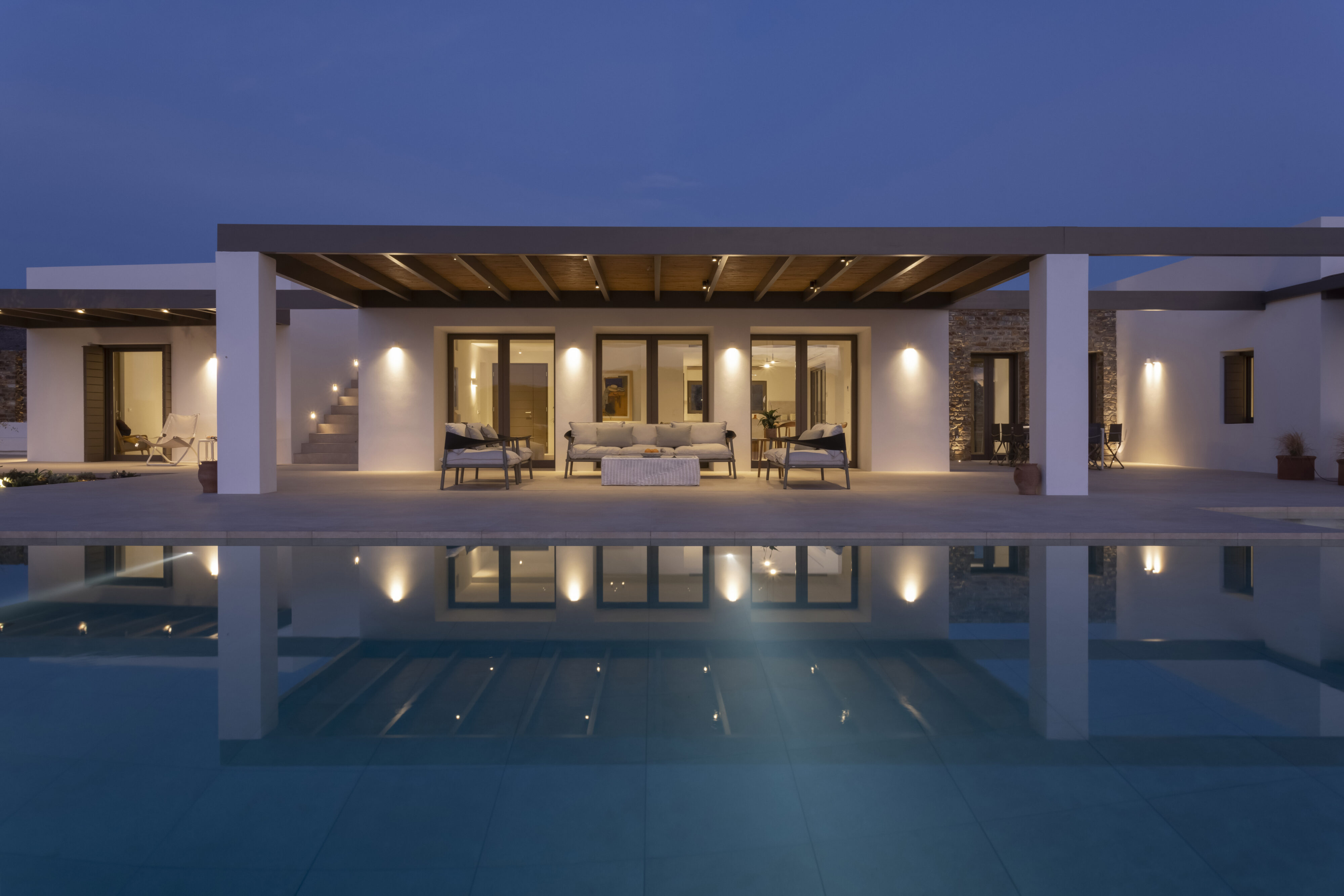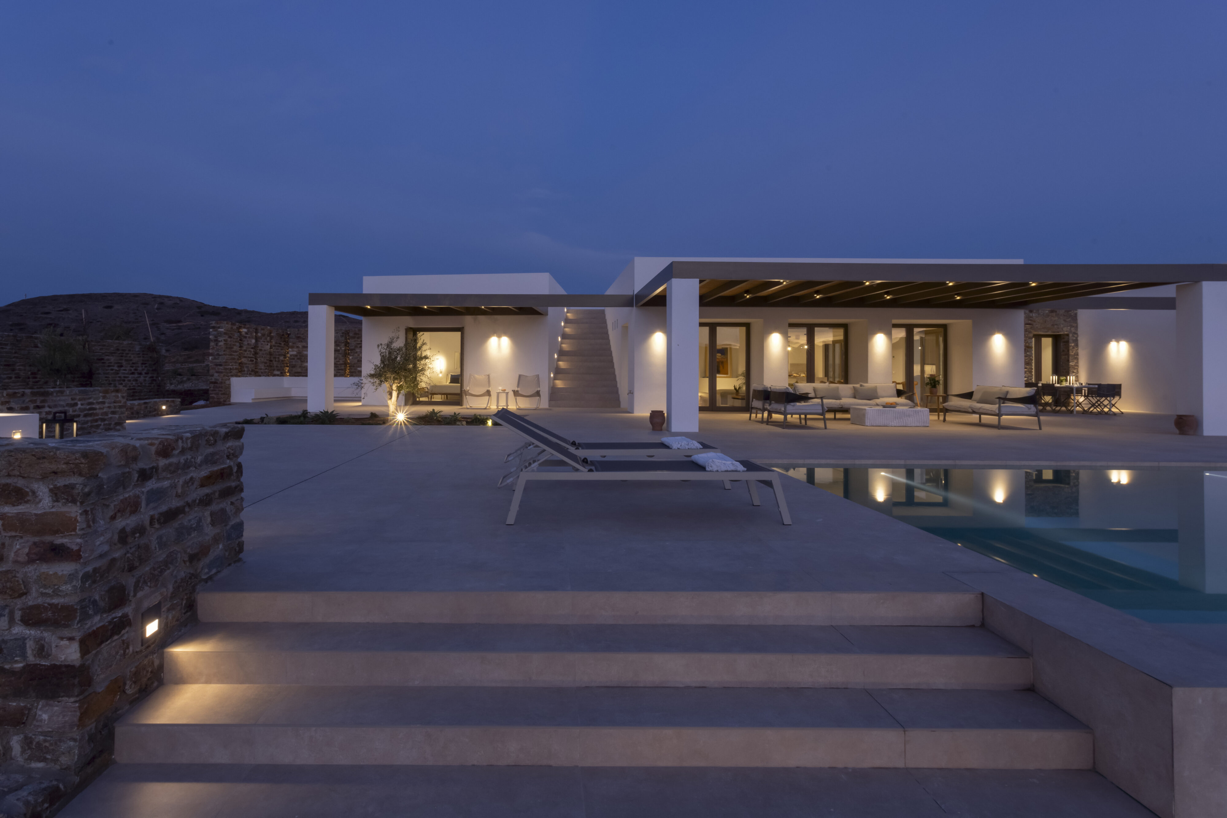 Introducing our newest addition in Livadia, Antiparos—a stunning villa completed in 2024. Designed with a focus on luxurious outdoor summer living, this property invites you to unwind and create unforgettable memories. The expansive terrace boasts a striking L-shaped pool, perfect for lounging under the sun or stargazing by night. An outdoor wall projector sets the scene for cozy movie nights under the open sky, while thoughtfully arranged, comfortable furniture ensures relaxation in style. Inside, the villa features six bedrooms, each showcasing a harmonious blend of ambience and playful simplicity, offering a serene retreat for every guest. But the real magic unfolds during golden hour—when the villa is bathed in the breathtaking hues of Antiparos sunsets, painting the sky in vibrant colors that are nothing short of mesmerizing.