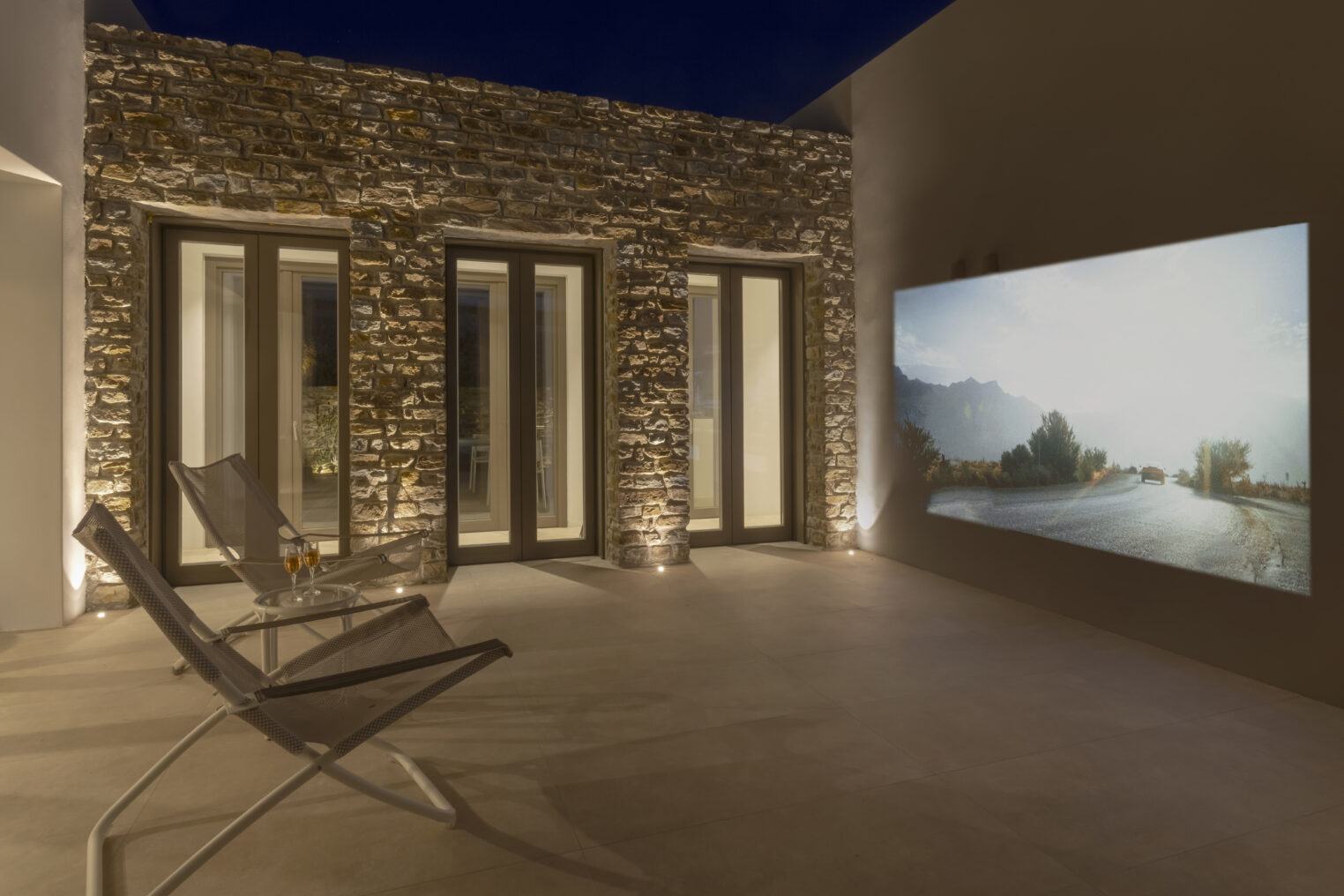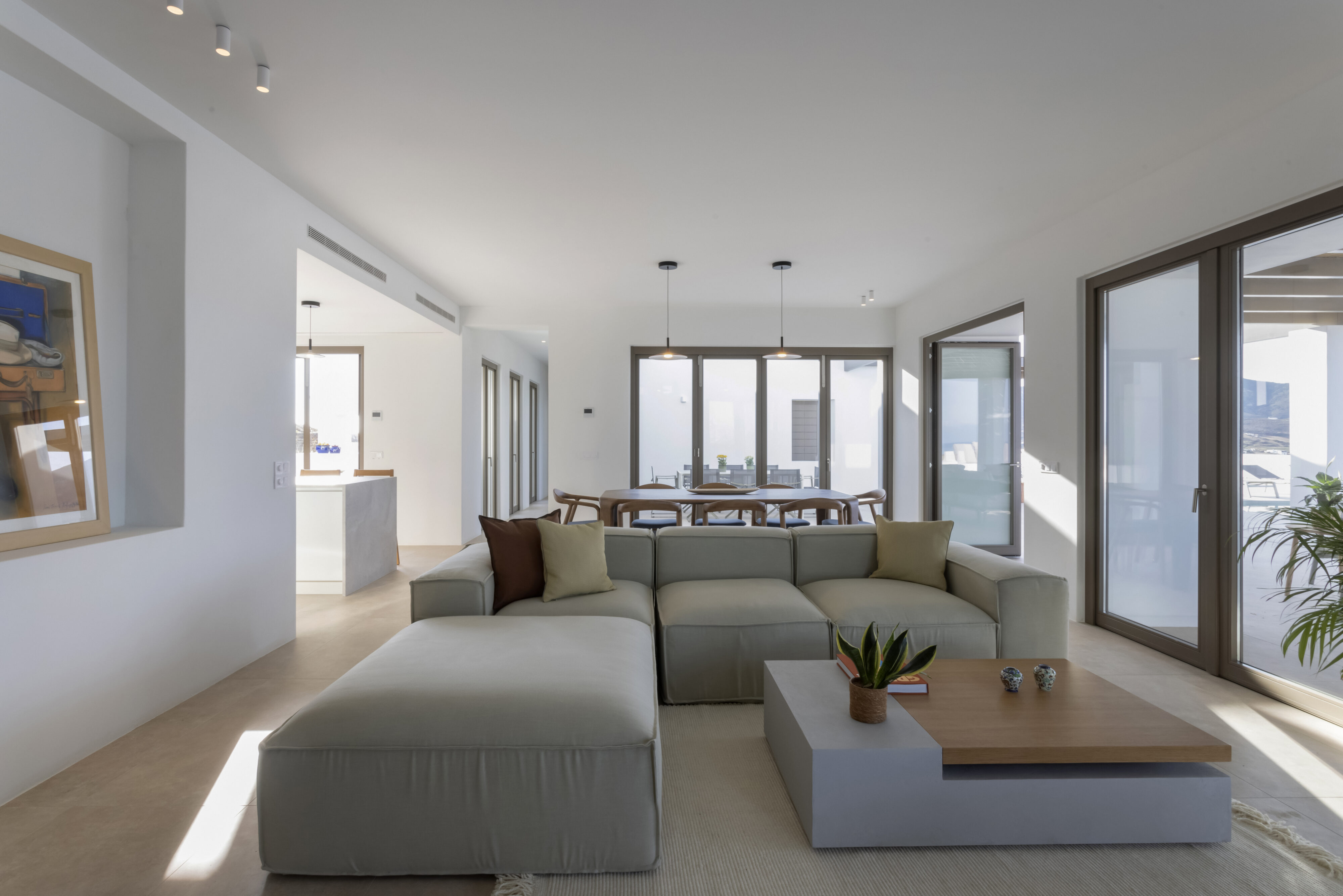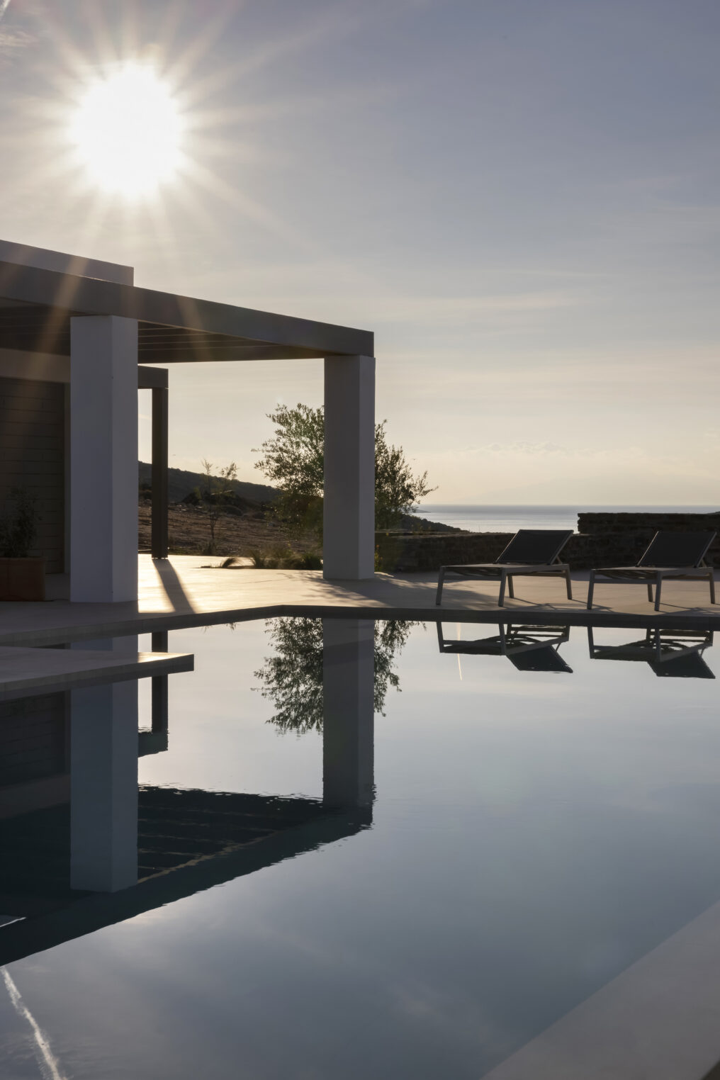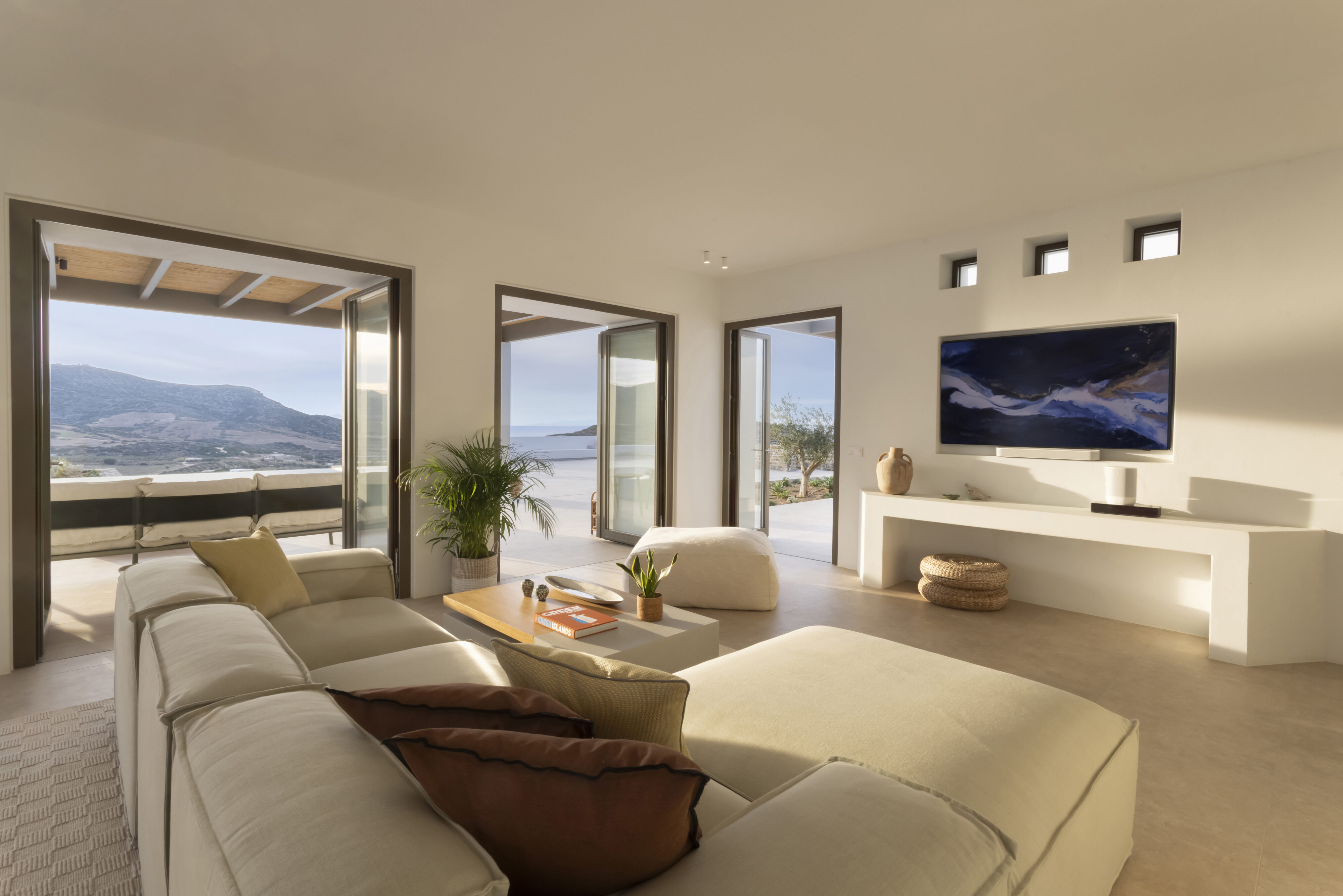 Introducing our newest addition in Livadia, Antiparos—a stunning villa completed in 2024. Designed with a focus on luxurious outdoor summer living, this property invites you to unwind and create unforgettable memories. The expansive terrace boasts a striking L-shaped pool, perfect for lounging under the sun or stargazing by night. An outdoor wall projector sets the scene for cozy movie nights under the open sky, while thoughtfully arranged, comfortable furniture ensures relaxation in style. Inside, the villa features six bedrooms, each showcasing a harmonious blend of ambience and playful simplicity, offering a serene retreat for every guest. But the real magic unfolds during golden hour—when the villa is bathed in the breathtaking hues of Antiparos sunsets, painting the sky in vibrant colors that are nothing short of mesmerizing.