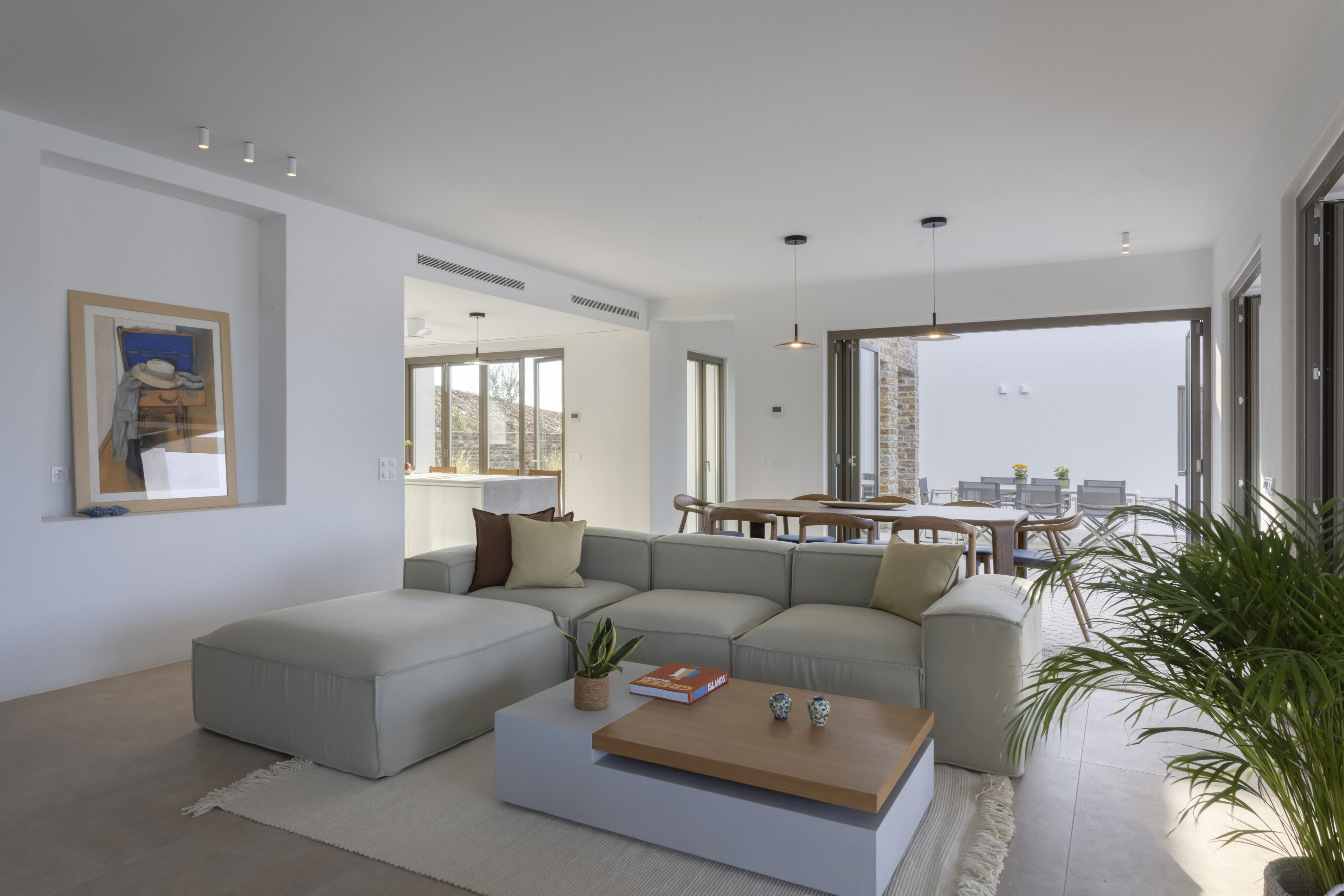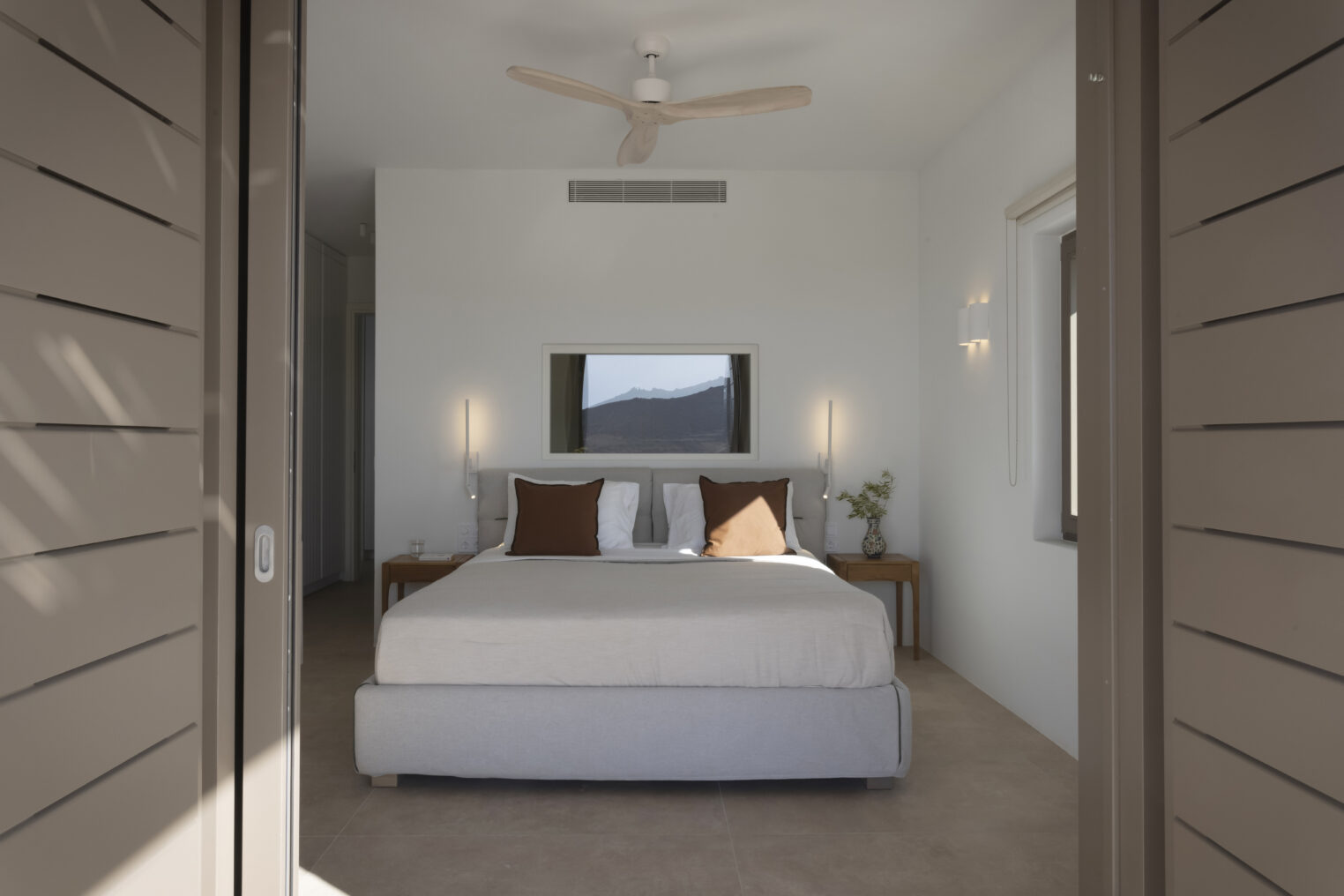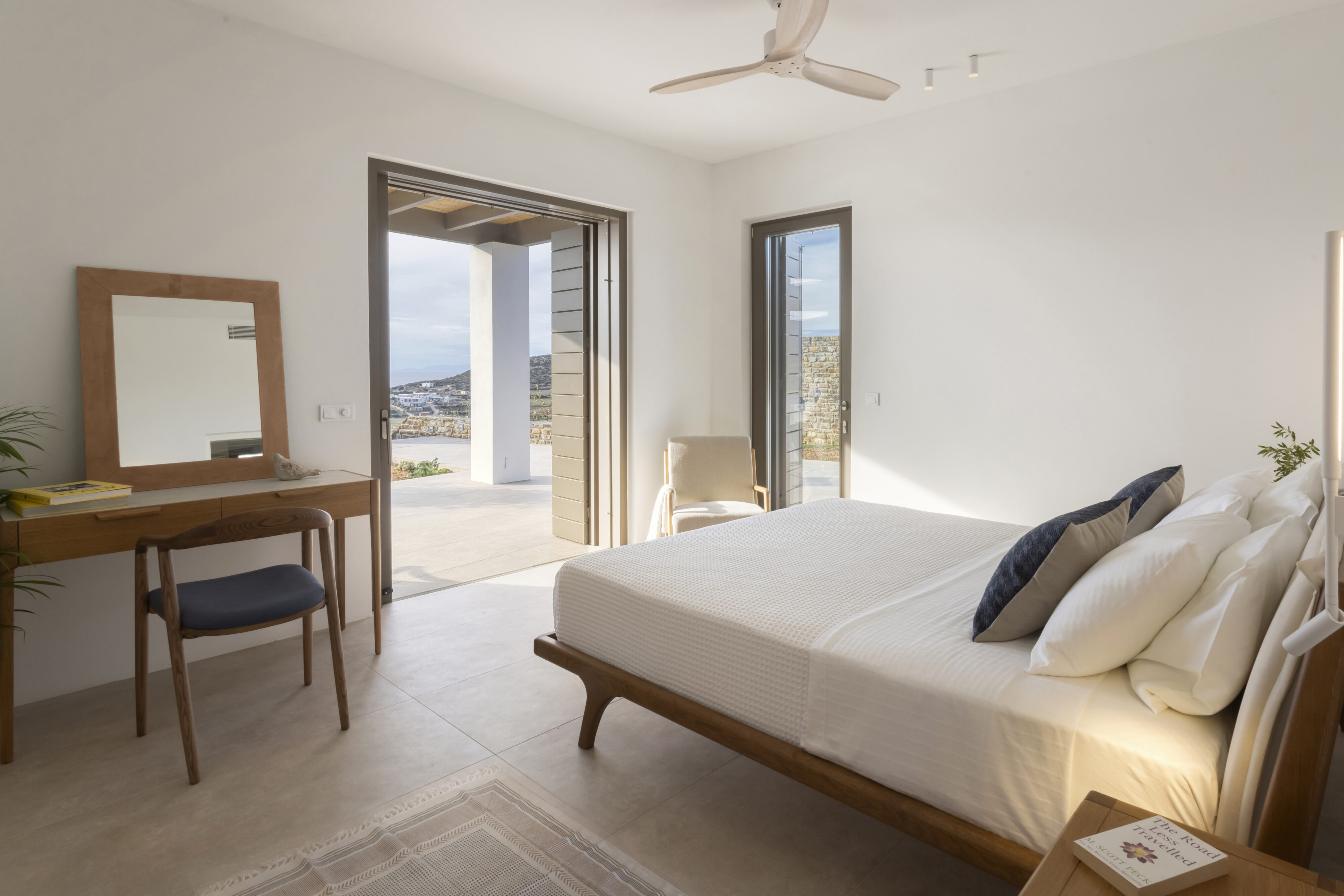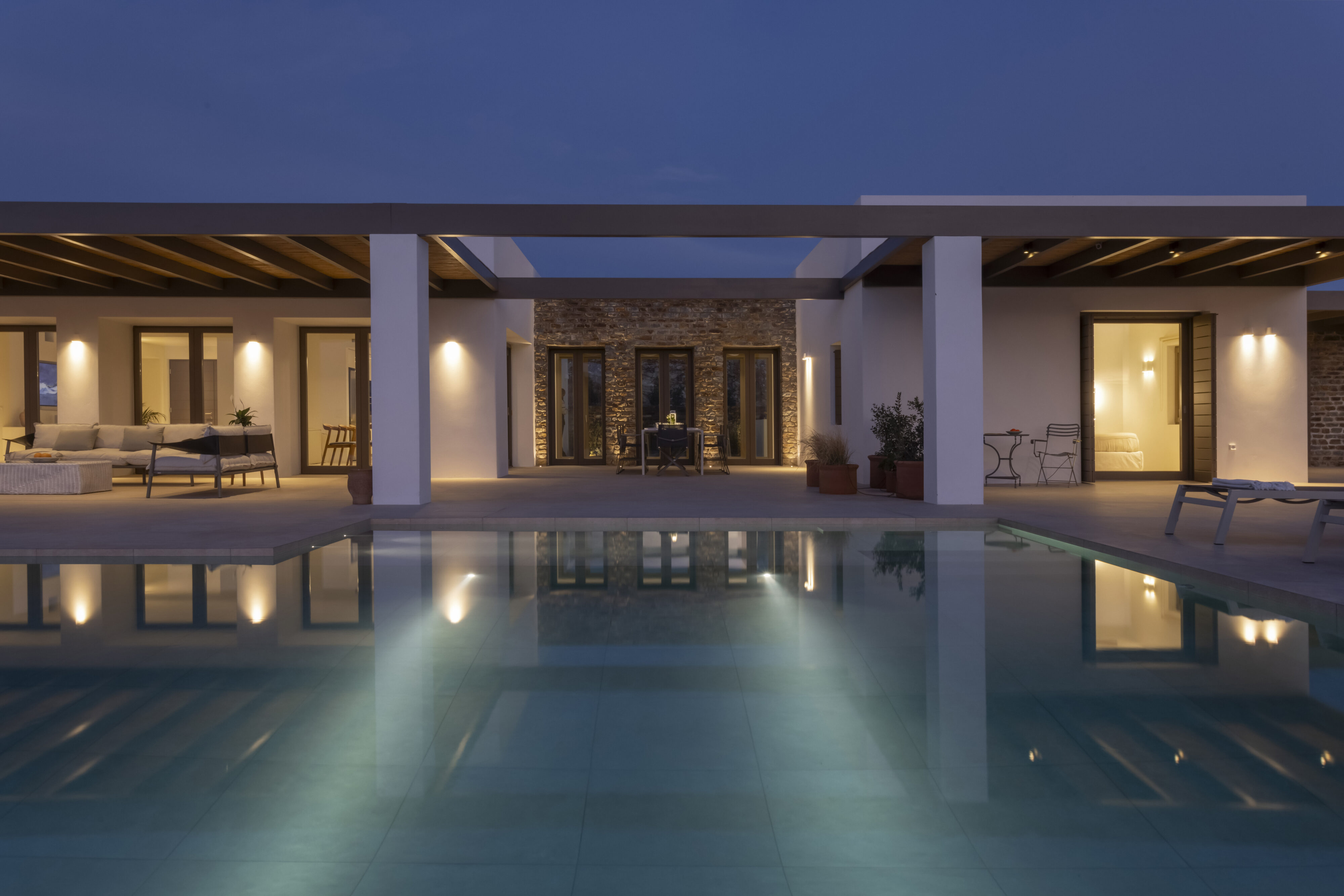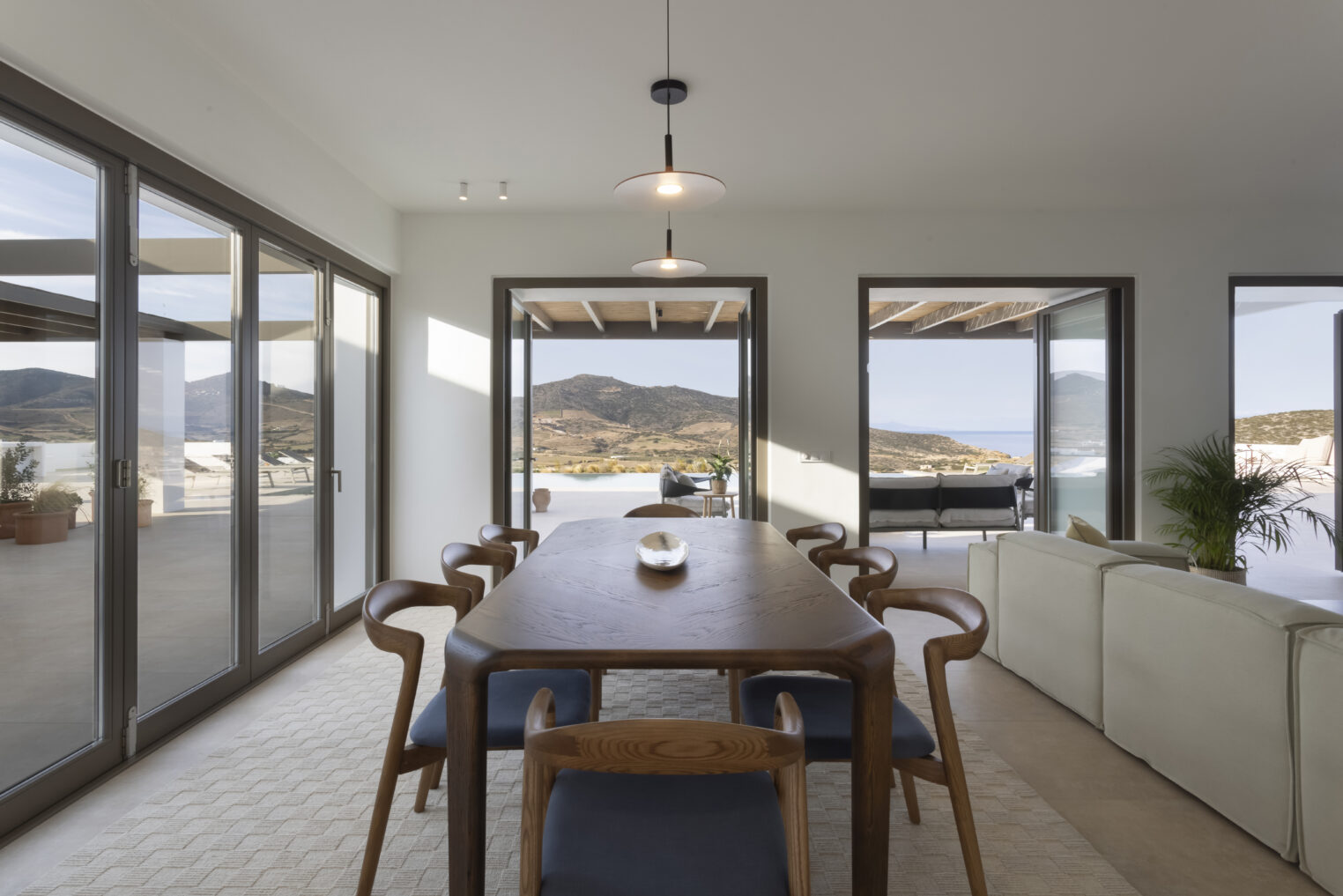 Introducing our newest addition in Livadia, Antiparos—a stunning villa completed in 2024. Designed with a focus on luxurious outdoor summer living, this property invites you to unwind and create unforgettable memories. The expansive terrace boasts a striking L-shaped pool, perfect for lounging under the sun or stargazing by night. An outdoor wall projector sets the scene for cozy movie nights under the open sky, while thoughtfully arranged, comfortable furniture ensures relaxation in style. Inside, the villa features six bedrooms, each showcasing a harmonious blend of ambience and playful simplicity, offering a serene retreat for every guest. But the real magic unfolds during golden hour—when the villa is bathed in the breathtaking hues of Antiparos sunsets, painting the sky in vibrant colors that are nothing short of mesmerizing.