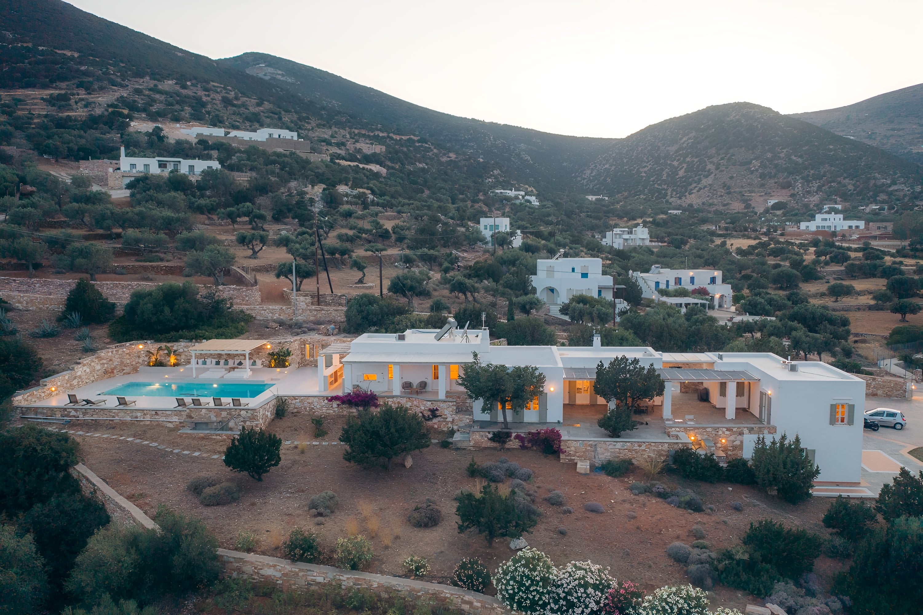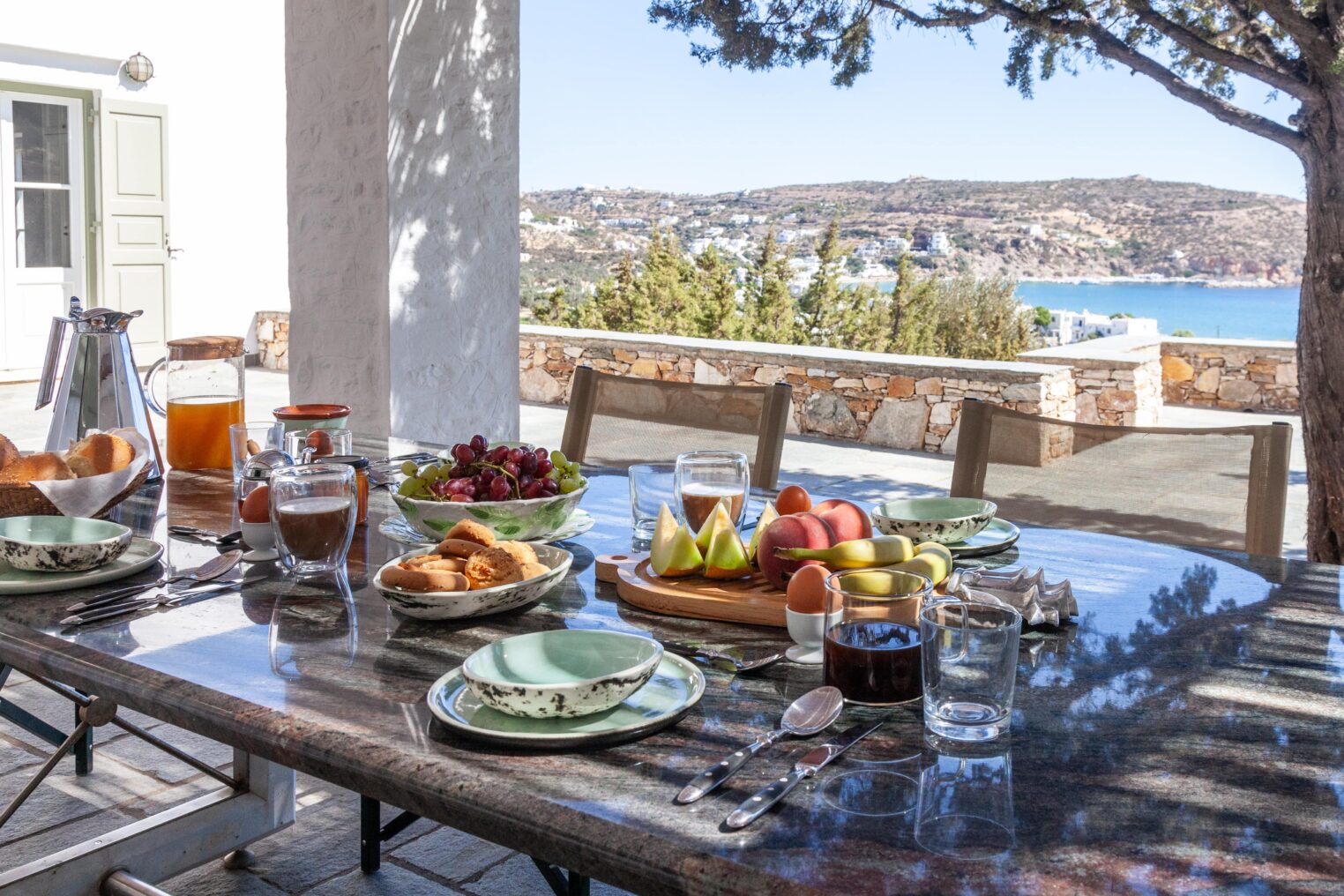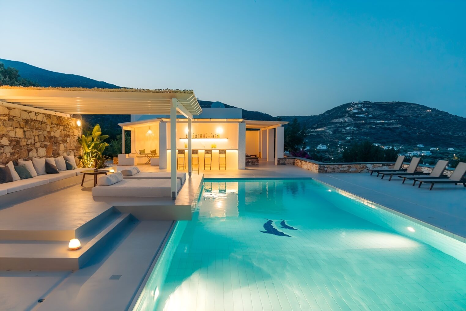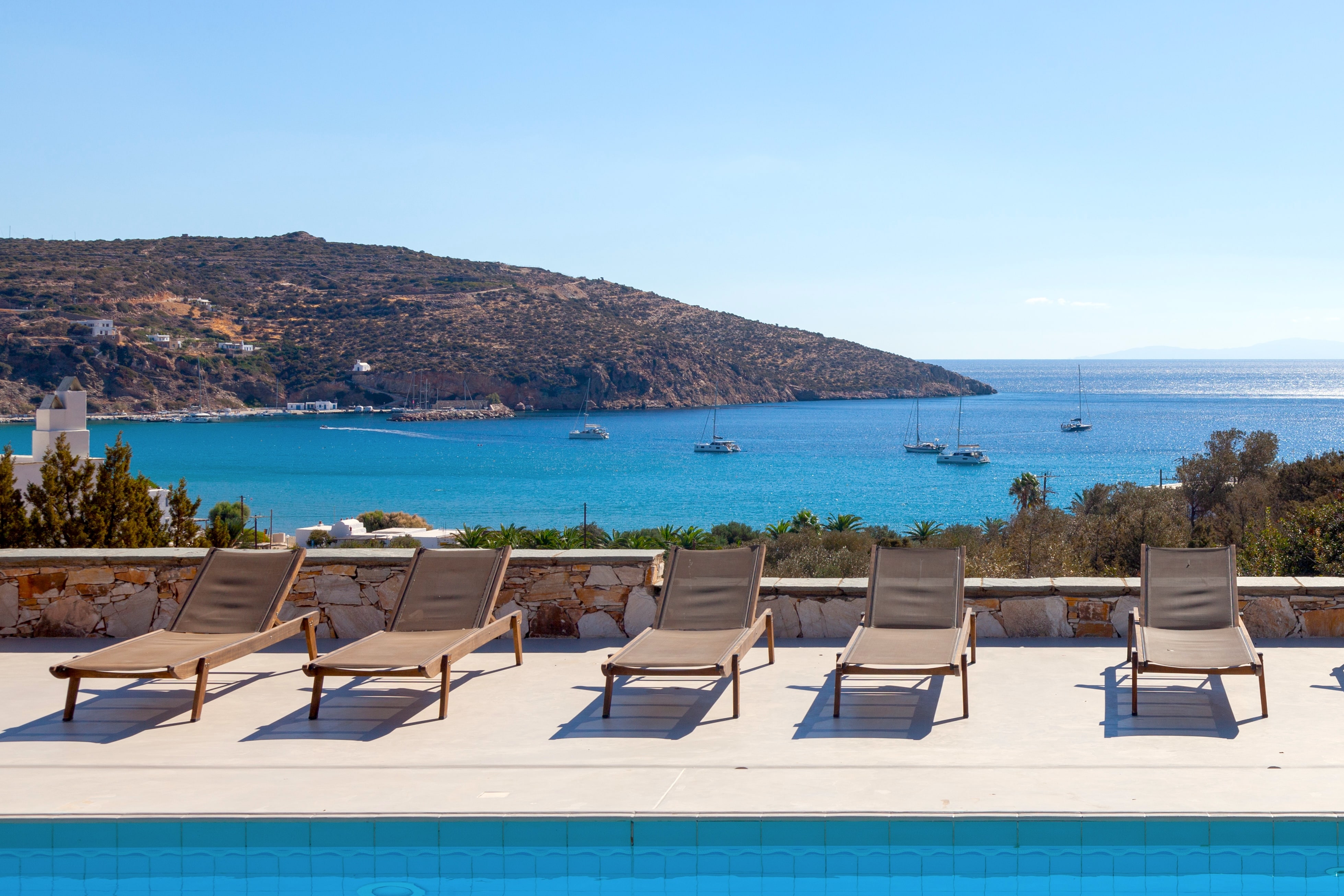 Oliavia Sea View is a 4 – bedroom villa in Platis Gialos, Sifnos, Greece, perfect for up to eight guests seeking elegance and comfort. Nestled in a private location with breathtaking Cycladic sea views, it offers easy access to Platis Gialos beach—just a 7-minute walk or a 2-minute drive away. The villa boasts a spacious stone terrace, a private pool with a bar, a lush Mediterranean garden, fine dining areas, and multiple shaded lounging spaces. A fully equipped kitchen and barbecue ensure a home-like experience with high-end amenities.