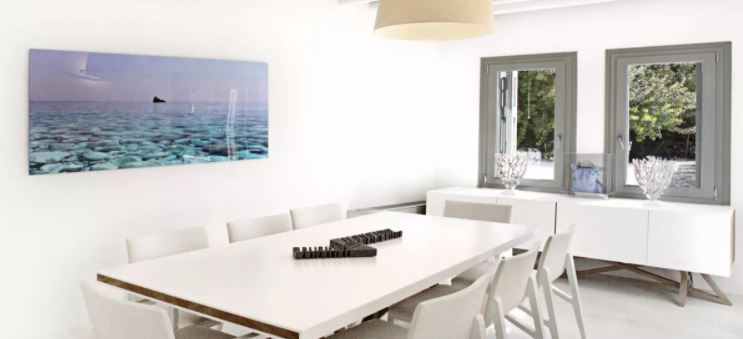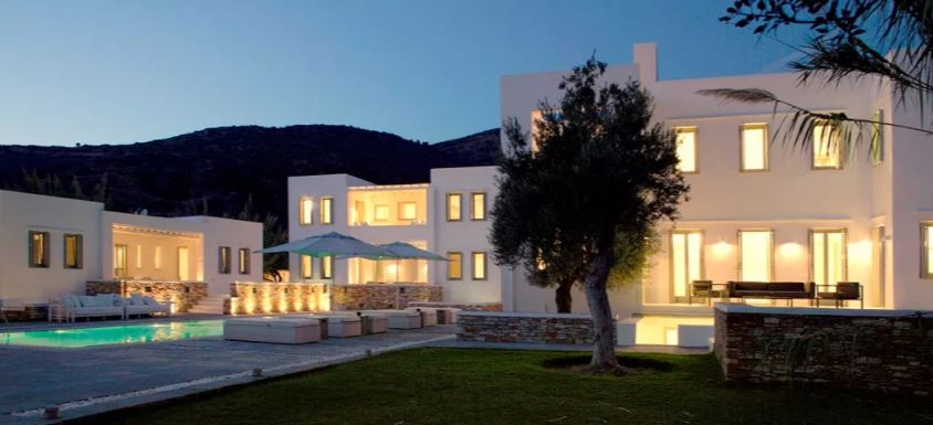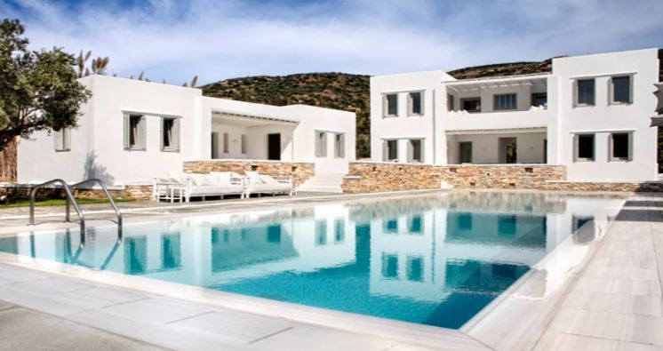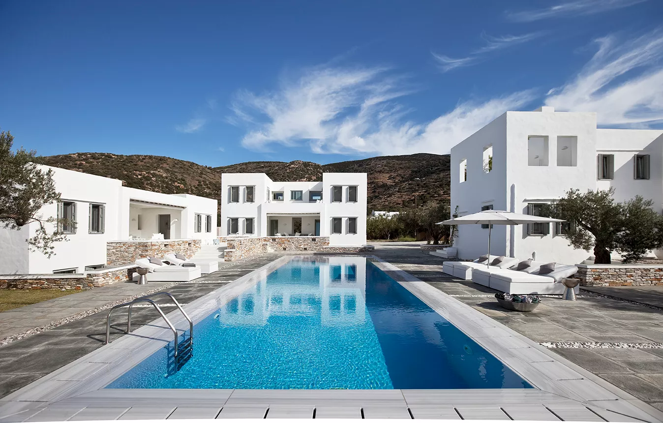 Lying languorously on its own grounds directly on the beach at Vathi, with its own swimming pool, tennis court, hammam, gym and playground. Verina Villa in Sifnos consists of 3 separate buildings. The villa is built to luxurious standards, according to the long-established architecture of Sifnos. All rooms are whitewashed with works of art providing unexpected flashes of color. The elegant interior and outdoor areas provide a unique relaxation environment.