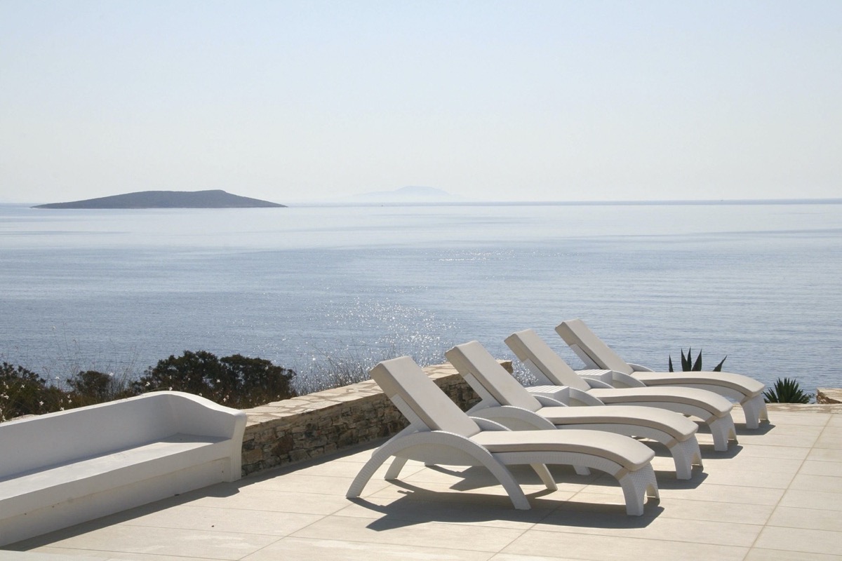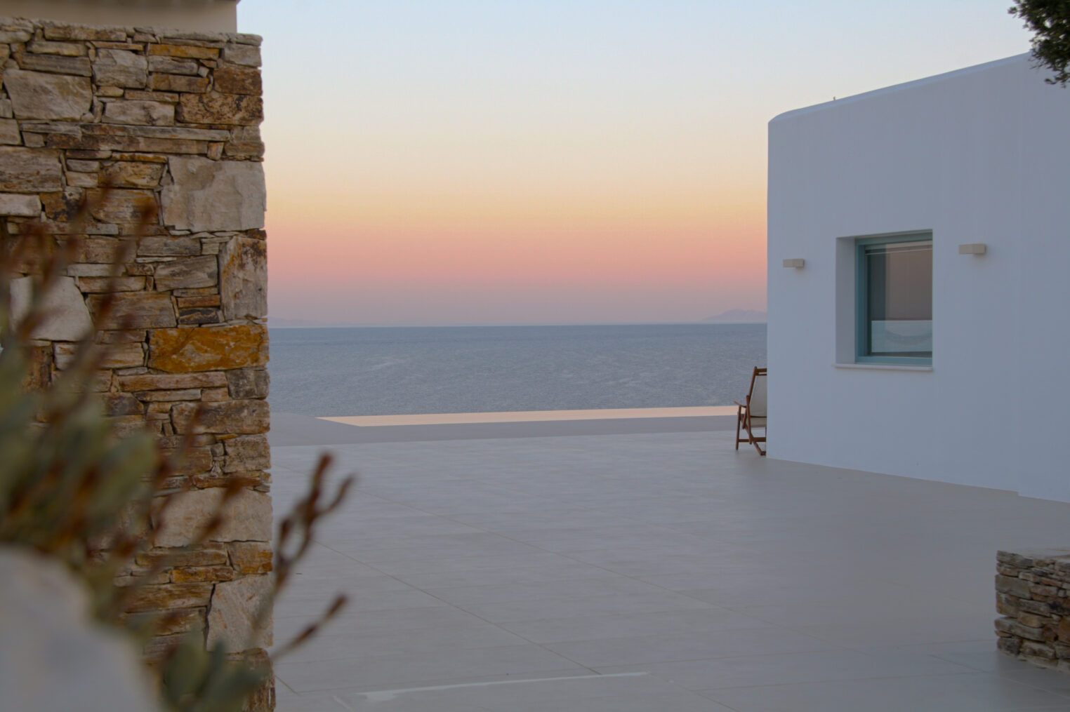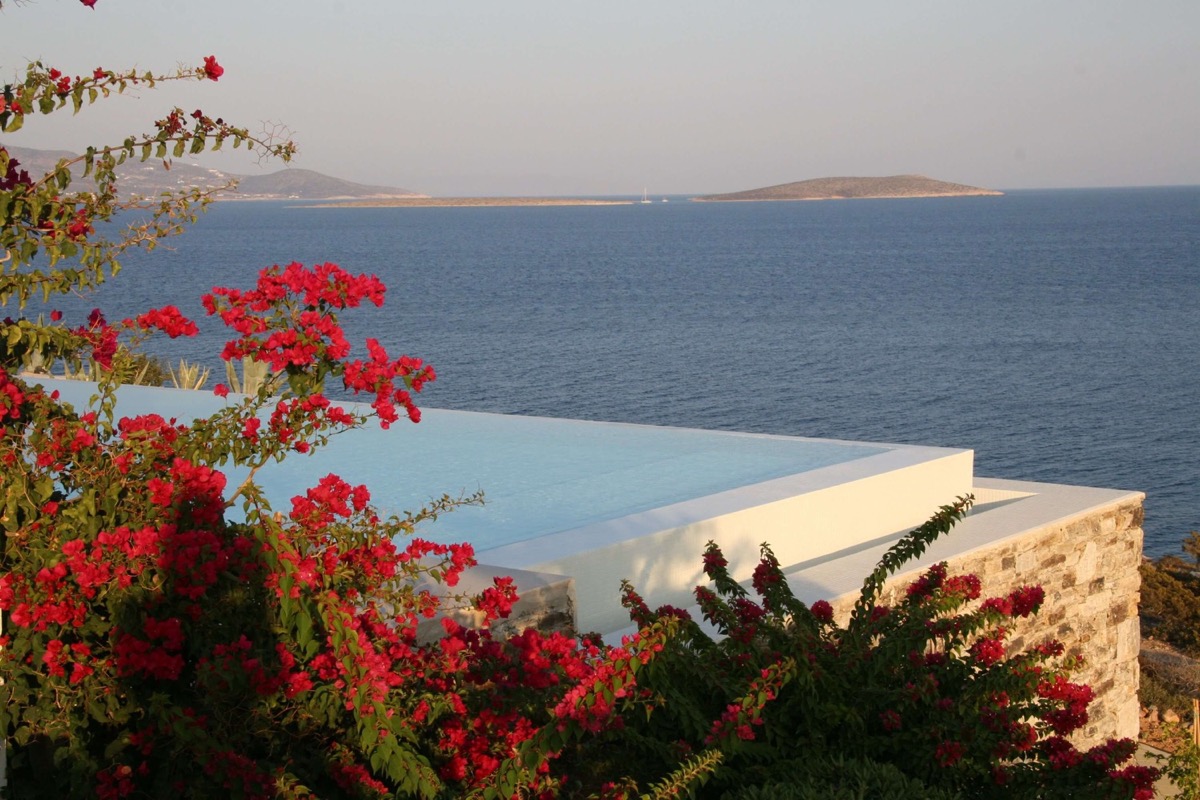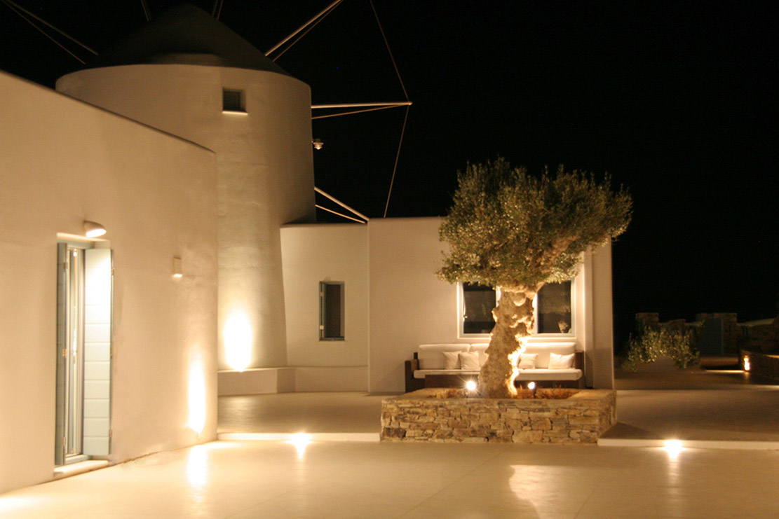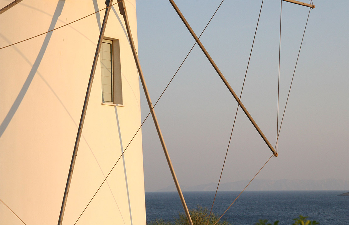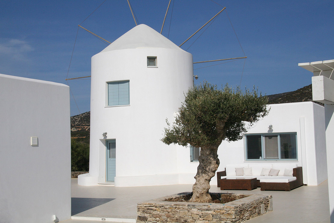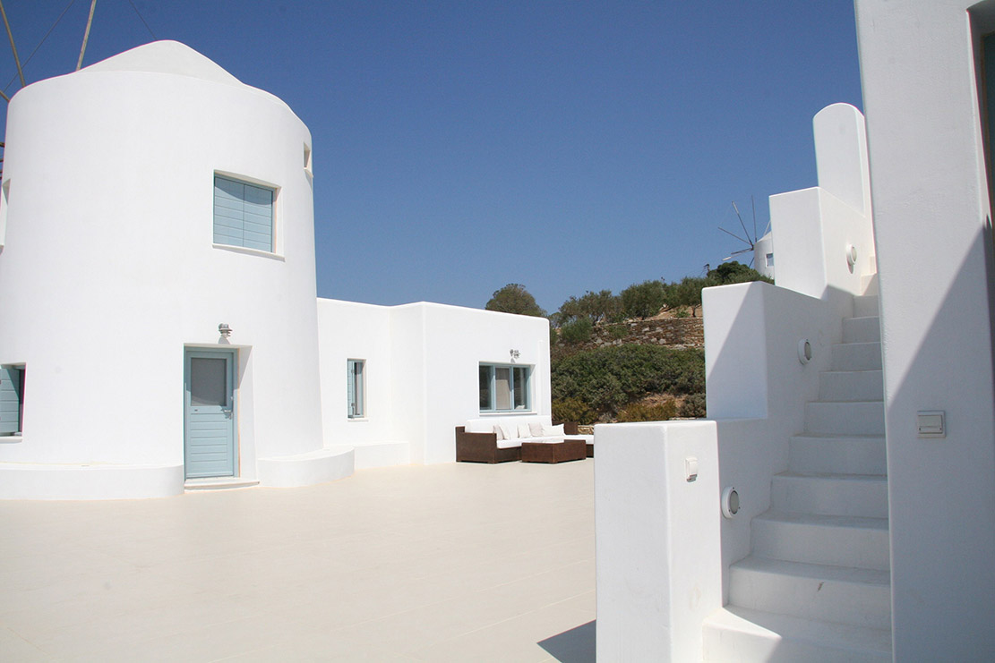 A villa with an adjacent windmill and guesthouse, it captures the essence of Greek summer and pays homage to Cycladic light. An infinity pool sits within tranquil privacy, while a flight of steps leads down to nearby Apantima bay, with its calm waters and Beach House Antiparos.