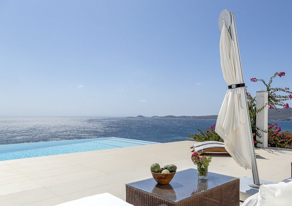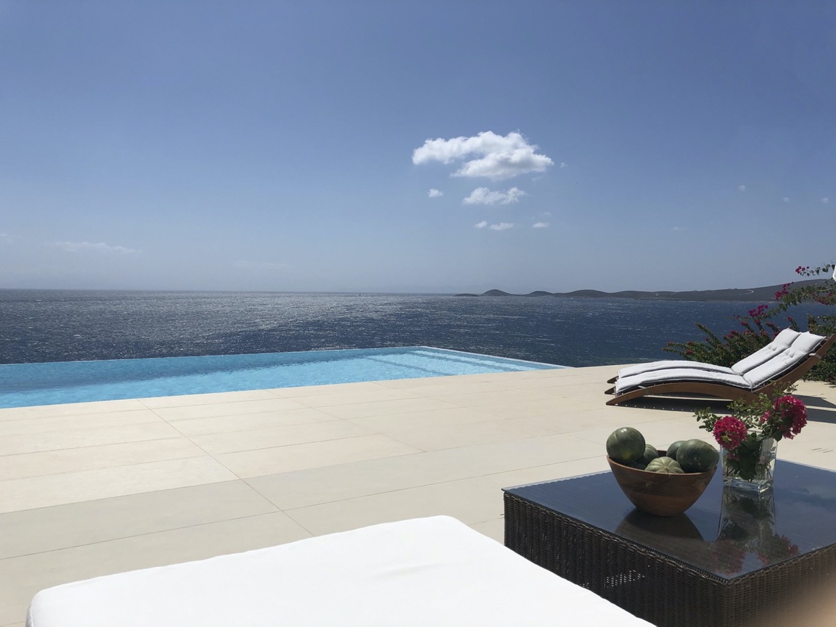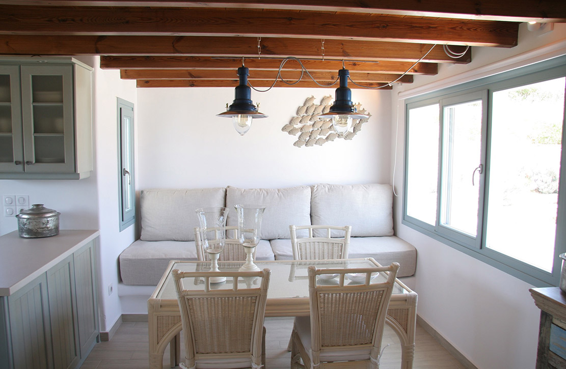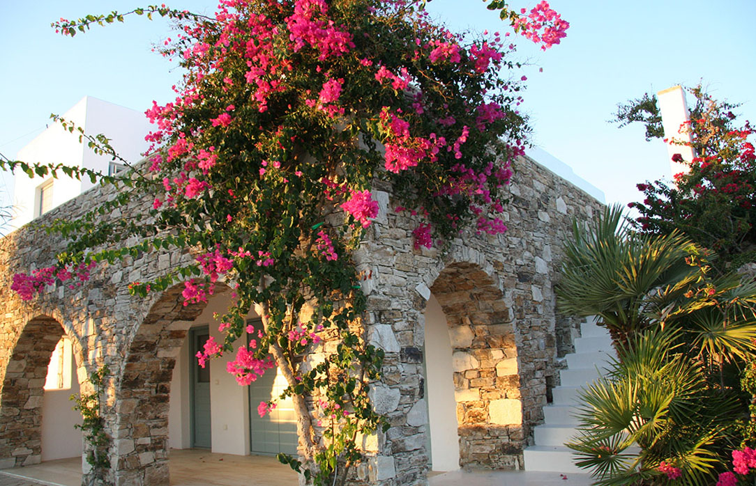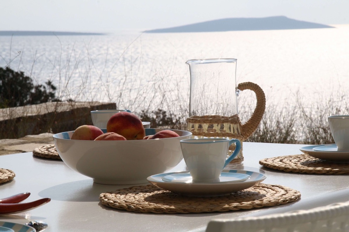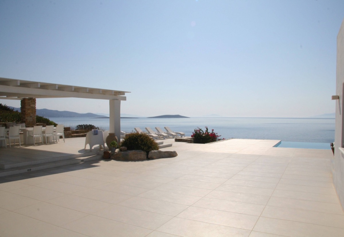 A villa with an adjacent windmill and guesthouse, it captures the essence of Greek summer and pays homage to Cycladic light. An infinity pool sits within tranquil privacy, while a flight of steps leads down to nearby Apantima bay, with its calm waters and Beach House Antiparos.