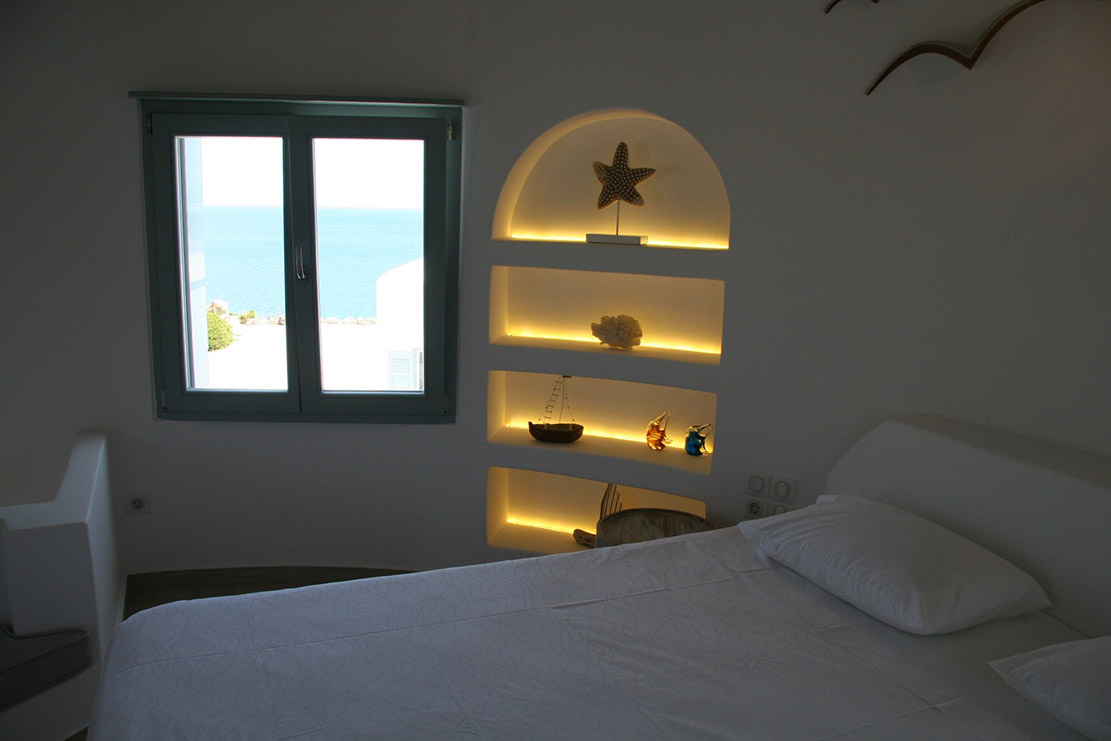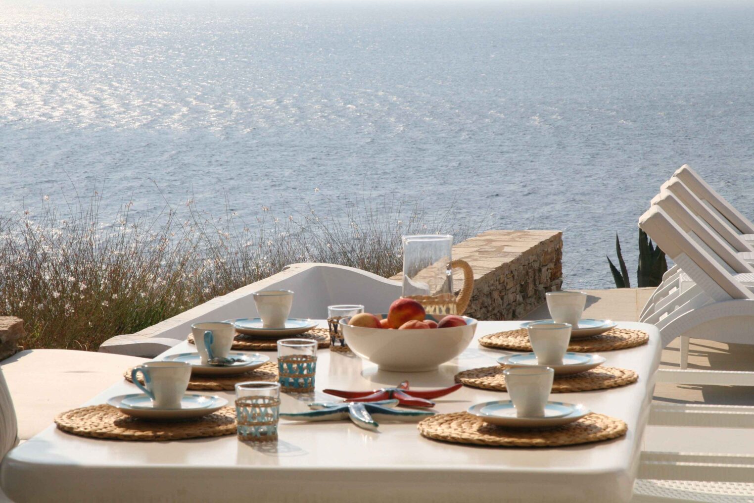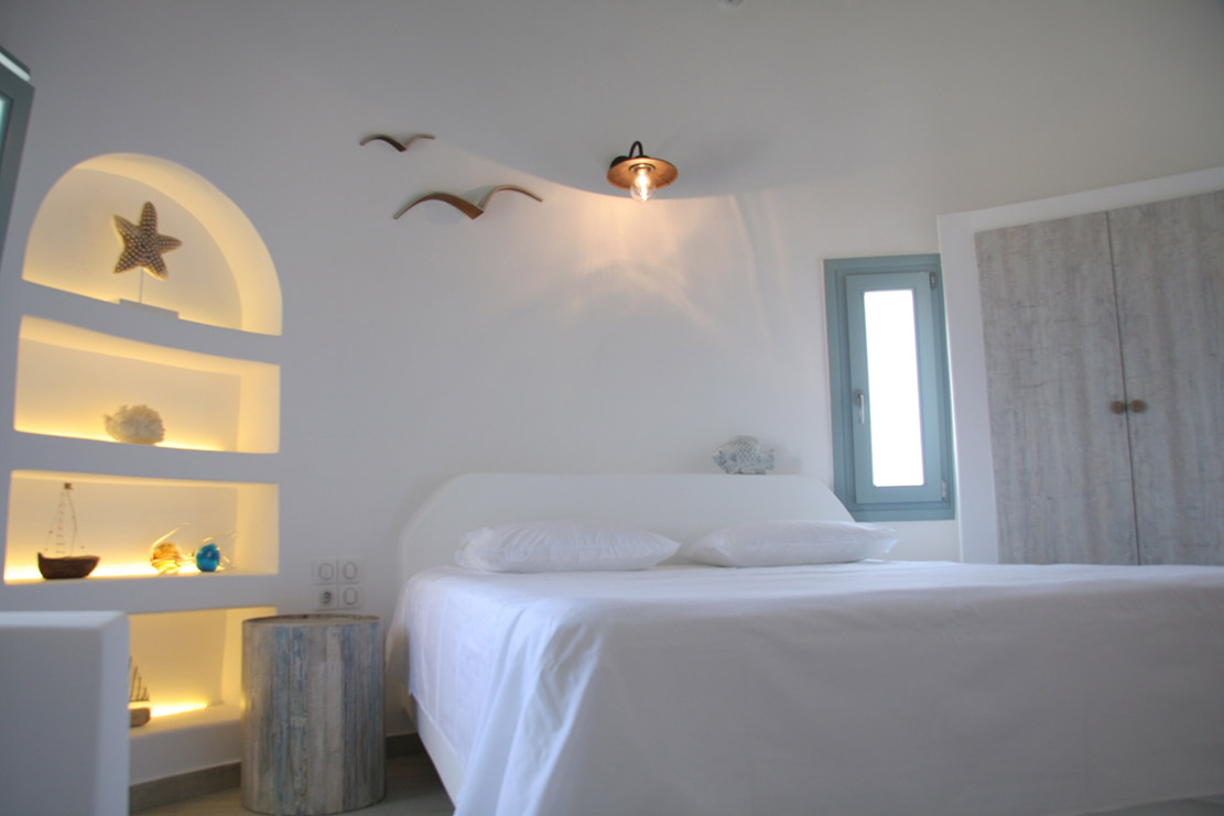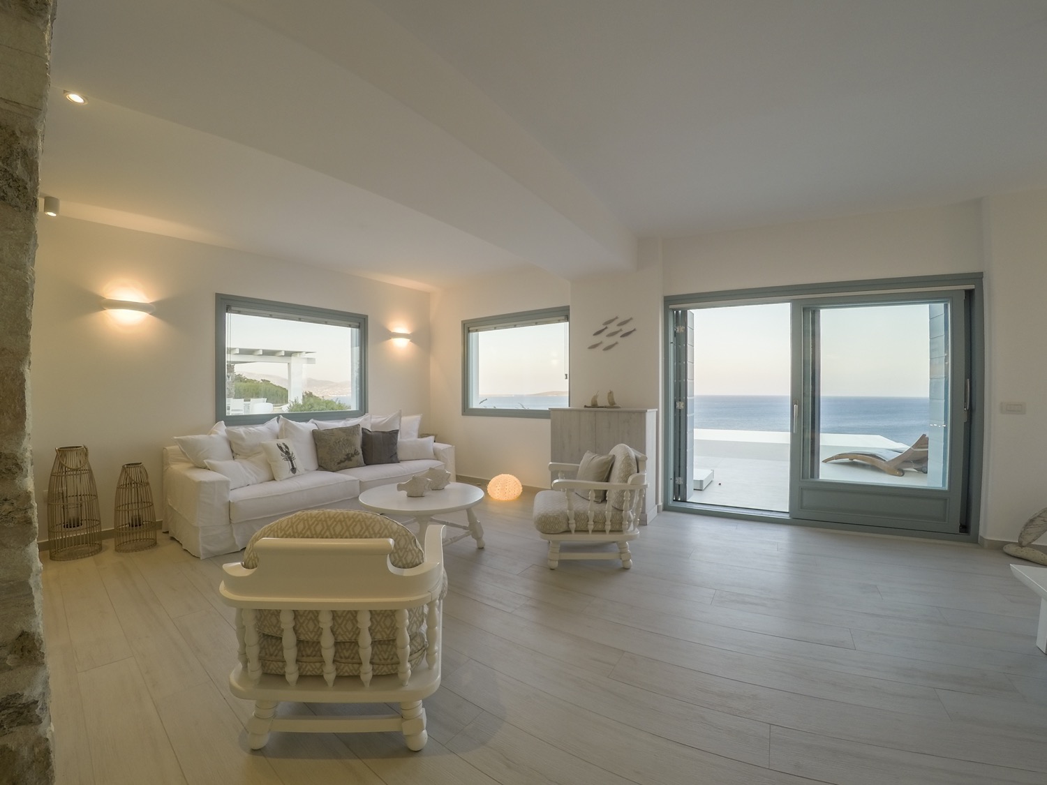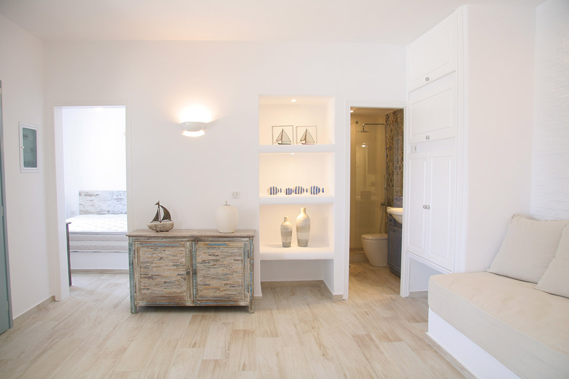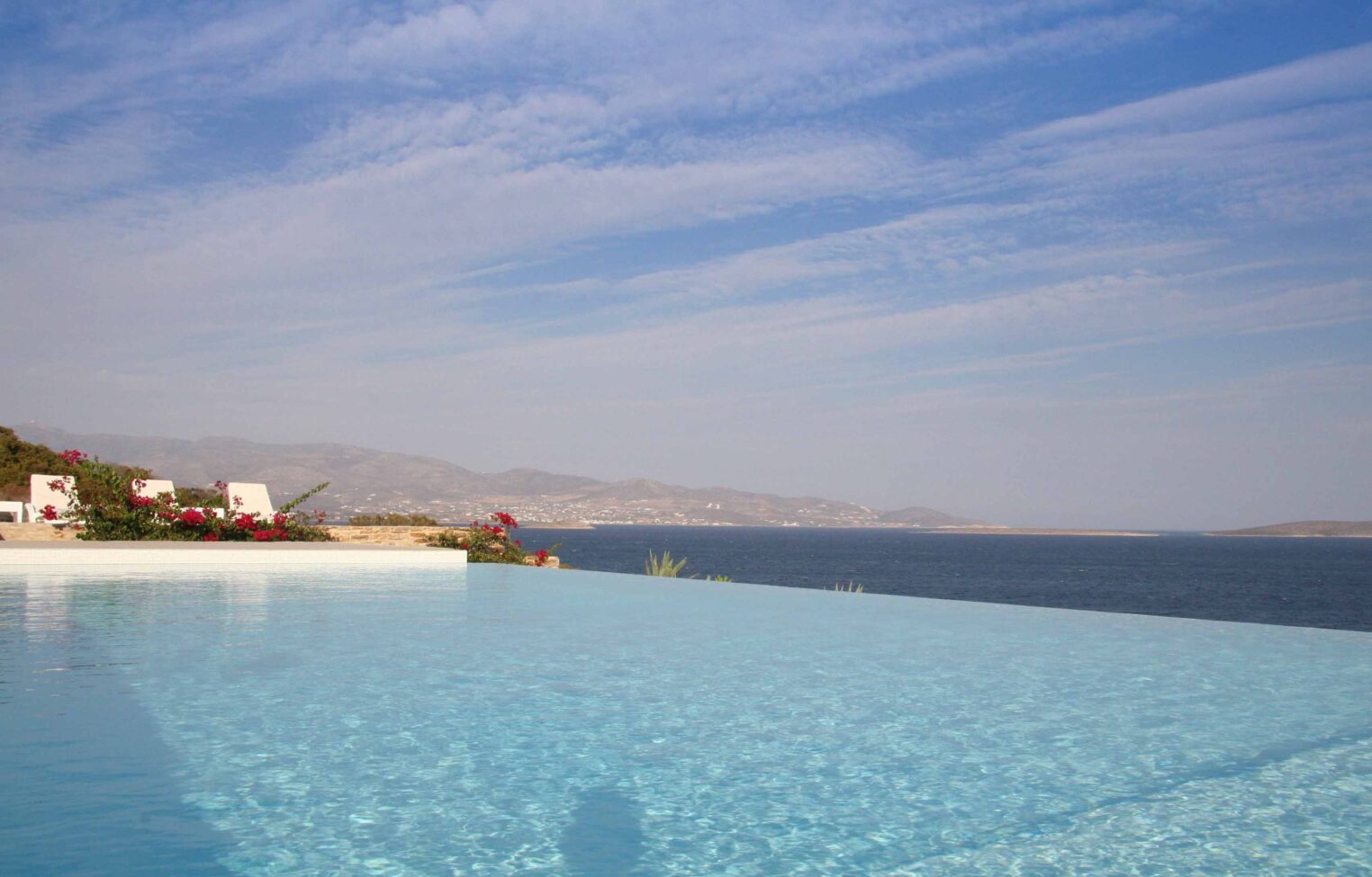 A villa with an adjacent windmill and guesthouse, it captures the essence of Greek summer and pays homage to Cycladic light. An infinity pool sits within tranquil privacy, while a flight of steps leads down to nearby Apantima bay, with its calm waters and Beach House Antiparos.