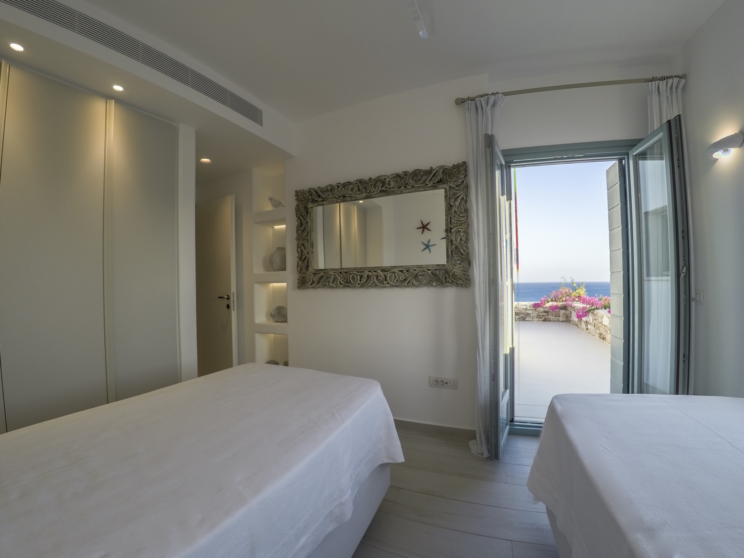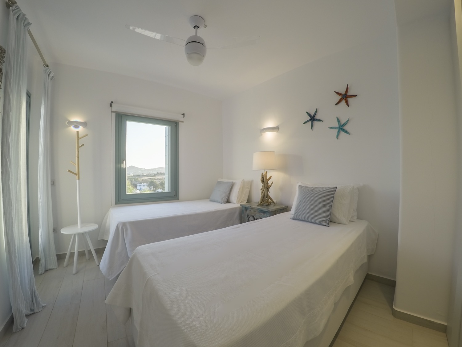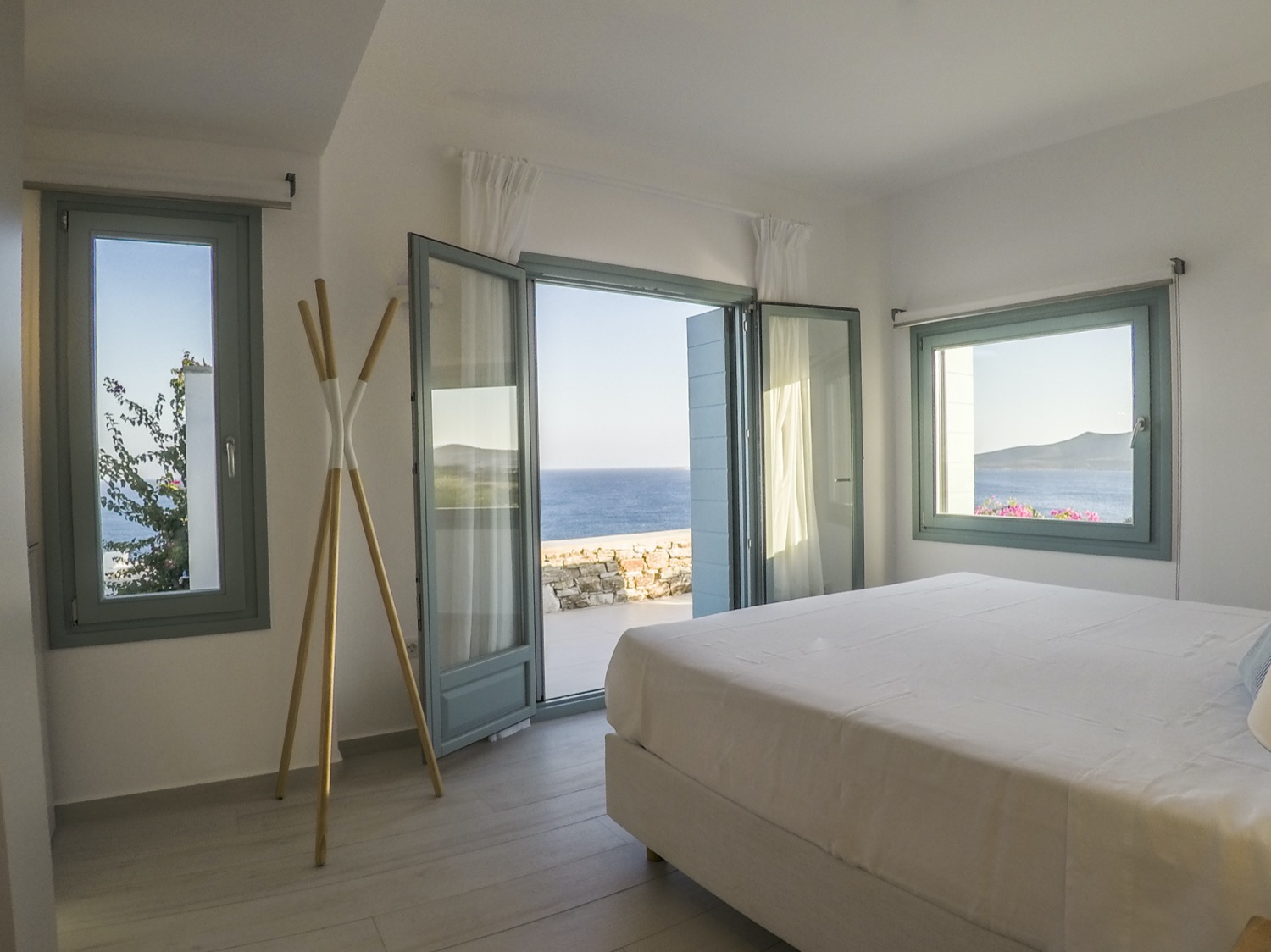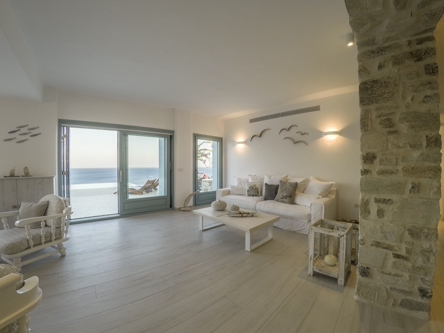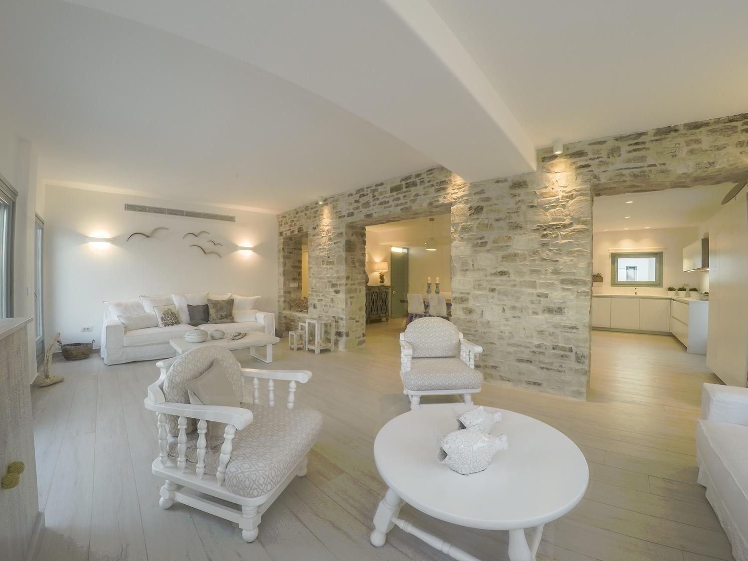 A villa with an adjacent windmill and guesthouse, it captures the essence of Greek summer and pays homage to Cycladic light. An infinity pool sits within tranquil privacy, while a flight of steps leads down to nearby Apantima bay, with its calm waters and Beach House Antiparos.