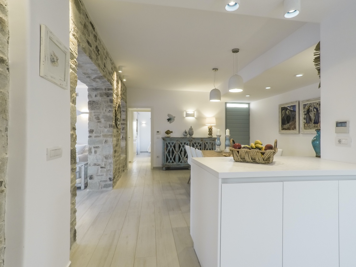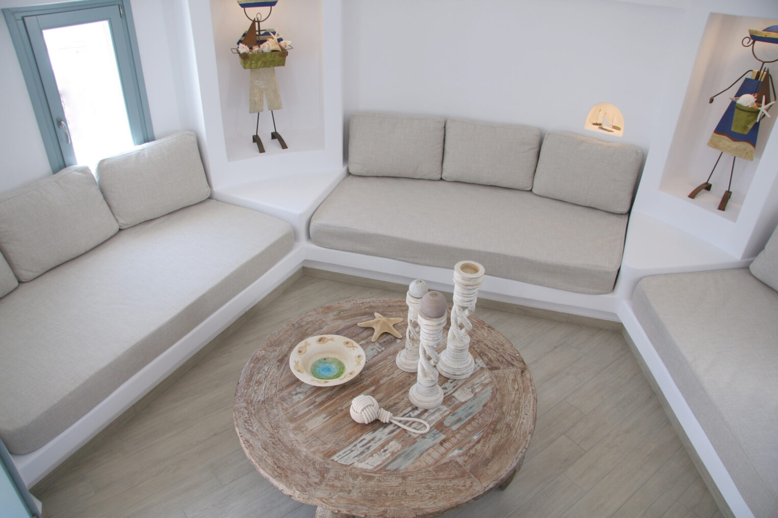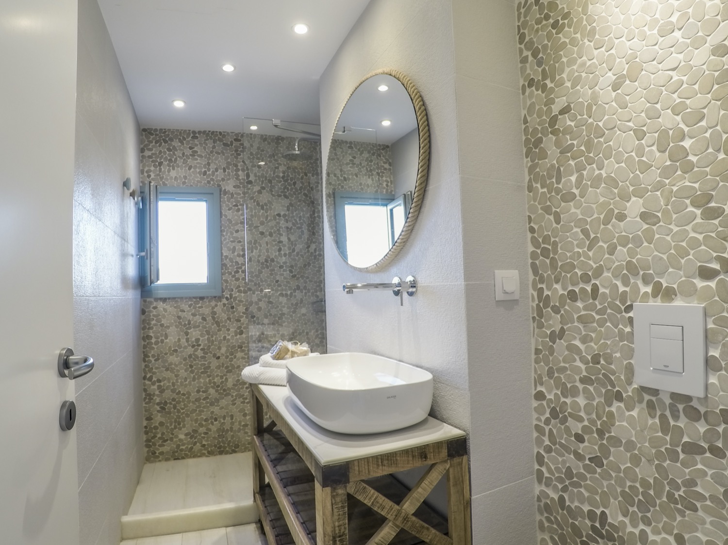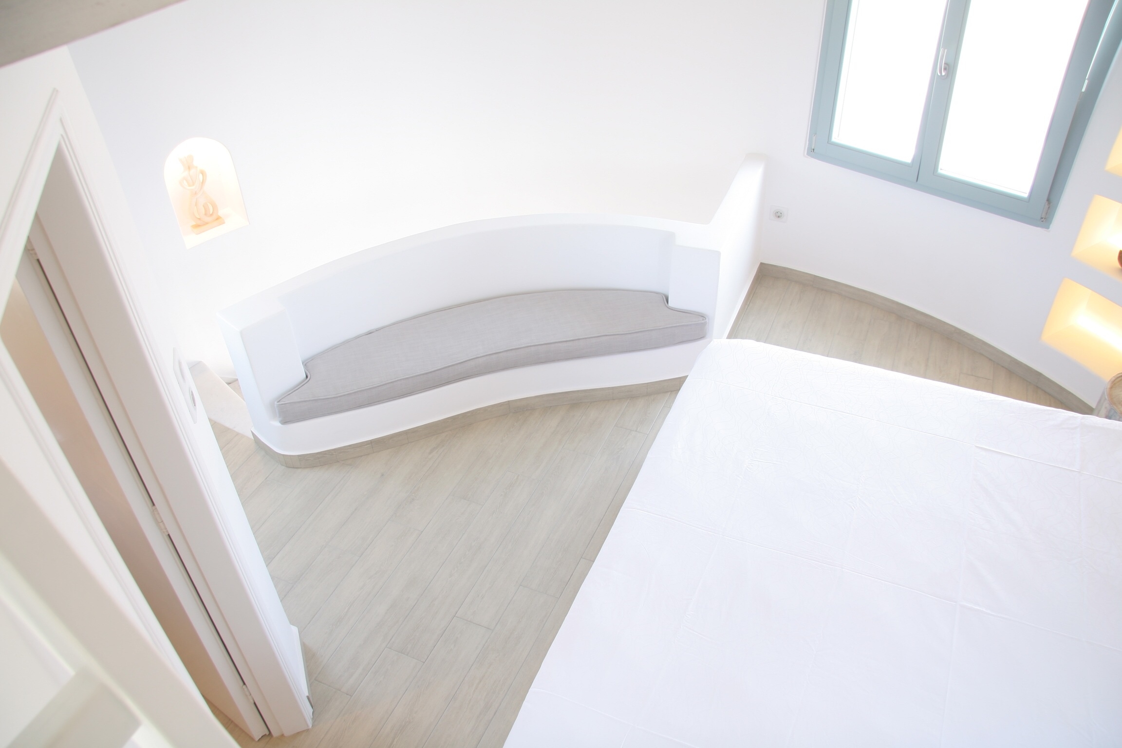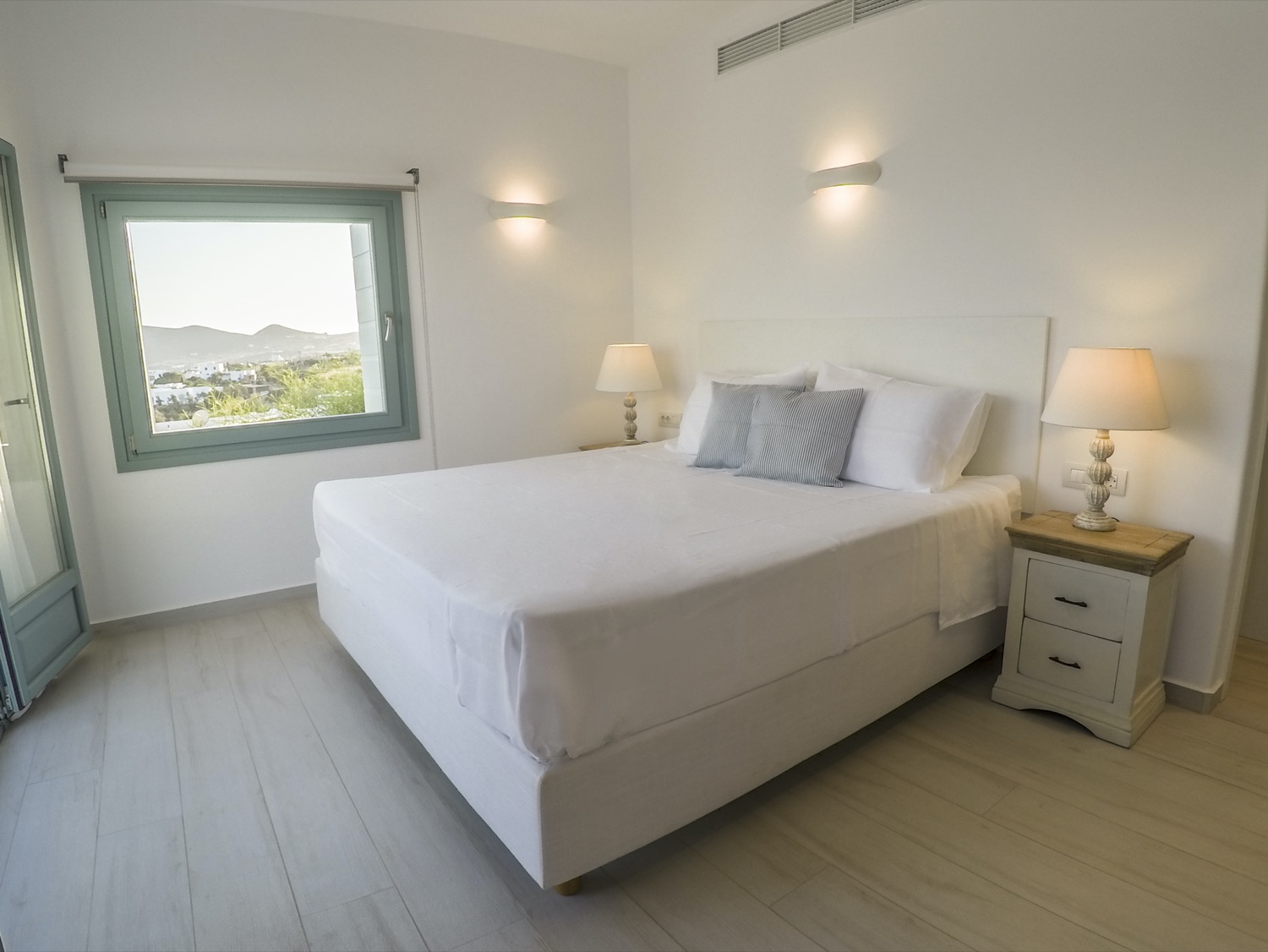 A villa with an adjacent windmill and guesthouse, it captures the essence of Greek summer and pays homage to Cycladic light. An infinity pool sits within tranquil privacy, while a flight of steps leads down to nearby Apantima bay, with its calm waters and Beach House Antiparos.